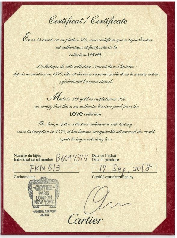 Cartier Love SM bracelet. 18ct rose gold. Cartier size: 15 (for small wrist). Ref #FKN513. With adjustament tool inside Cartier box. With Cartier certificate dated 22/12/2019. Weight: 17.0g (Pre-owned)