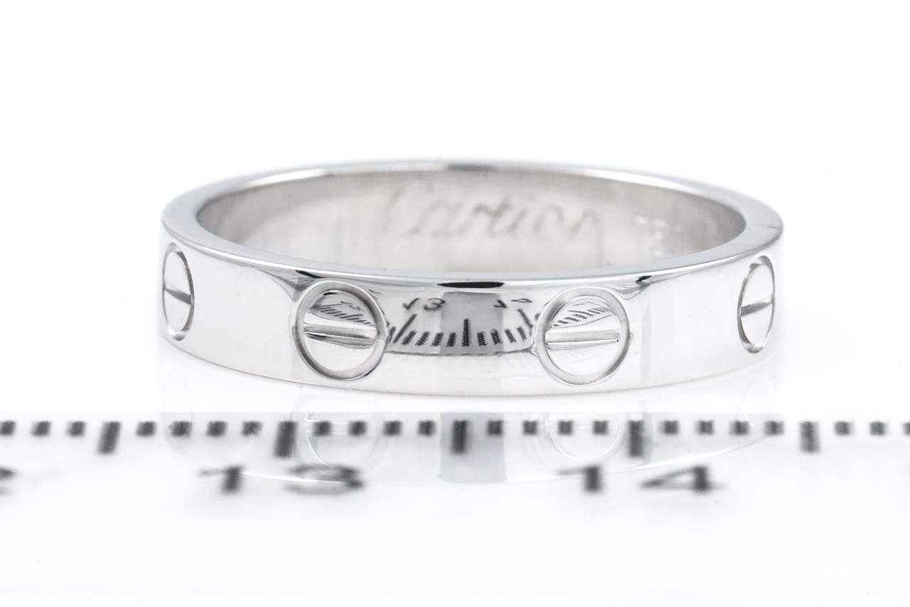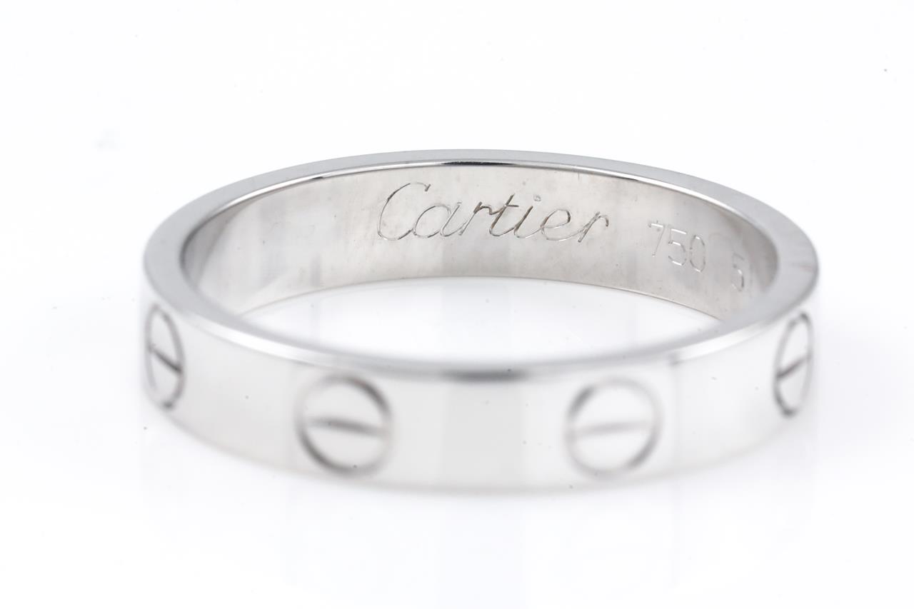 Cartier Love wedding band. Width: 3.6mm 18ct white gold. Weight: 3.8g. Cartier stamped size 51 (actual size K1/2) - ring resizing is not recommended. (Pre-owned)
