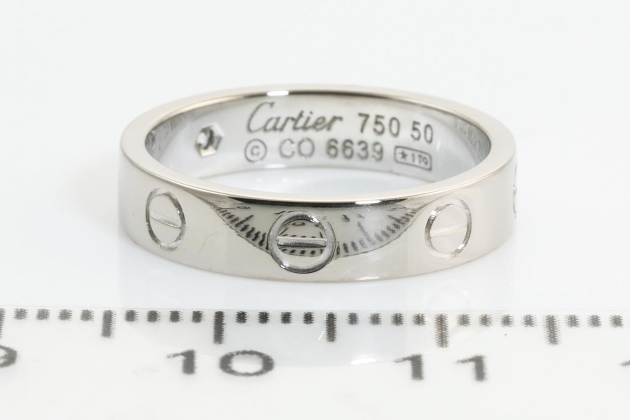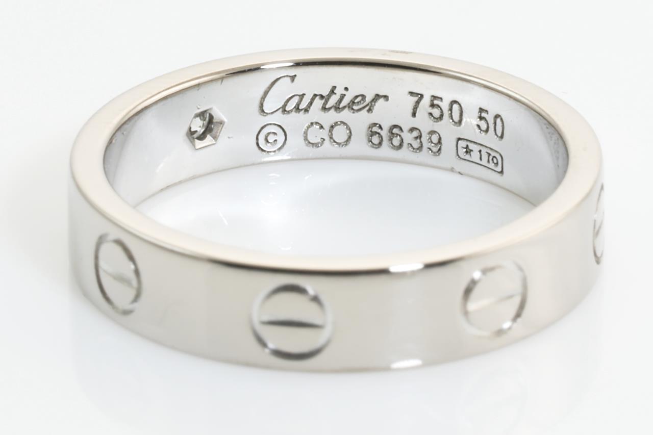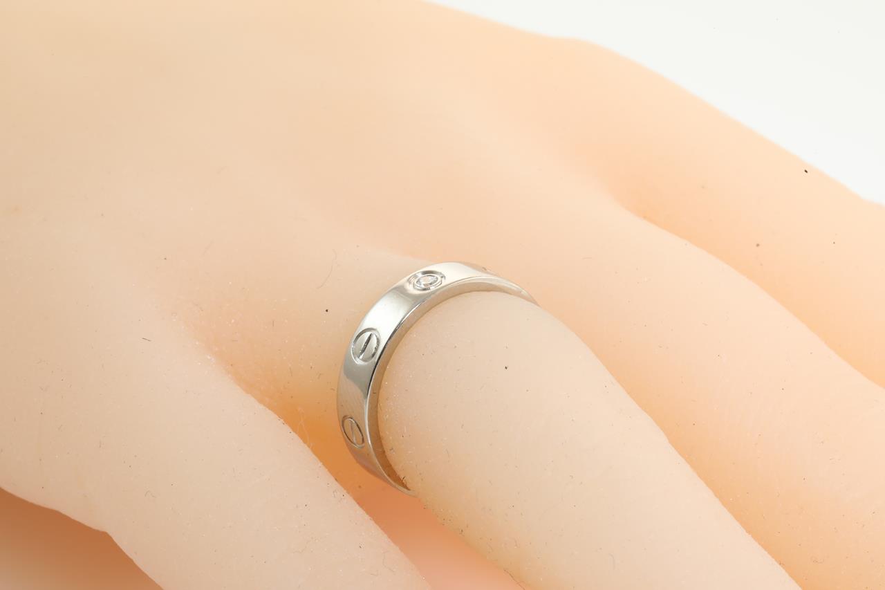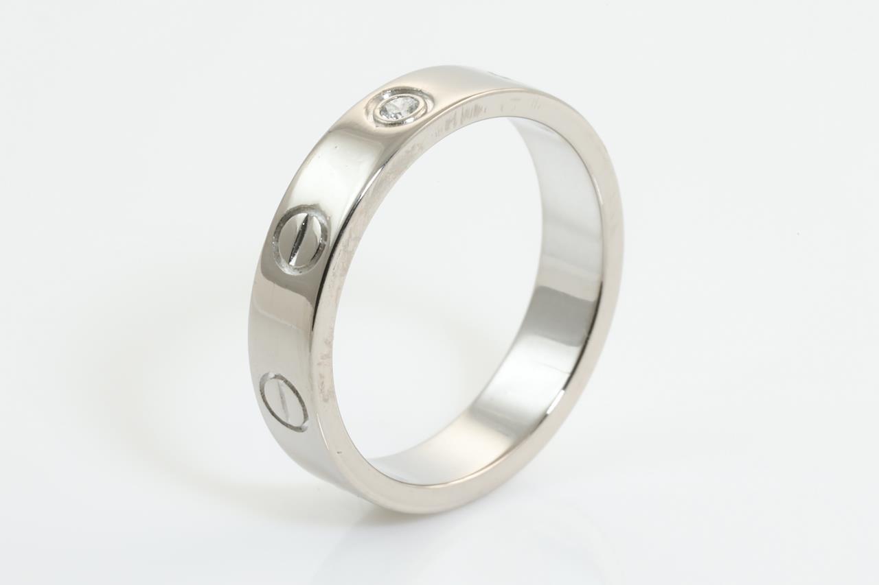 Cartier Mini Love ring with round Diamond of 0.02ct. 18ct white gold. Ring size K - Note this ring cannot be resized. Cartier stamped size: 50, Ref #CO 6639. Weight: 4.6g (Pre-owned)