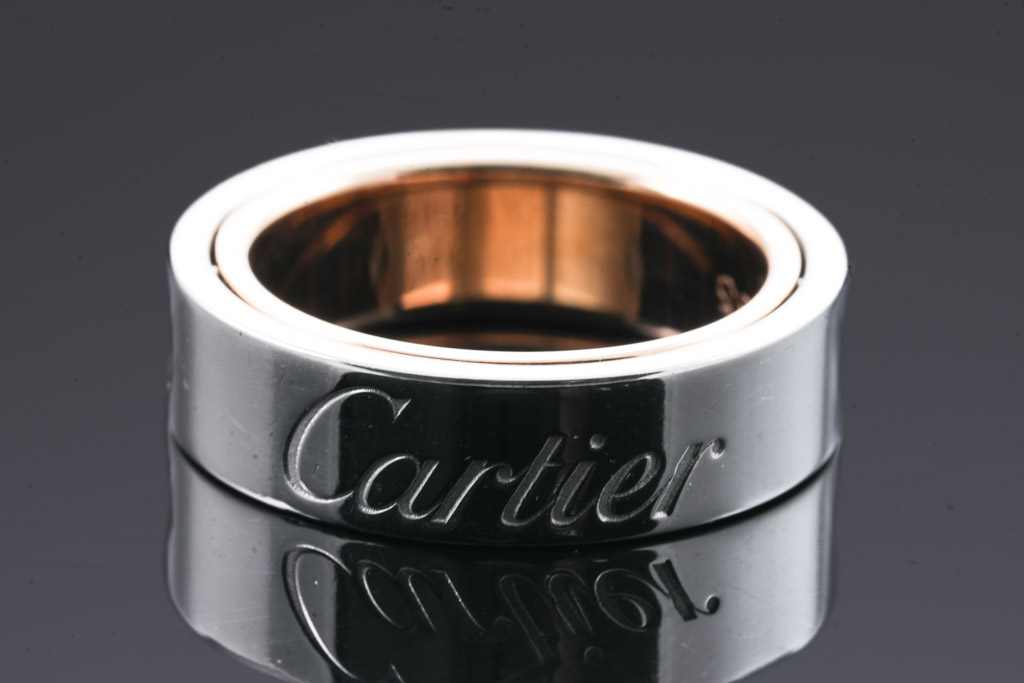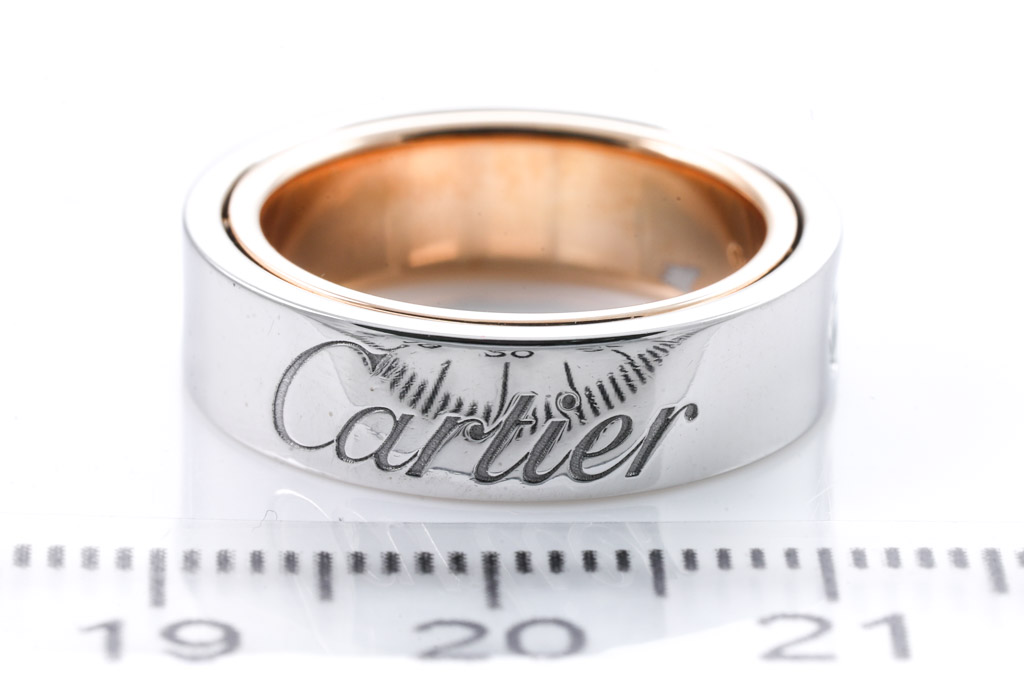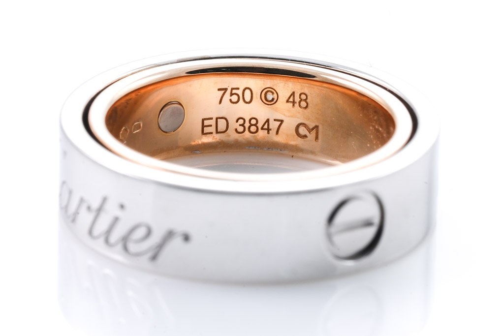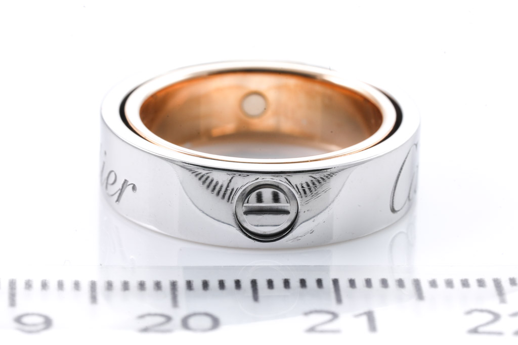 Cartier Secret Love ring. 18ct rose and white gold. Cartier stamped size 48, I - ring resizing is not recommended. Width: 5.5mm. Weight: 10.0g. (Pre-owned)