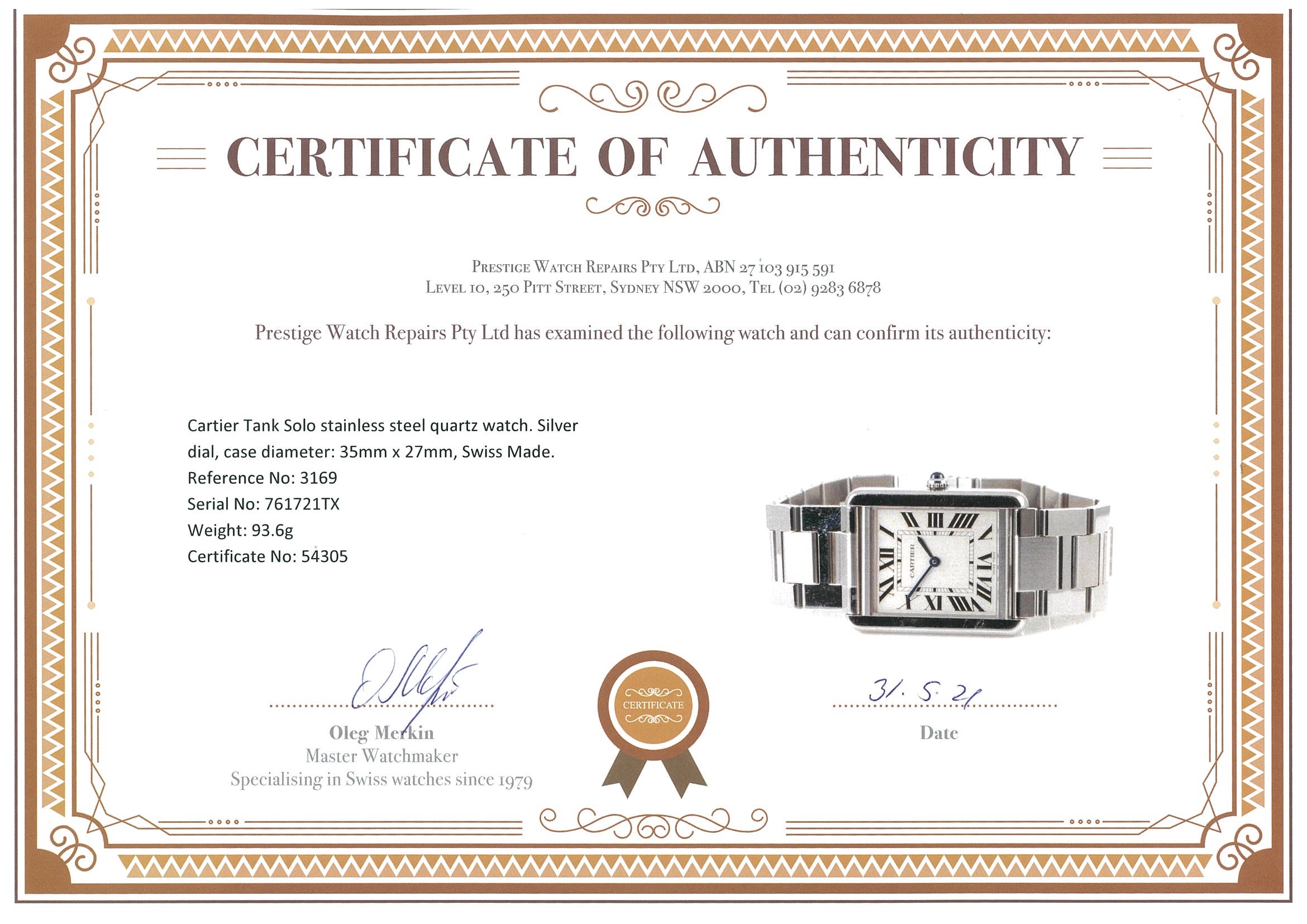 Cartier Tank Solo Watch | First State Auctions
