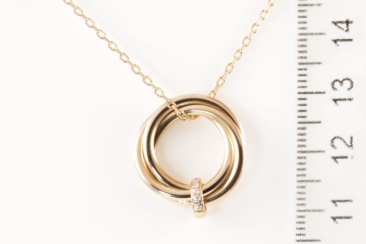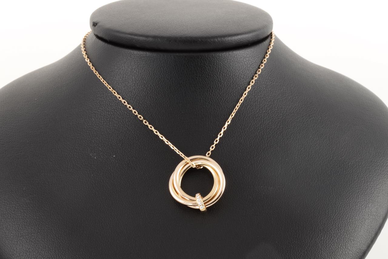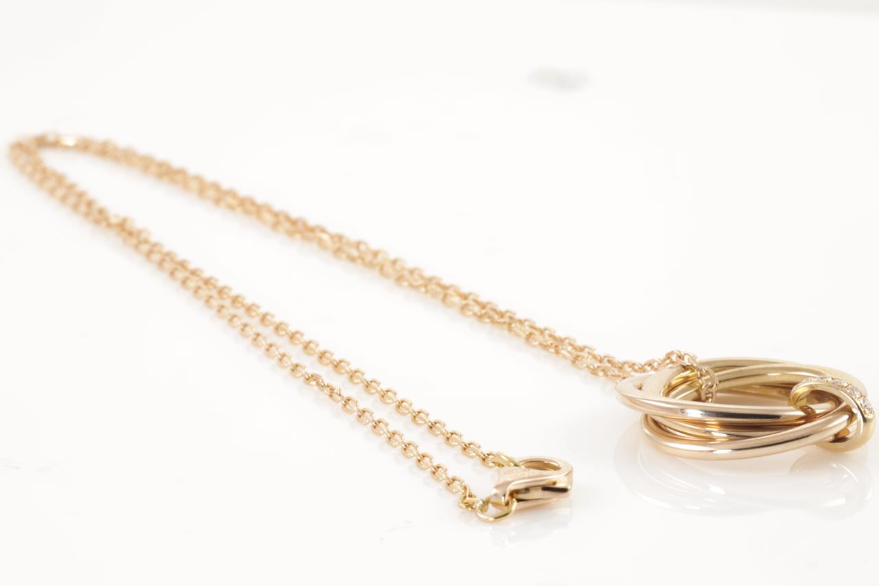 Cartier Trinity Diamond pendant with Diamonds totalling 0.06cts. 18ct rose gold with 18ct gold 41cm chain. Ref# PJ7251. Weight: 7.2g (Pre-owned)