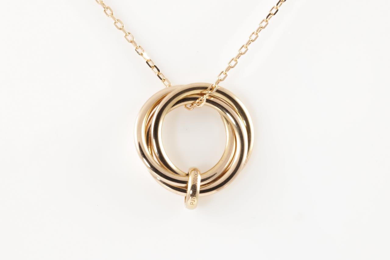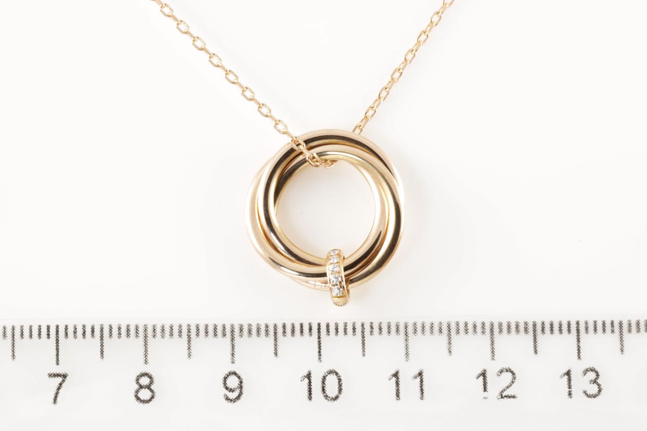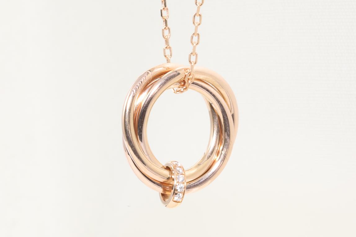 Cartier Trinity Diamond pendant with Diamonds totalling 0.06cts. 18ct rose gold with 18ct gold 41cm chain. Ref# PJ7251. Weight: 7.2g (Pre-owned)