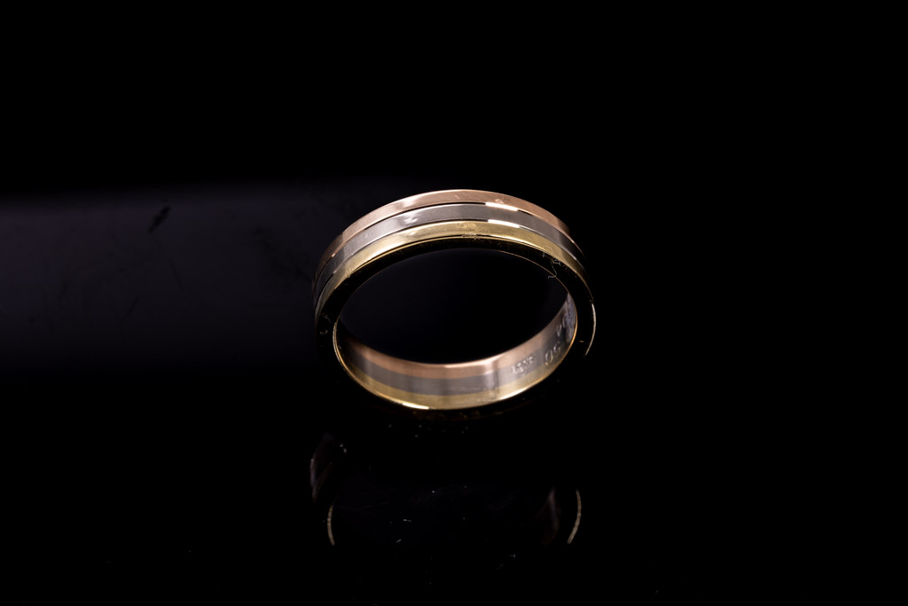 Cartier Vendome Louis ring. 18ct yellow, rose & white gold. Cartier stamped size 56, O1/2 - ring resizing is not recommended. With Cartier box. Weight: 7.3g. (Pre-owned)