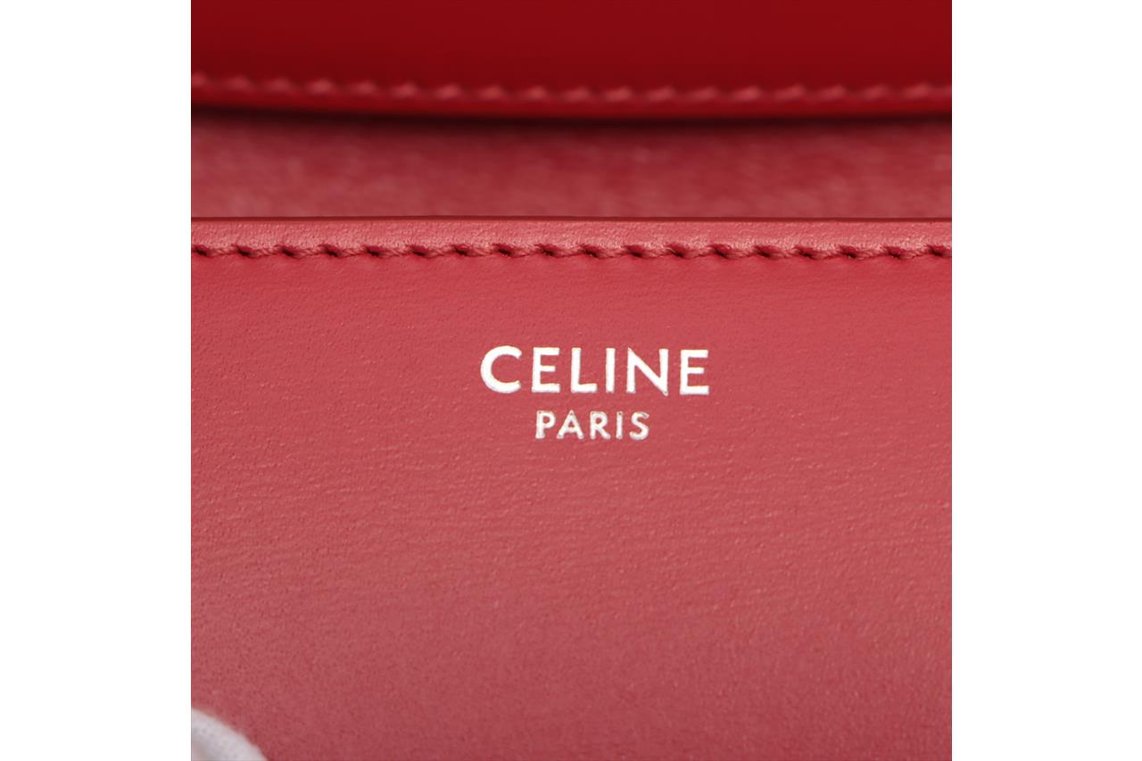 Celine Medium Classic Bag in Box Calfskin Red Leather. Featuring silver-tone hardware, lambskin lining, metallic closure, interior zipped pocket and double flat pockets. Approximate dimensions: 24cm (L) x 19cm (H) x 6cm (D). Accompanied by a removable, adjustable leather strap and Celine dust bags. With Entrupy Certificate of Authenticity. (Pre-owned)