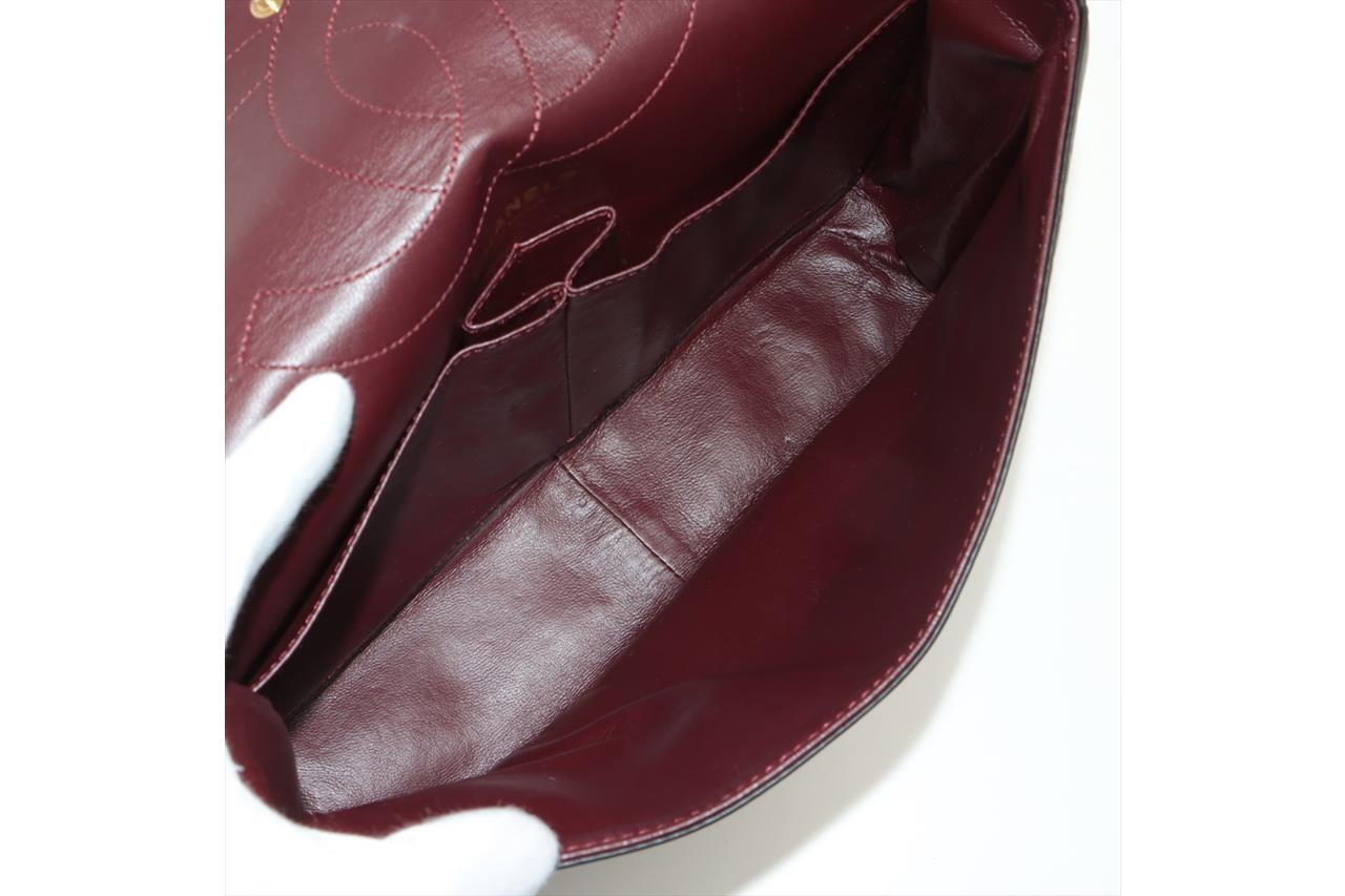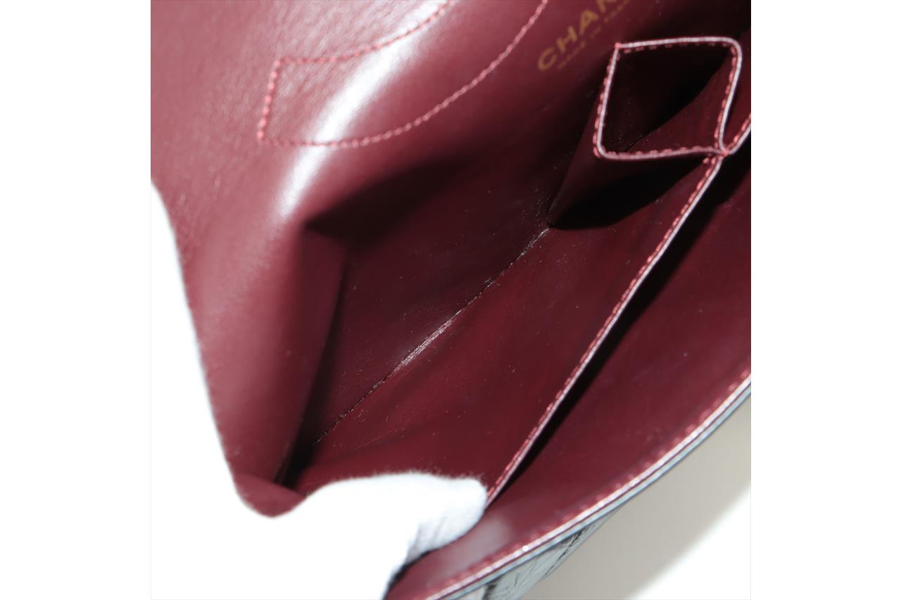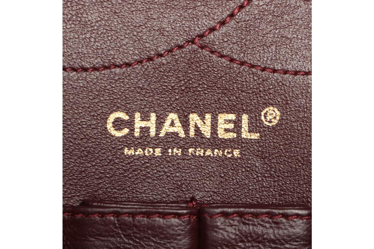 Chanel black quilted crinkled leather 227 classic reissue 2.55 flap bag. Gold-tone hardware, burgundy leather lining with 2 compartments interior, double flaps with snap button and turn-lock closures at front. Approximate dimensions: 31.5cm(L) x 20.5cm(H) x 7cm(D), 48cm single chain-link strap drop height. Accompanied by Chanel certificate card, booklets, dust bag and box. With Entrupy Certificate of Authenticity. (Pre-owned)