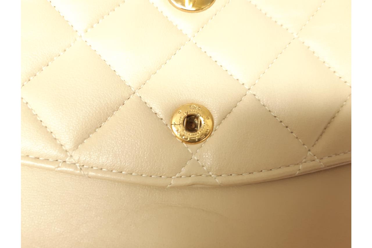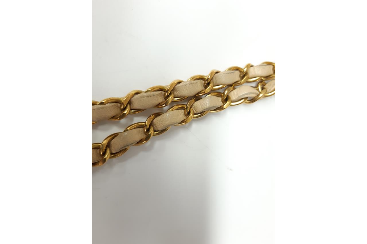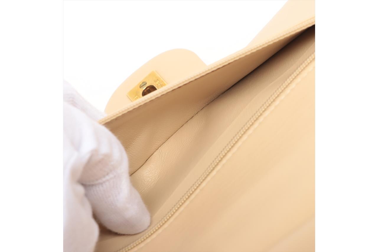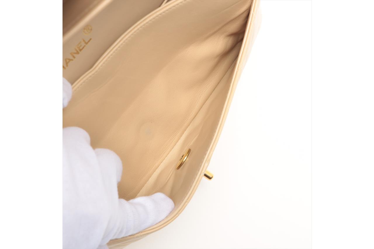 Chanel Classic Double Flap Bag. Featuring beige lambskin leather, gold-tone hardware, and double flaps with CC turn-lock on the front. Approximate dimensions: 25.5cm (L) x 16cm (H) x 6.5cm (D), and 42cm leather and chain strap. Accompanied by Chanel dust bag and box. With Entrupy Certificate of Authenticity. (Pre-owned)