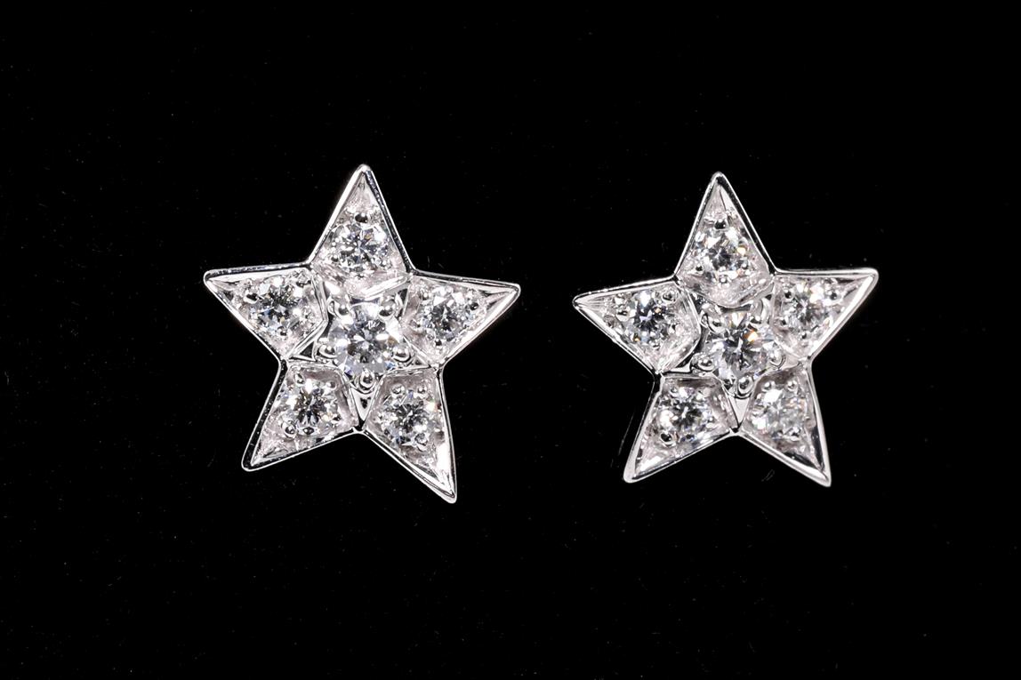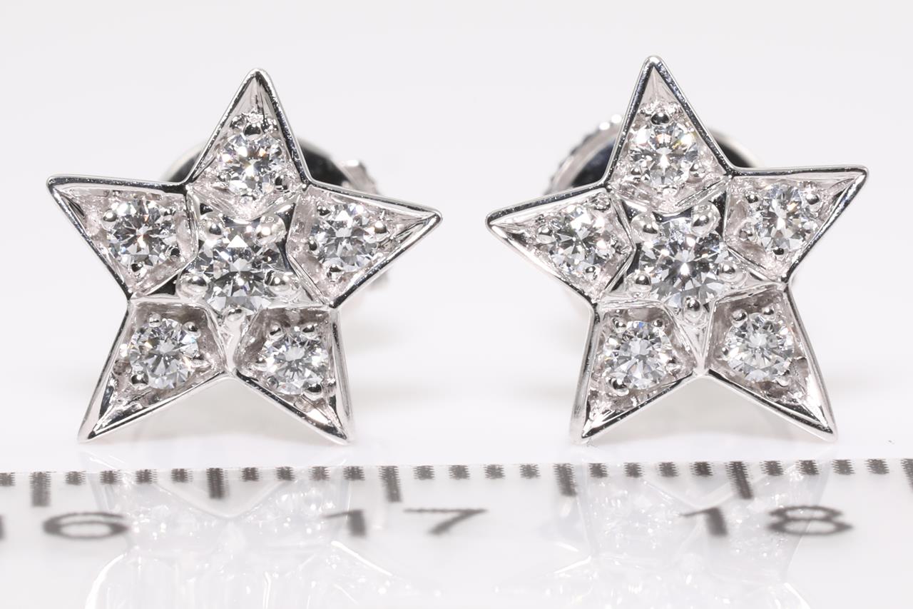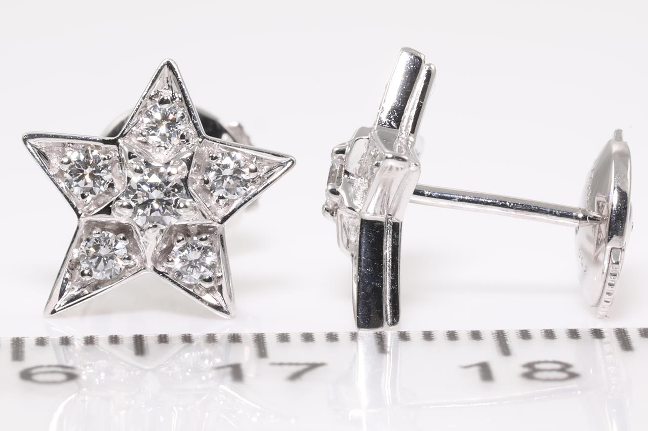 Chanel Comete Geode earrings small version. With Diamonds totalling approximately 0.66cts (Estimated grading: F VS). 18ct white gold. Design ref# J0464. Weight: 3.6g. With certificate #414568. (Pre-owned)