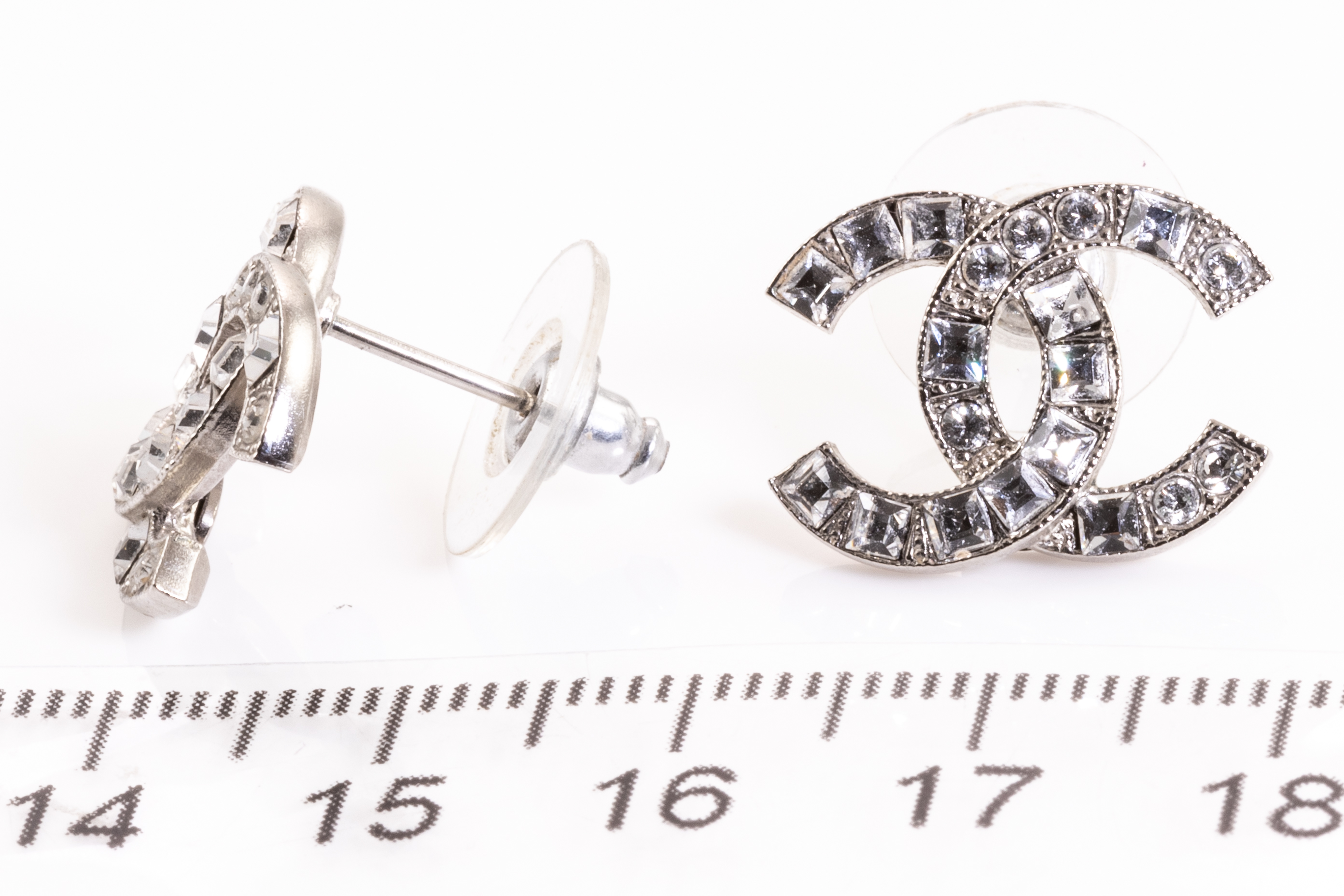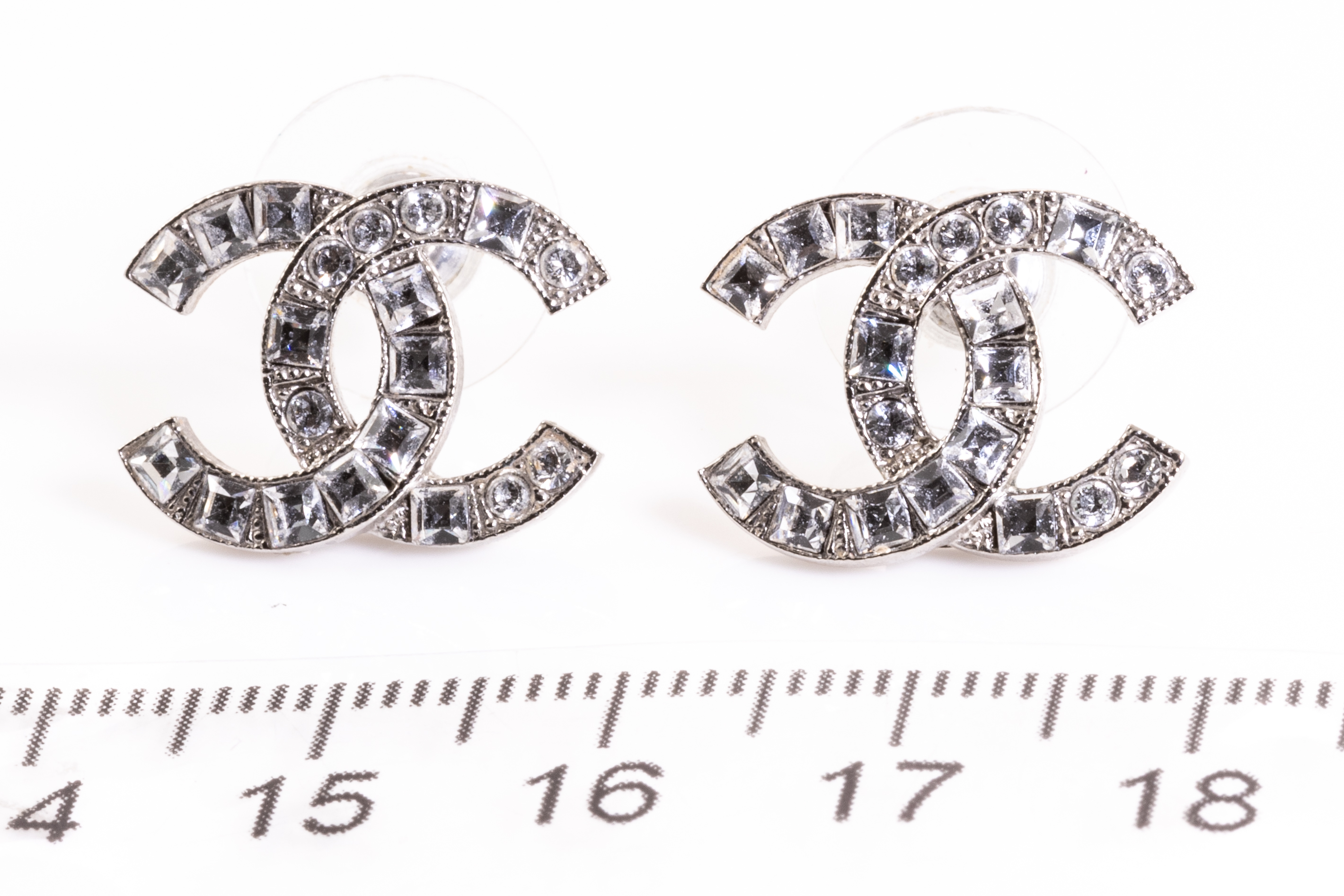 Chanel Fashion earrings, with rhinestones, metal base. Circa 2016. Weight 3.4g. With box. (Pre-owned)