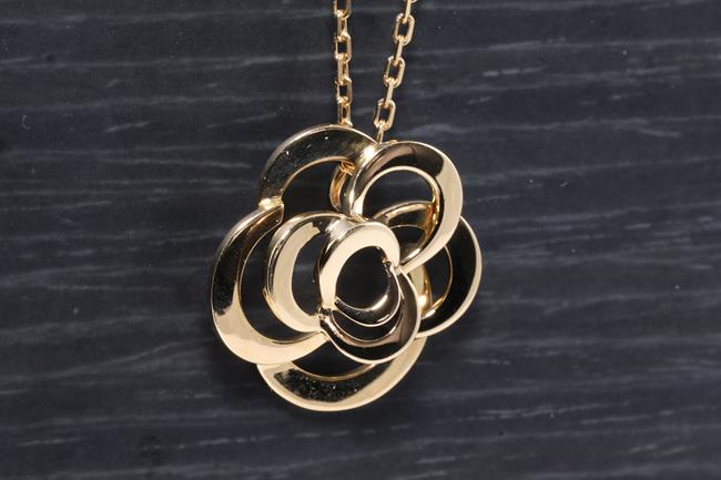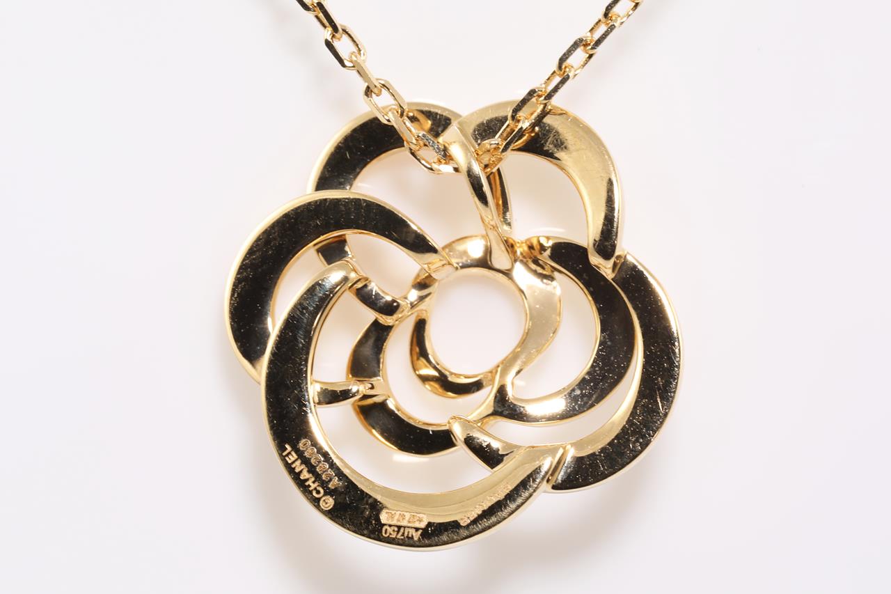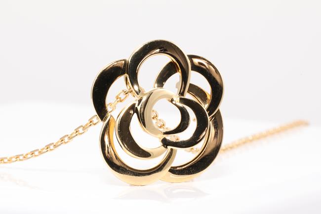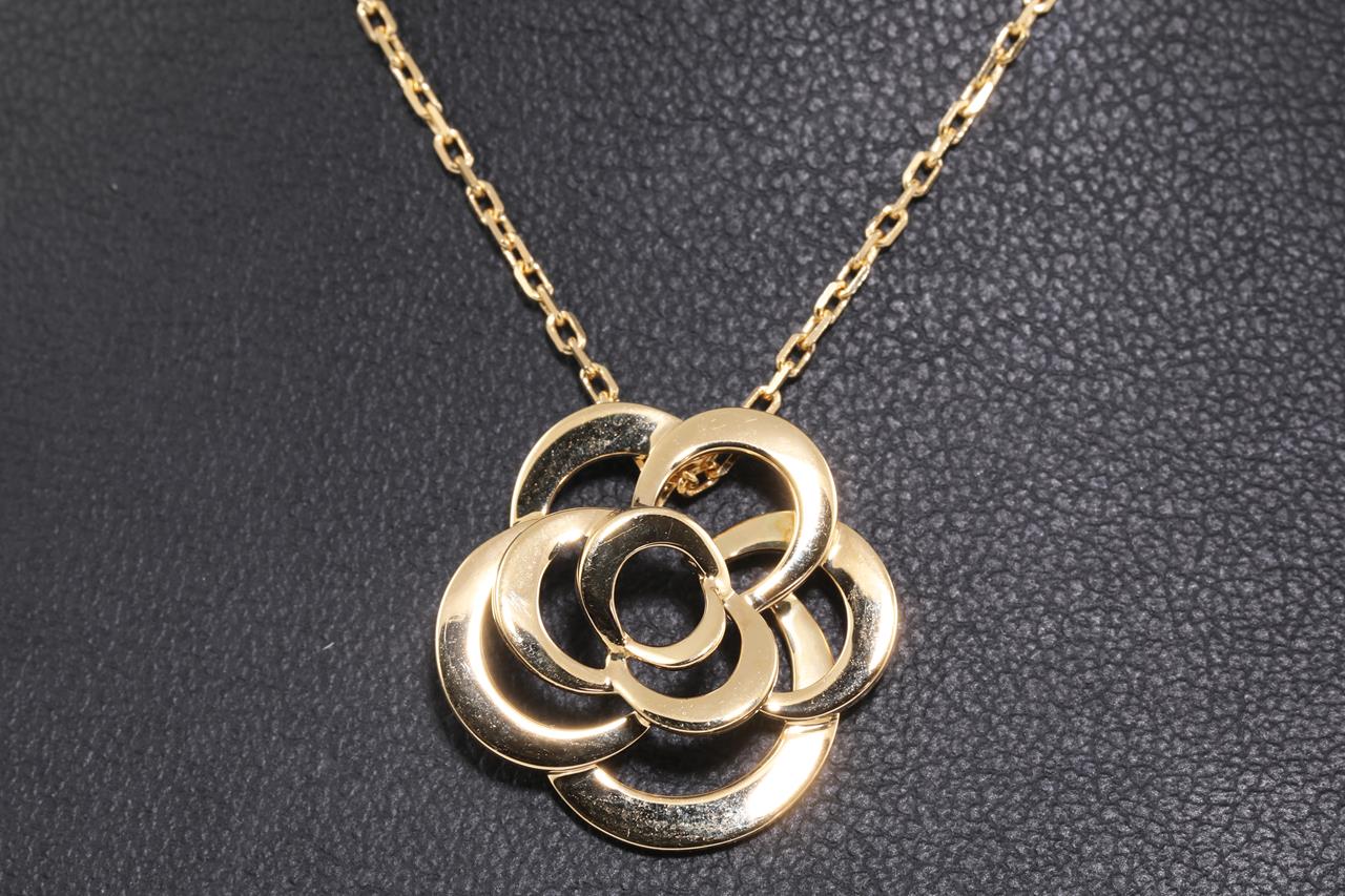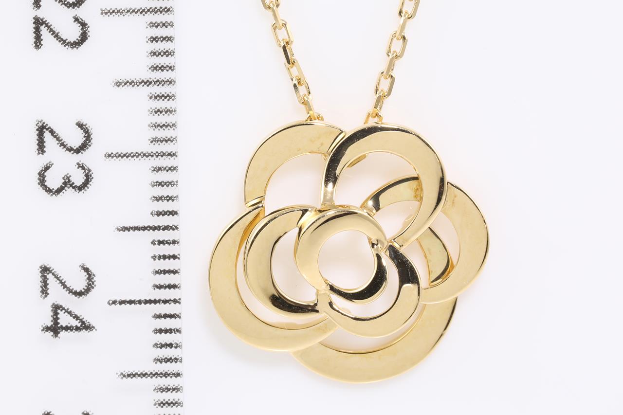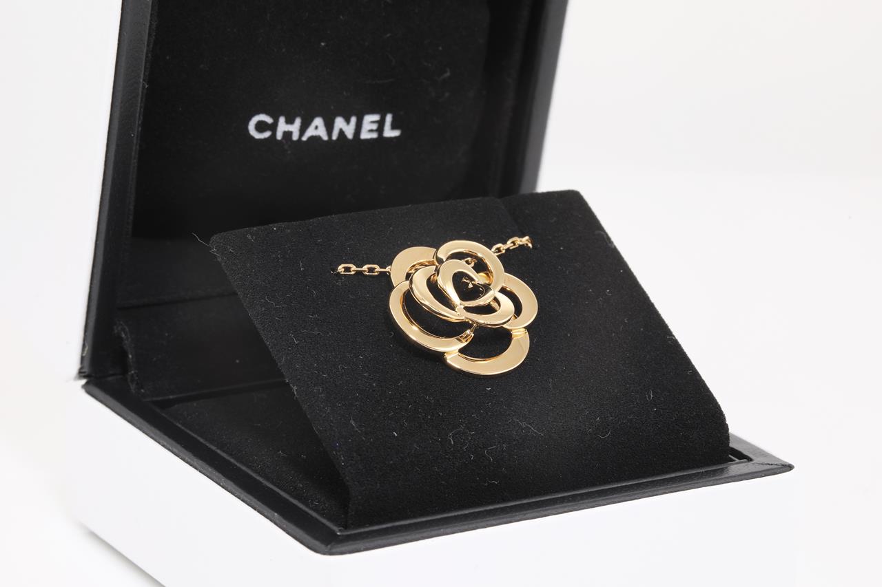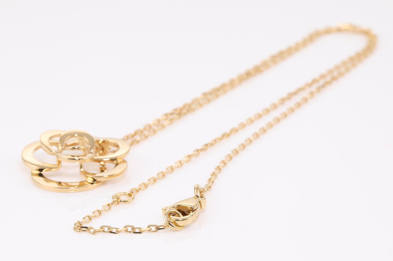 Chanel Fil De Camelia necklace. 18ct yellow gold. Design ref# J2925. Weight: 5.7g. Adjustable max length: 41cm. With Chanel box. With certificate #414629. (Pre-owned)