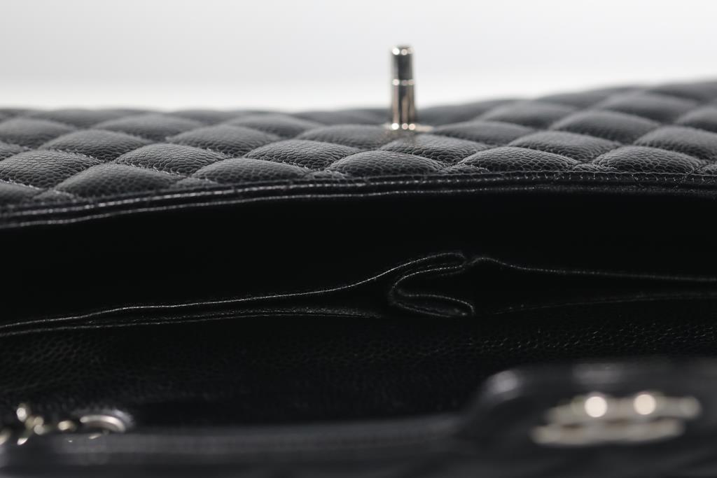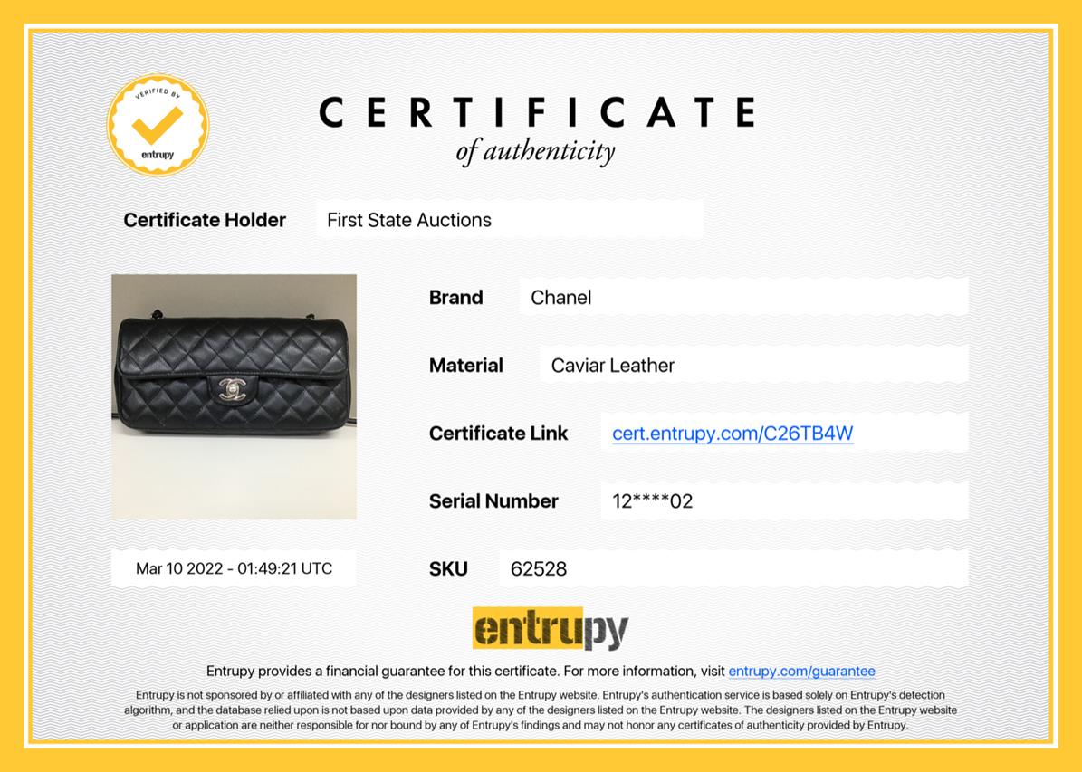 Chanel flap bag. Quilted black leather. Silver tone hardware with leather & chain strap. Dimensions 26cm x 13cm x 5cm. With non-original dust bag. With Entrupy Certificate of Authenticity. (Pre-owned)