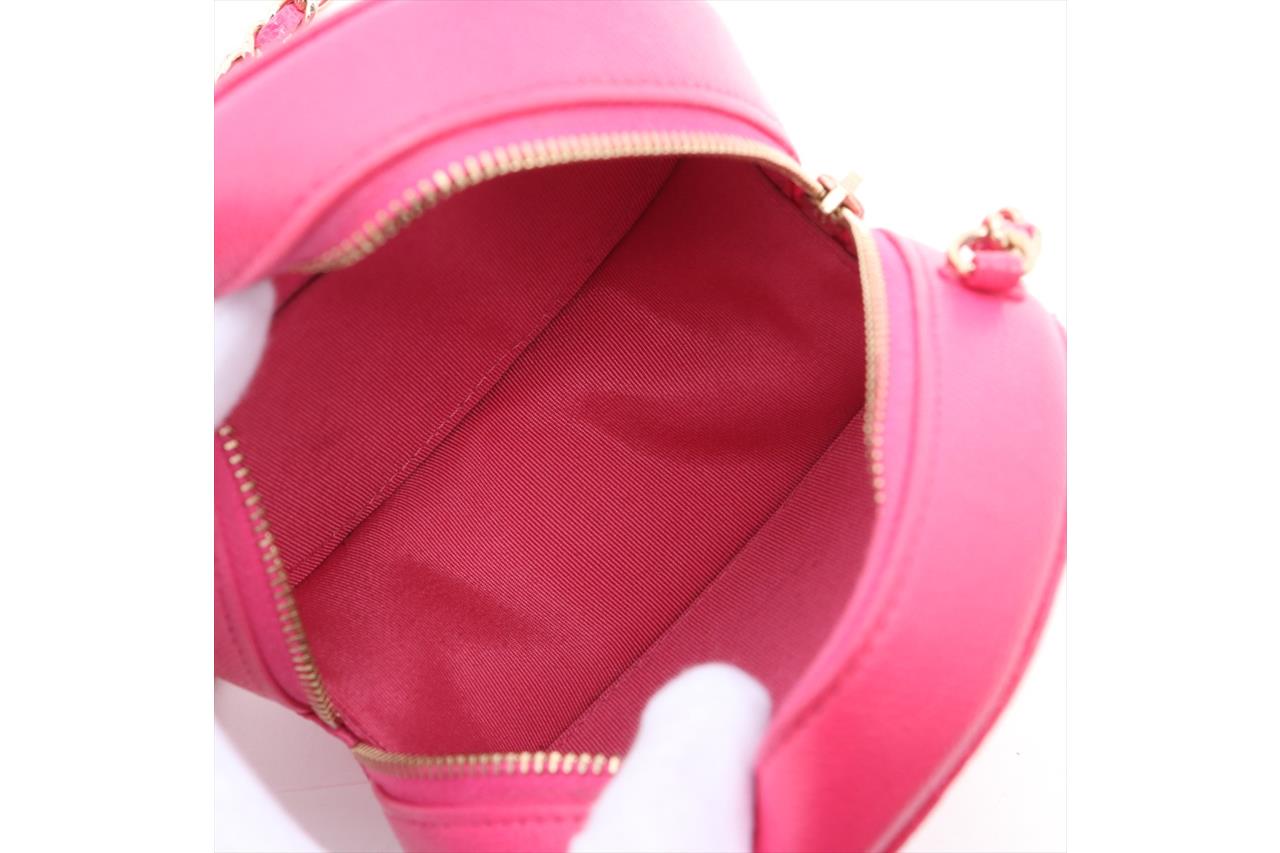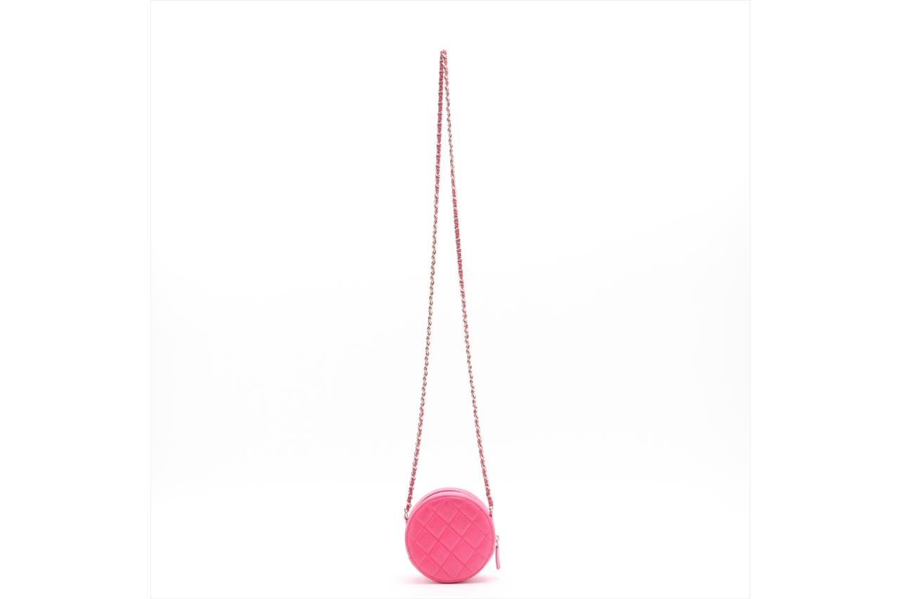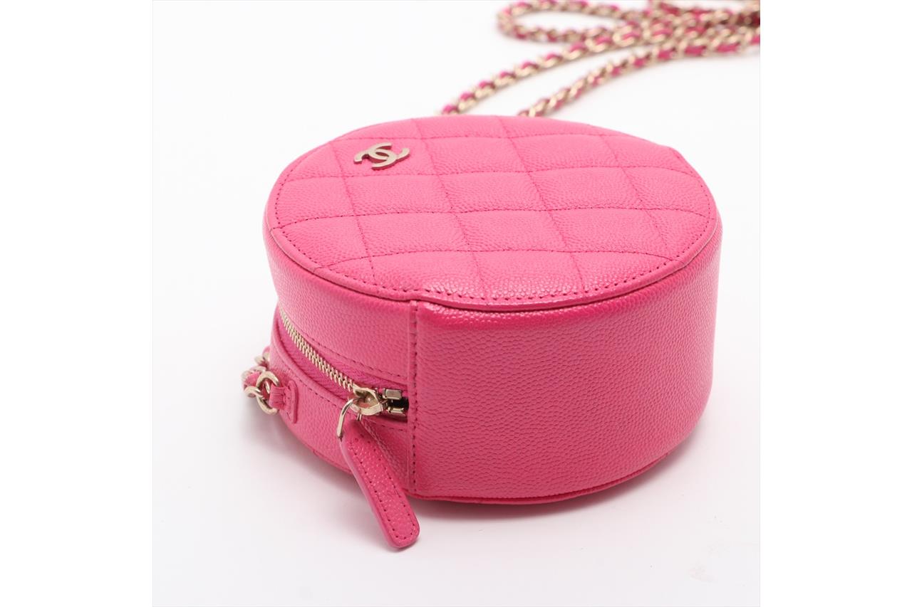 To Price: Chanel matelasse caviar round clutch with chain. Featuring in pink caviar leather & quilted pattern, gold-toned hardware, grosgrain lining & dual interior pockets, zip closure at top and chain-link shoulder strap. Approximate dimensions: 12cm(L) x 12cm(H) x 5.5cm(D), strap drop height: 58cm. Accompanied by Chanel certificate card, booklets, dust bag and box. With Entrupy Certificate of Authenticity. (Pre-owned)
