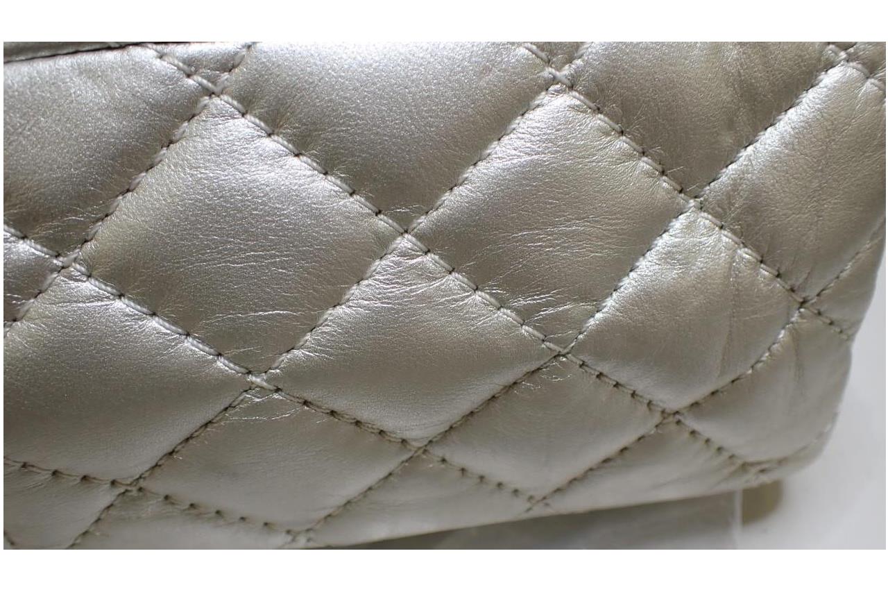 Chanel Metallic Silver Quilted Reissue 2.55 Classic Double Flap Bag
