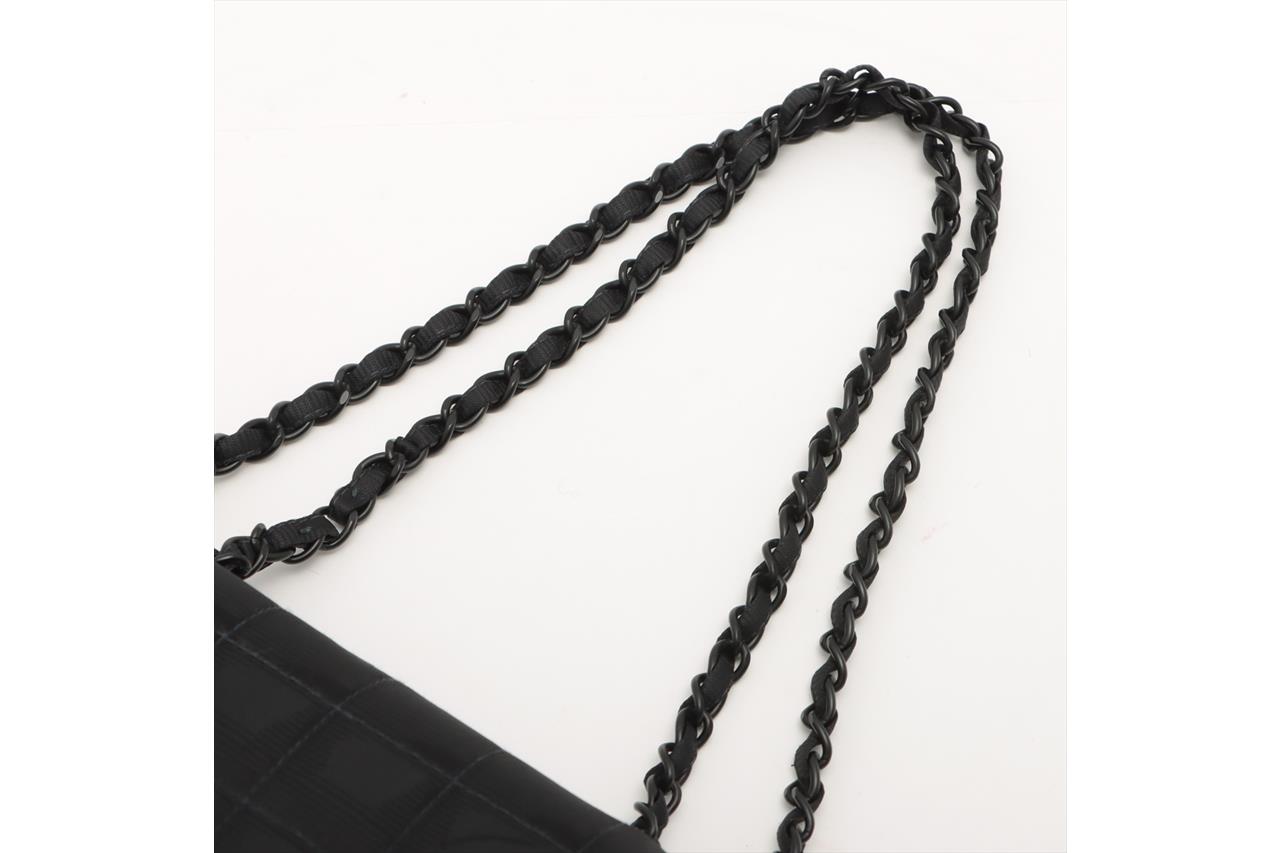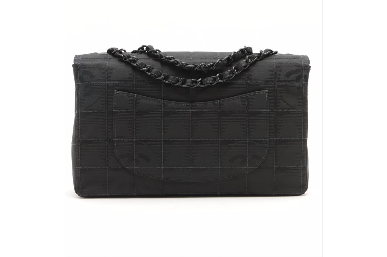 Chanel New Travel Line Flap Bag. Featuring black nylon and leather exterior with one flat back pocket, black-tone hardware, black satin interior, one main compartment, one zipped pocket and one flat pocket. Approximate dimensions: 25cm (L) x 15cm (H) x 7cm (D), and 24cm double chain. Accompanied by Chanel dust bag, and box. With Entrupy Certificate of Authenticity. (Pre-owned)
