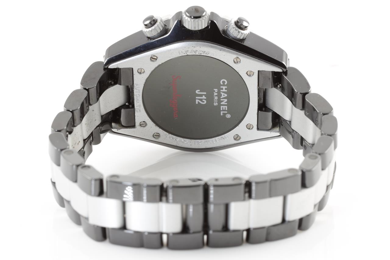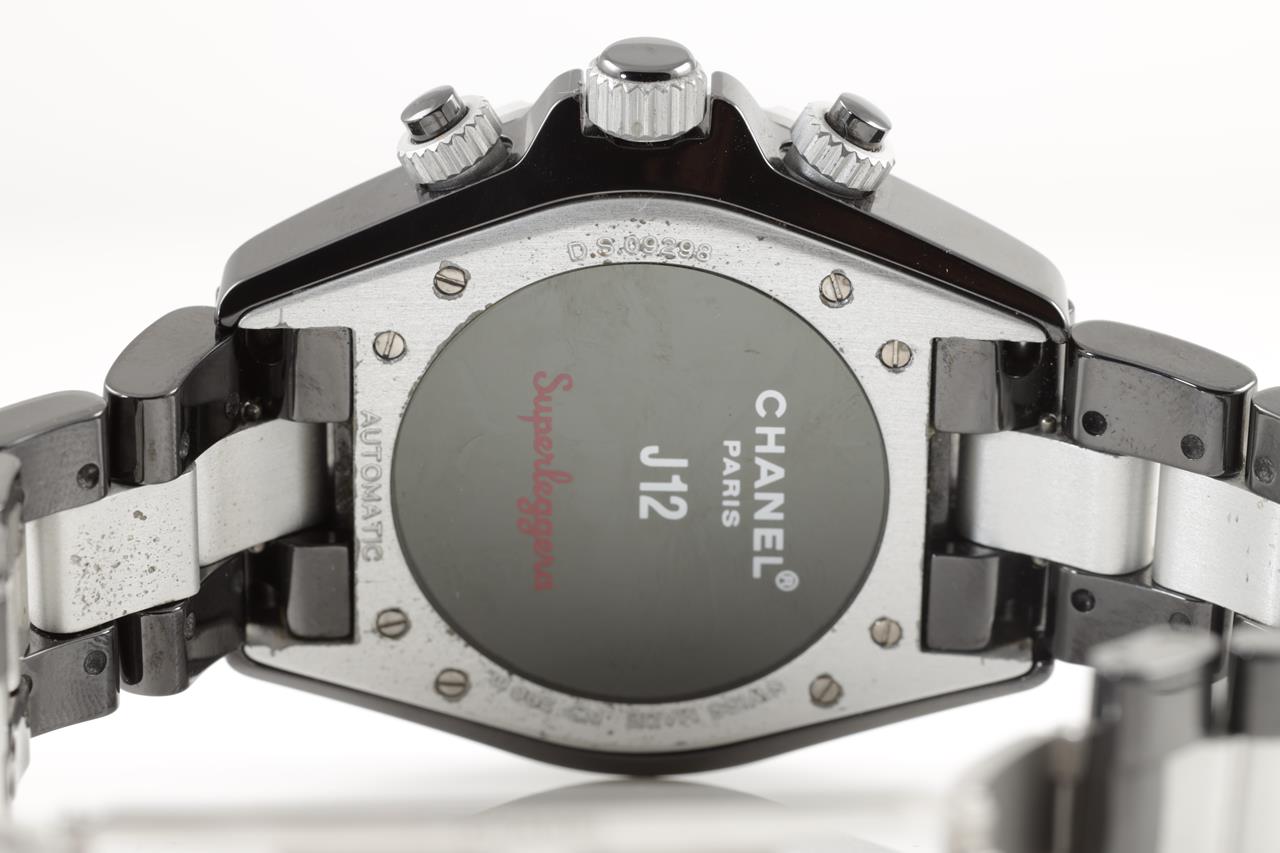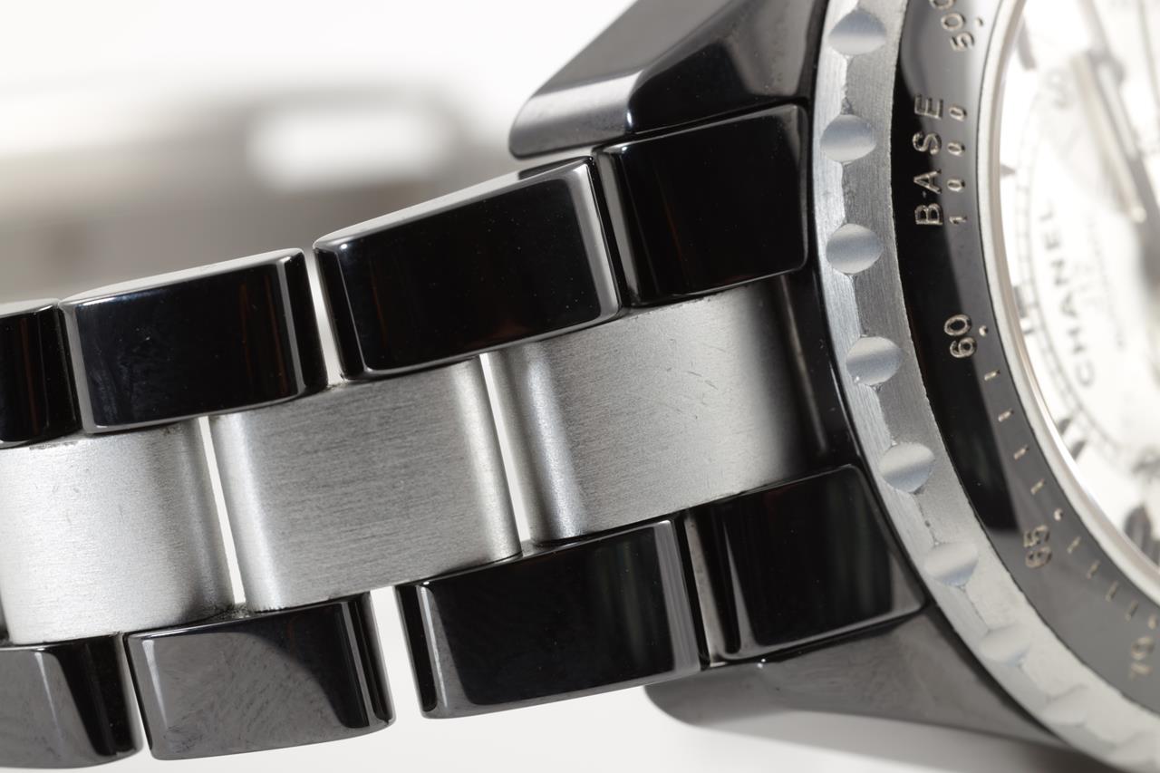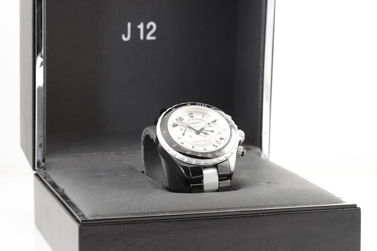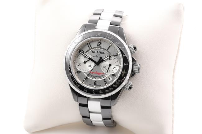 Chanel Superleggera ceramic and aluminium automatic watch. Silver chronograph dial, date, case diameter: 41mm, wrist size: 18cm, Swiss made. Ref# H1624. With Chanel black ceramic and aluminium trim bracelet and clasp. With certificate of authenticity, Chanel guarantee card dated 05/11/2023 and Chanel box. 3 month FSA warranty. (Pre-owned