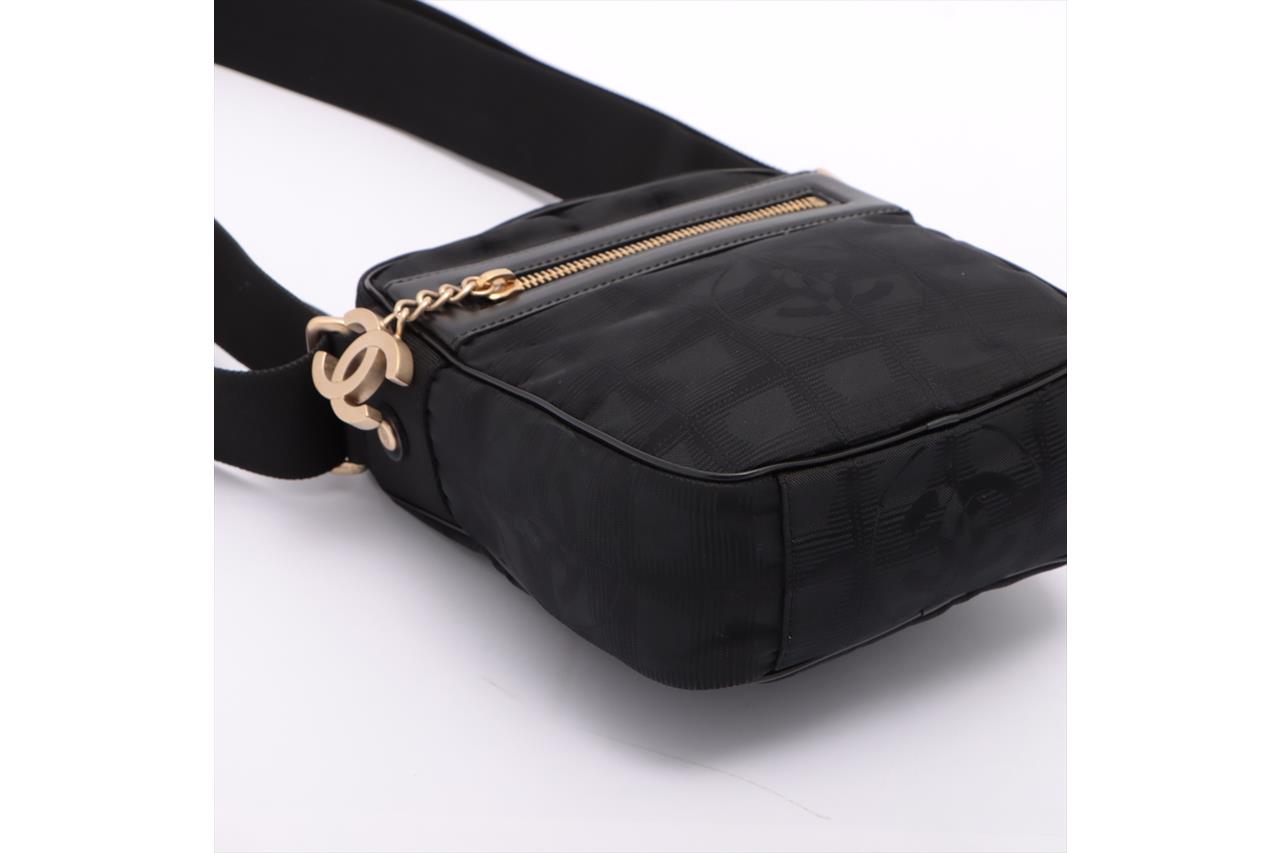 Chanel Travel Line crossbody nylon mini bag. Matte gold tone hardware. Made in Italy. Approximate Dimensions: 15cm (L) x 19cm (H) x 6cm (D). Adjustable strap: maximum 58cm. With Entrupy Certificate of Authenticity. (Pre-owned)