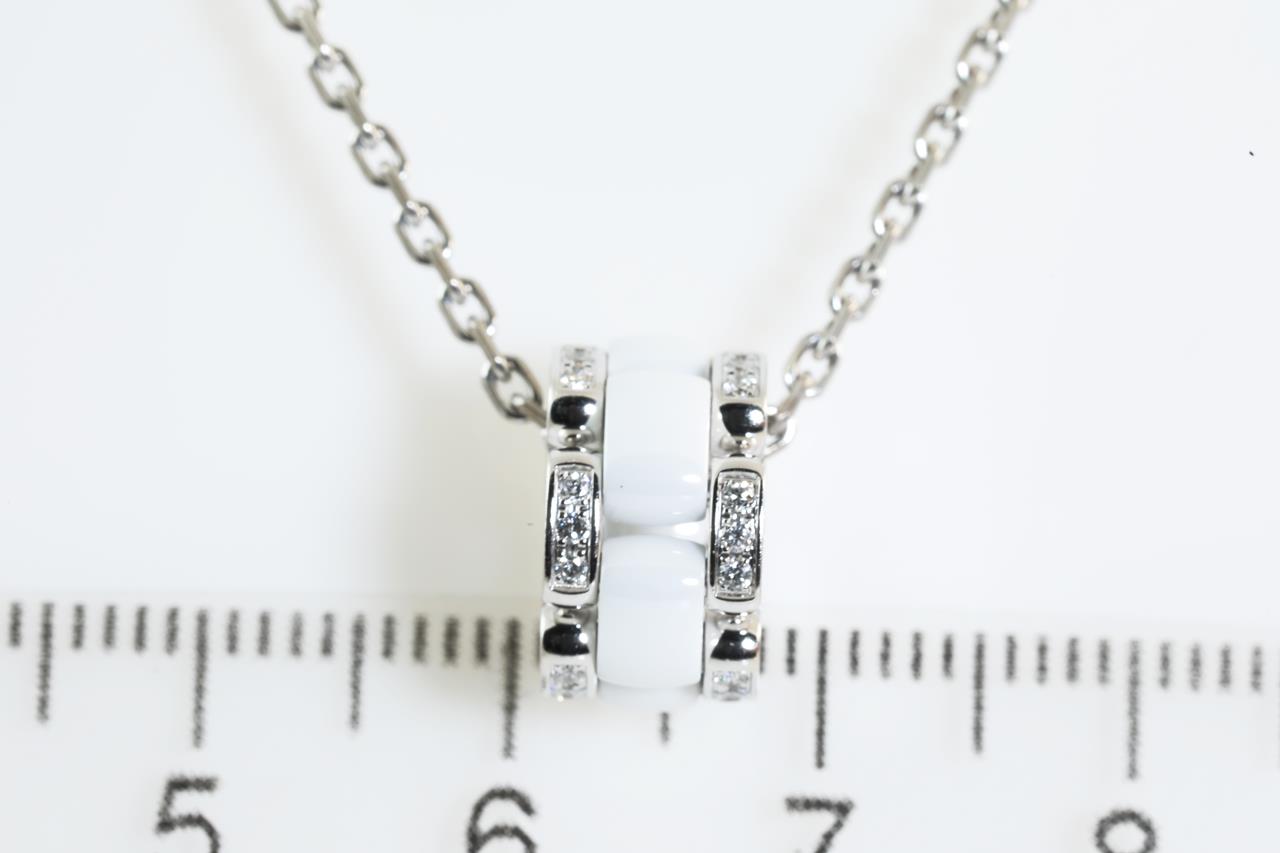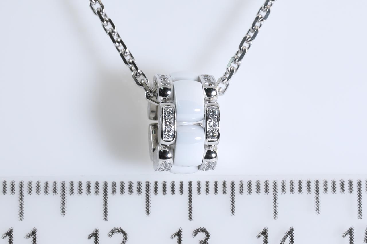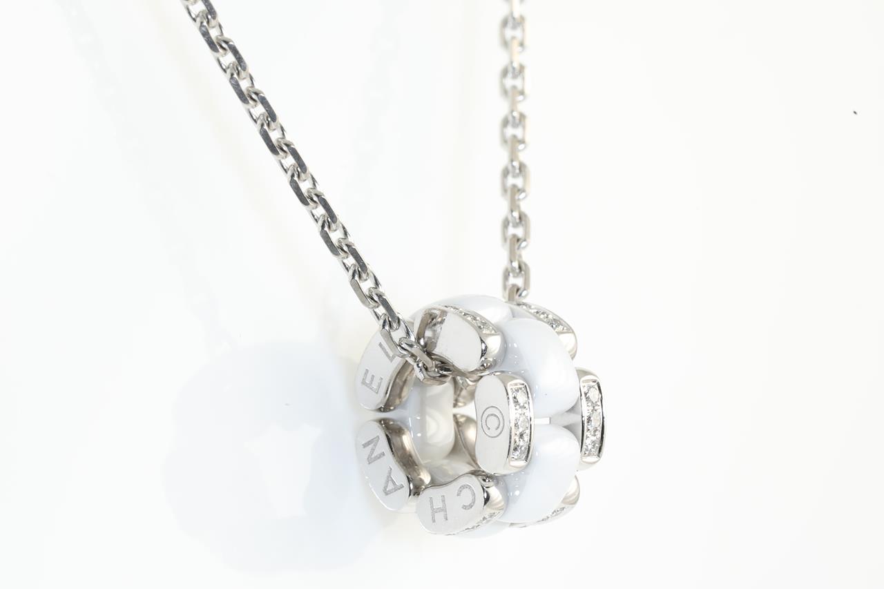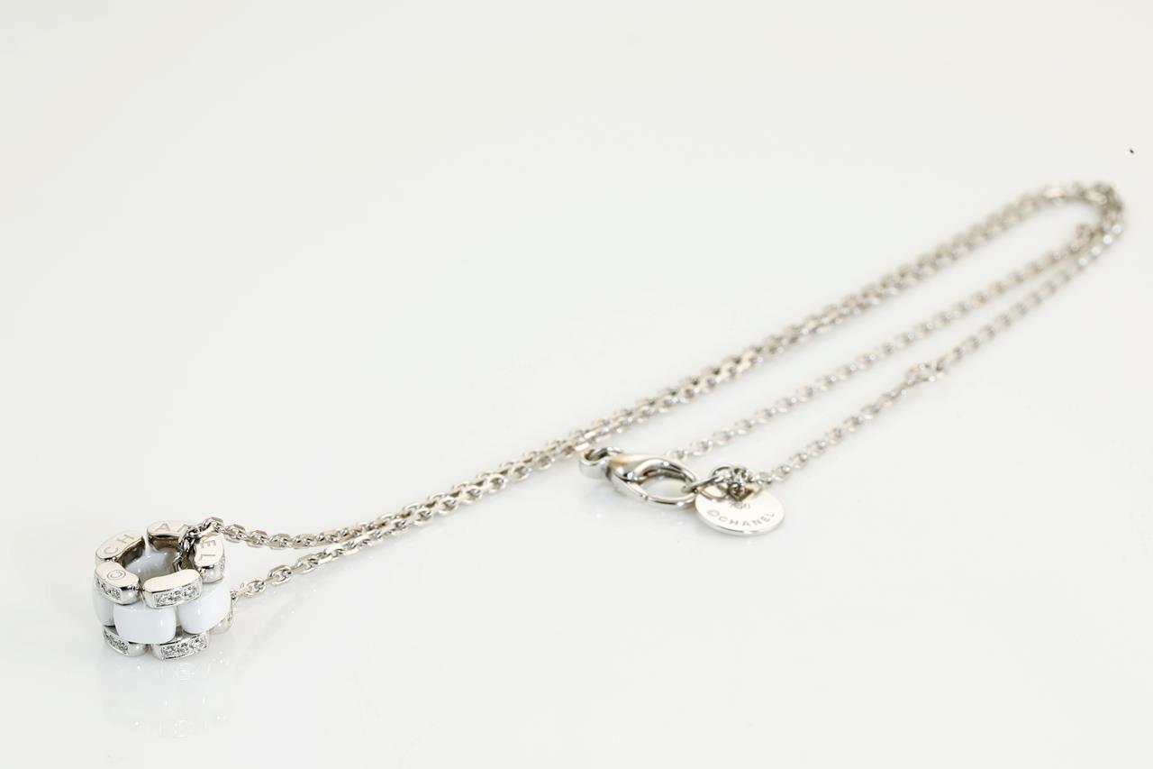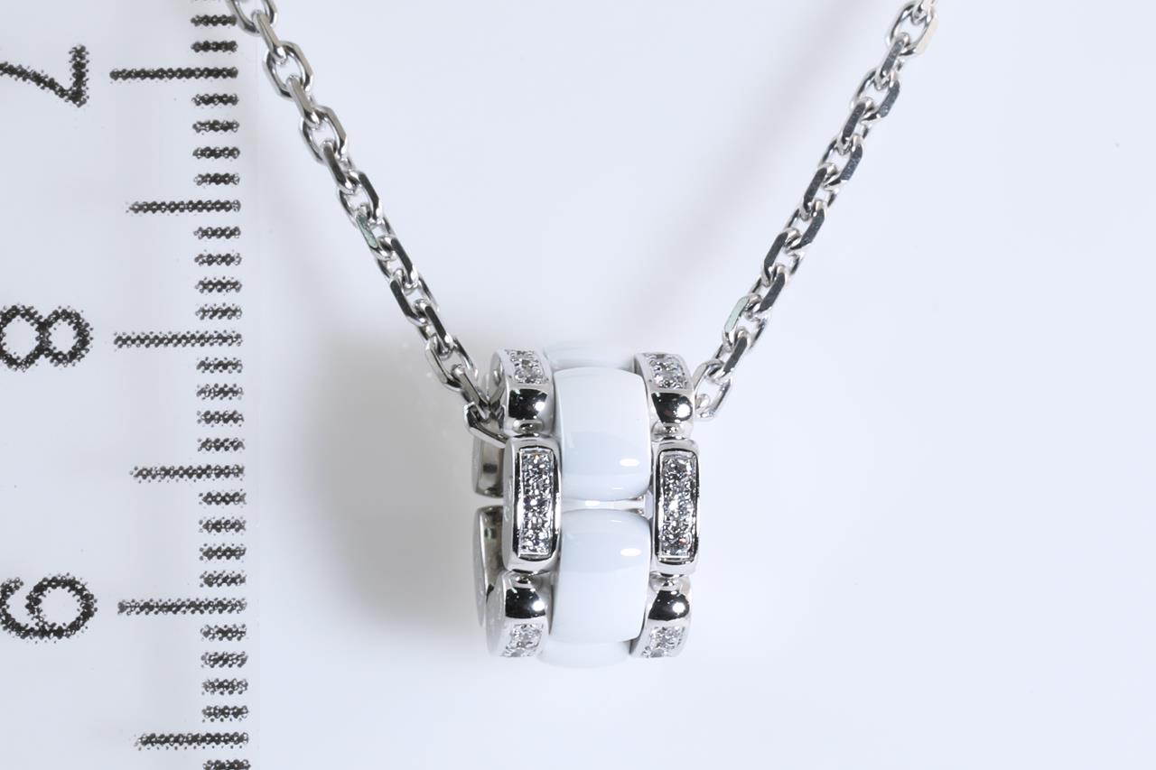 Chanel Ultra Diamond necklace with Diamonds totalling approximately 0.30cts (Estimated grading: F VS). 18ct white gold and white ceramic with 44cm chain. Weight: 10.3g. Adjustable max length: 44cm. Ref#51890. Design# J3174. With certificate #414177. (Pre-owned)
