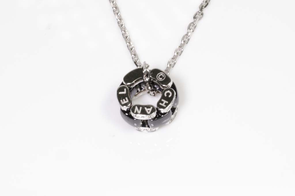 Chanel Ultra Diamond necklace with Diamonds totalling approximately 0.15cts with black ceramic. 18ct white gold with 40cm 18ct white gold chain. Weight: 10.0g. With Certificate Booklet dated 10/06/2011. With Certificate #416080. (Pre-owned)