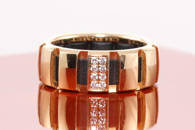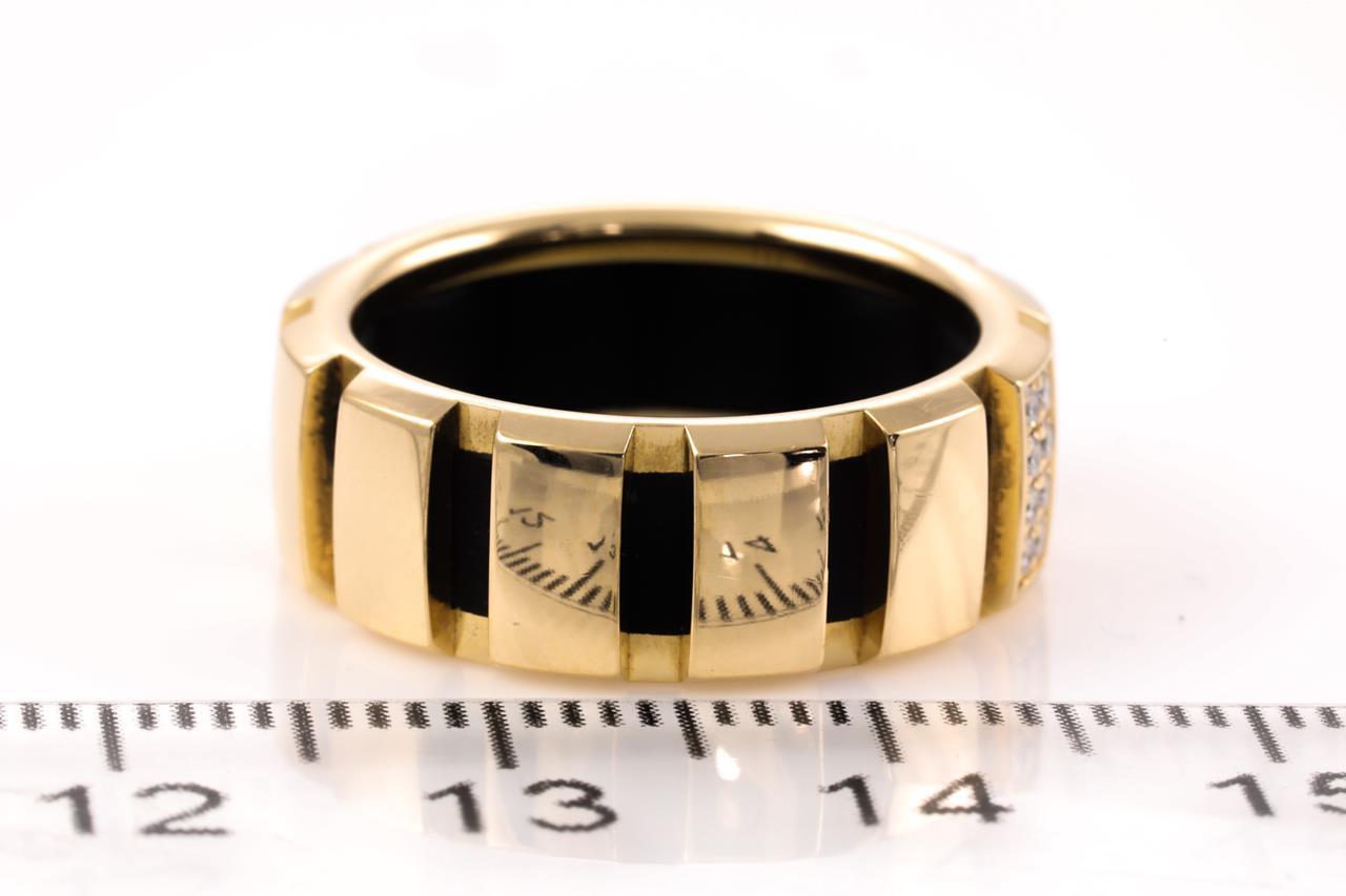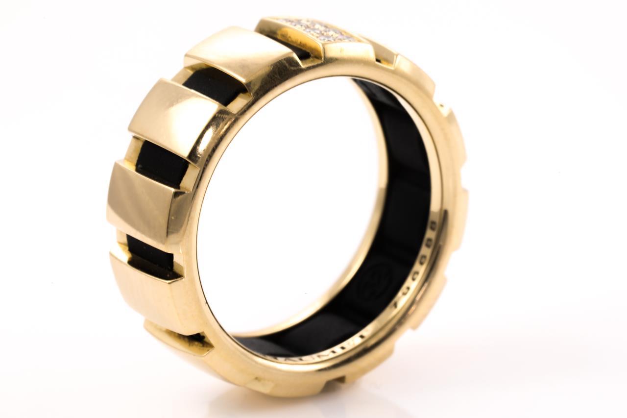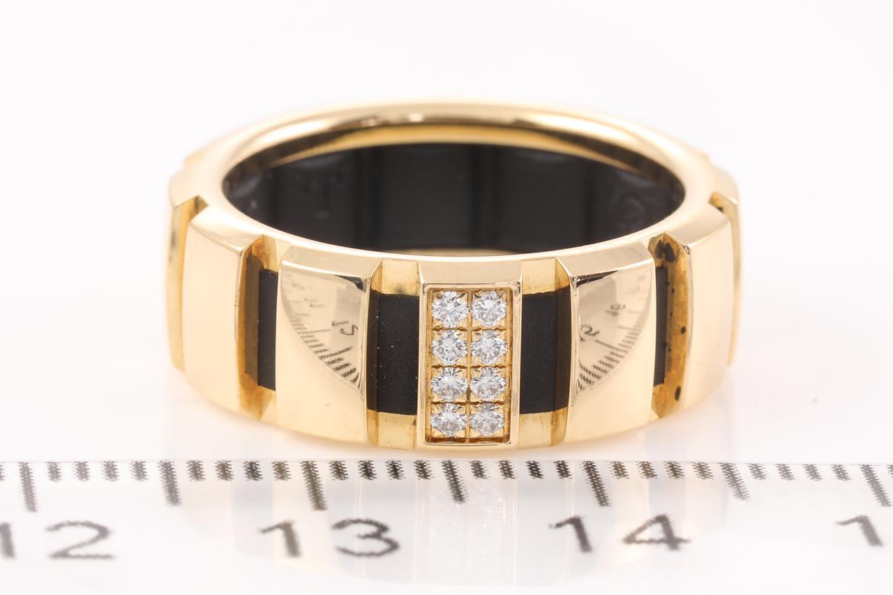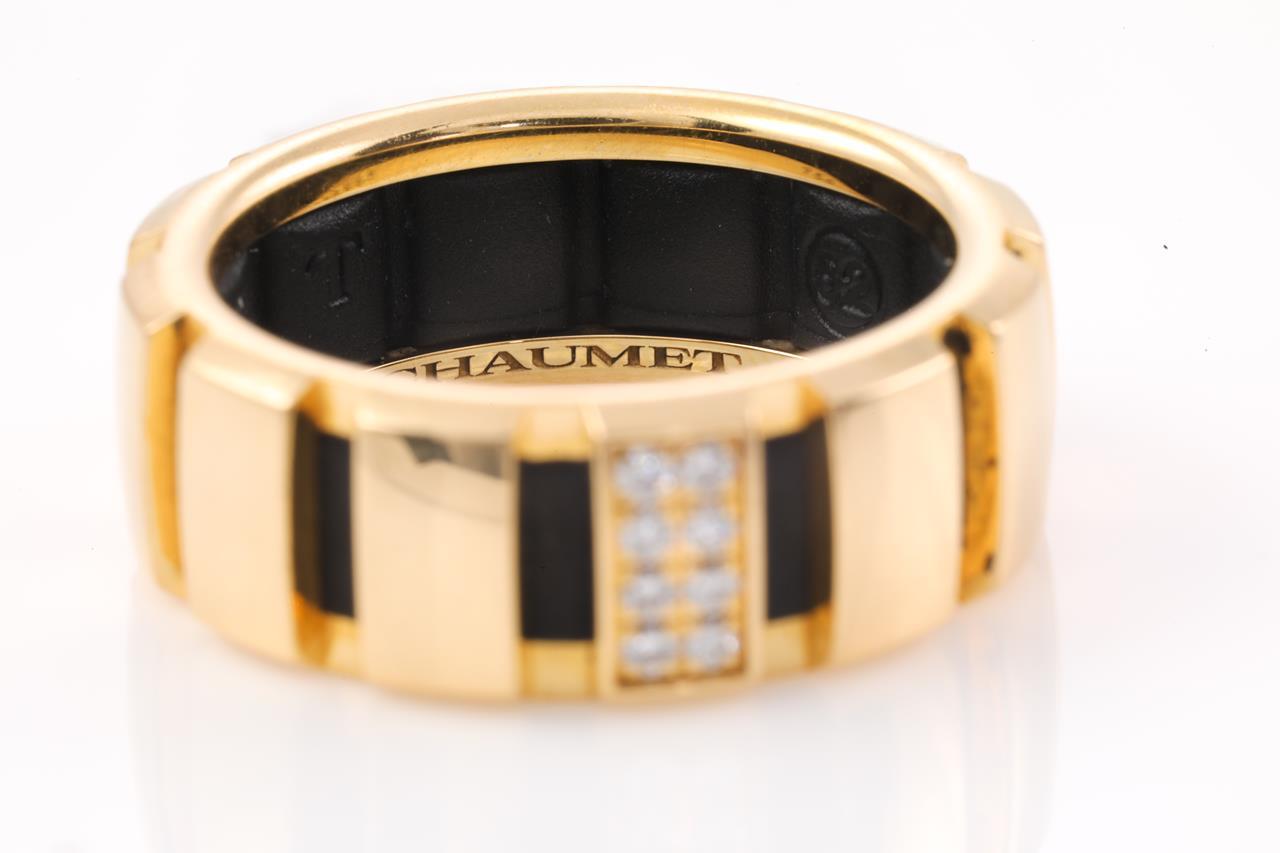 Chaumet Class One ring with 8 Diamonds totalling approximately 0.04cts. 18ct yellow gold & black rubber. Ring size L - ring resizing is not recommended. Weight: 7.5g. (Pre-owned)