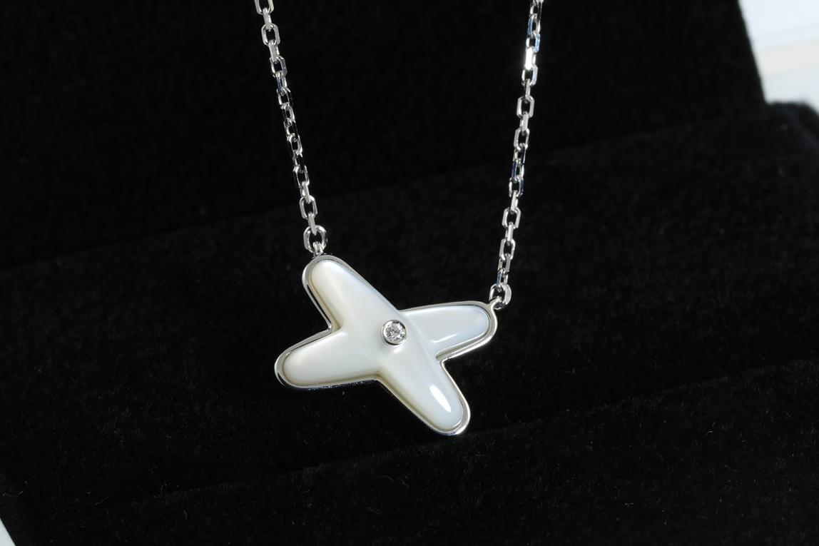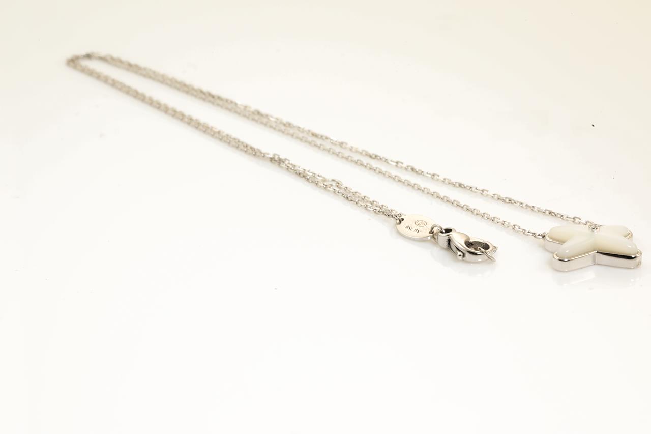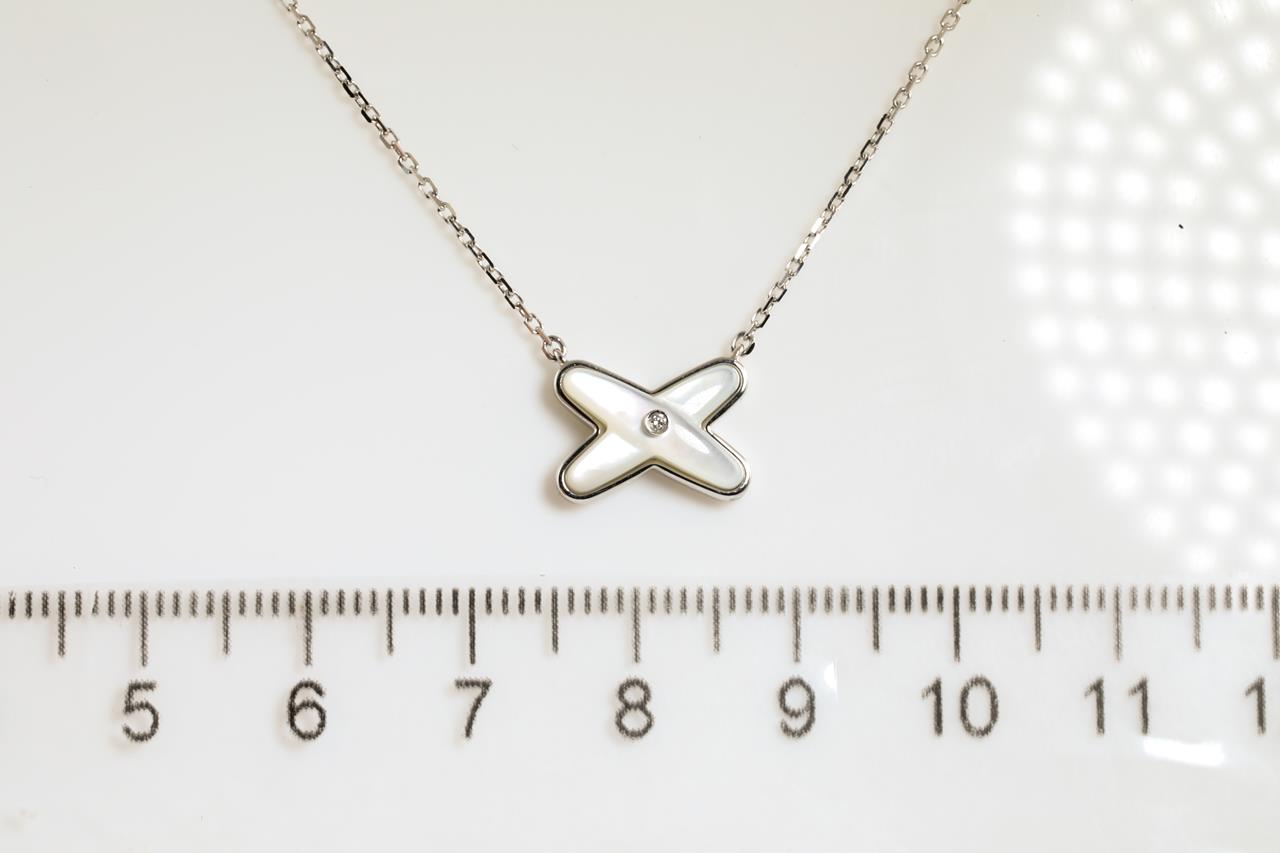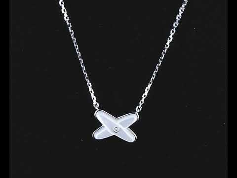 Chaumet Jeux de Liens Diamond and mother-of-pearl pendant with a Diamond of approximately 0.01ct. With Chaumet authenticity certificate #083161. 18ct white gold with attached chain. Adjustable max length: 41cm. Weight: 3.3g with Chaumet box. (Pre-owned)