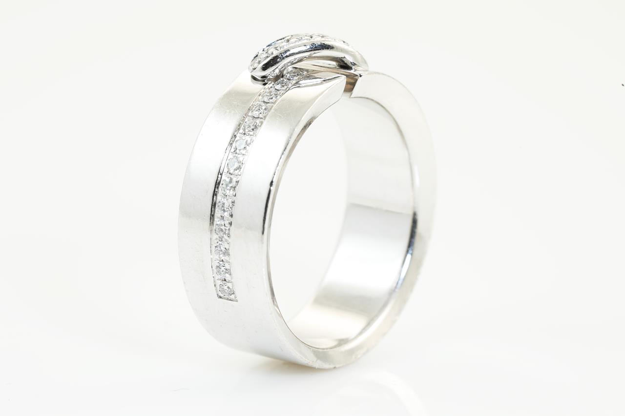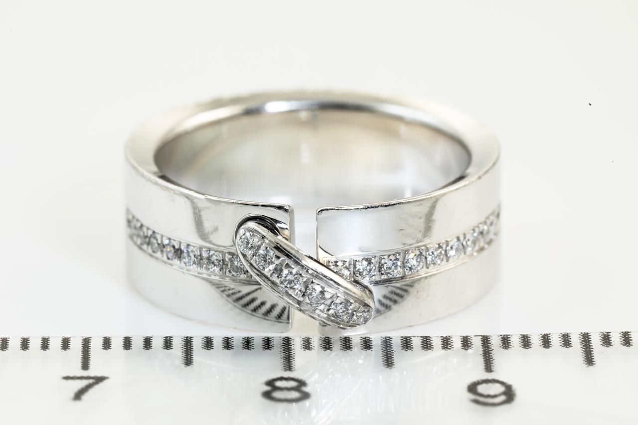 Chaumet Liens ring with Diamonds totalling approximately 0.24cts. 18ct white gold. Ring size: J1/2 - ring resizing is not recommended. ref# 907303. Chaumet stamped size 50. Weight: 9.0g. With Chaumet box. (Pre-owned)