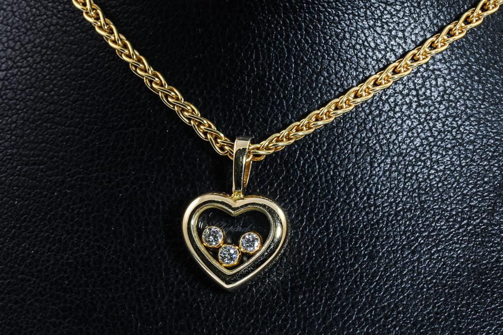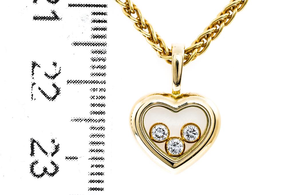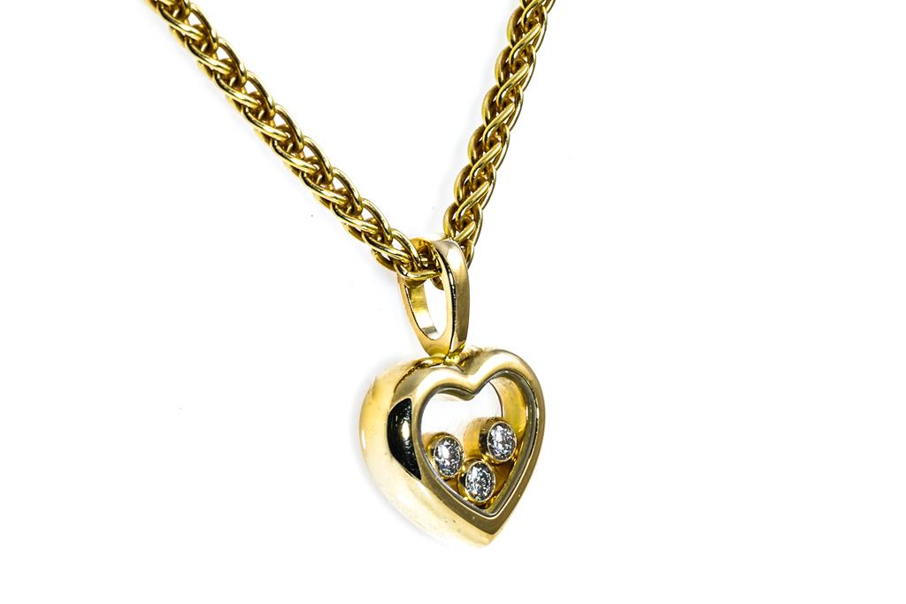Chopard Happy Diamond Icons pendant with 3 floating round Diamonds totalling 0.15cts. 18ct yellow gold with 18ct yellow gold 42cm chain. Weight: 12g. (Pre-owned)