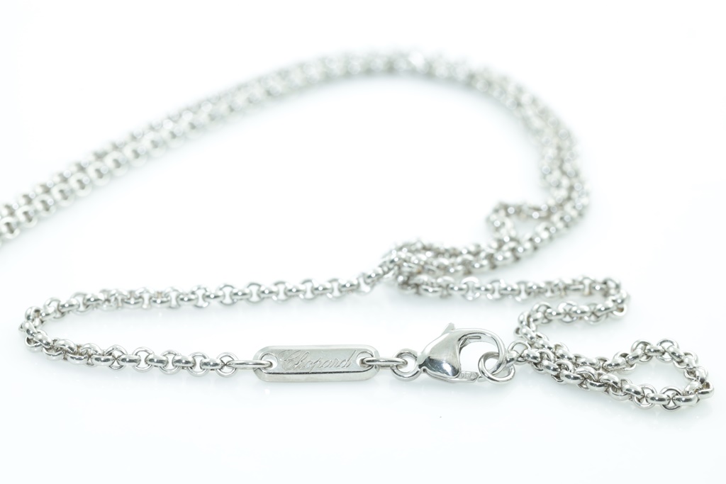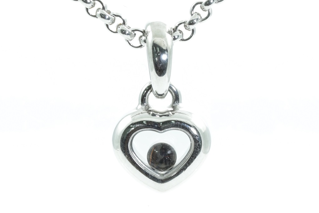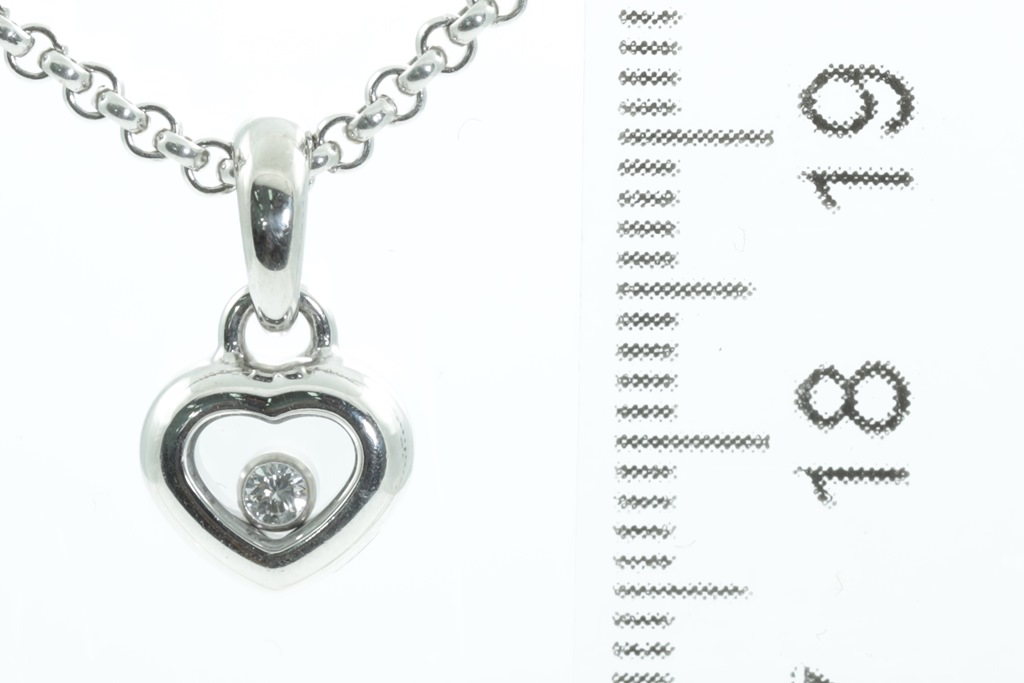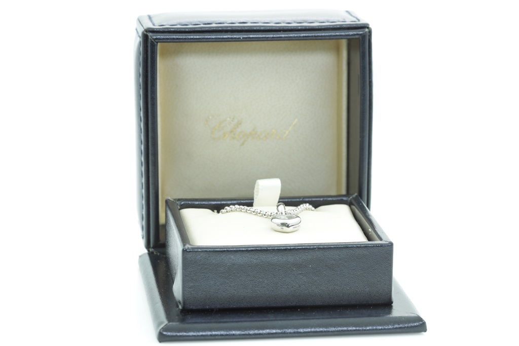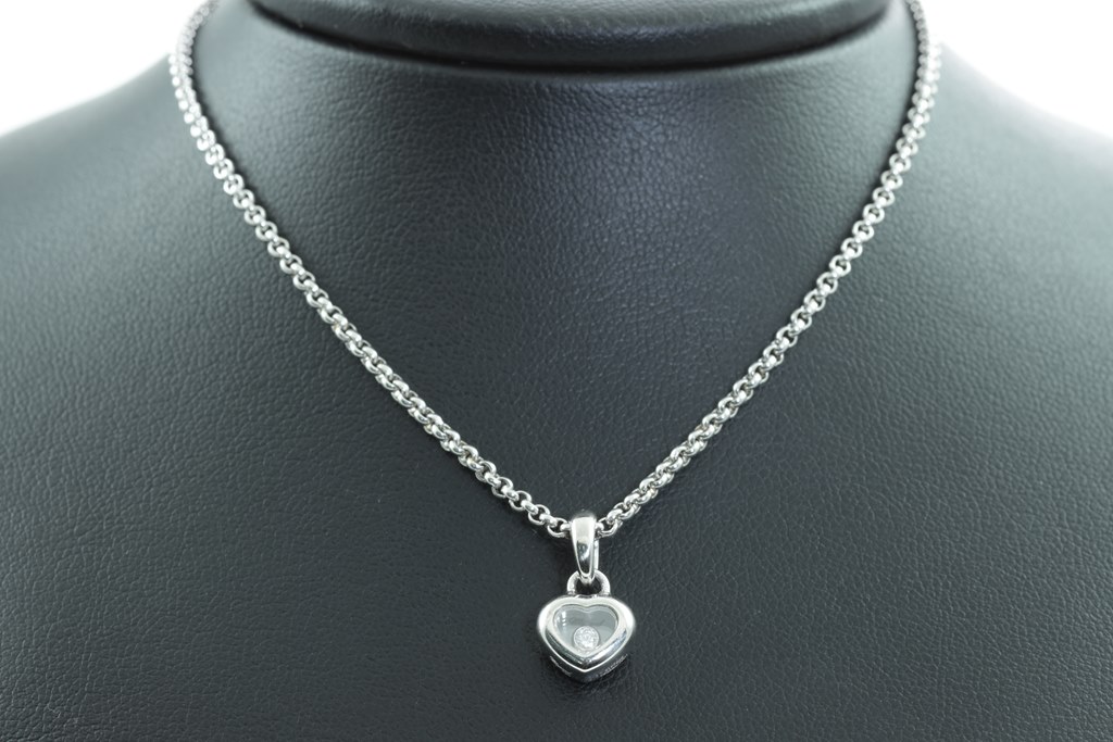 Chopard Happy Diamonds Icons heart pendant with a round floating Diamond of 0.05ct. 18ct white gold with 42cm chain. Weight: 11.3g. With Chopard box. (Pre-owned)
