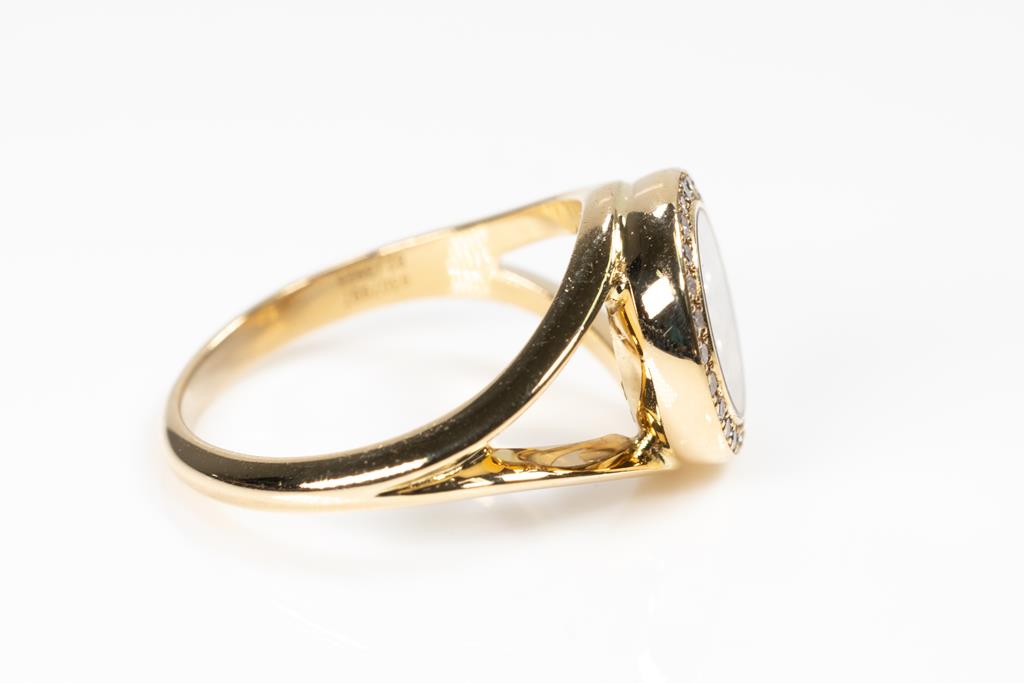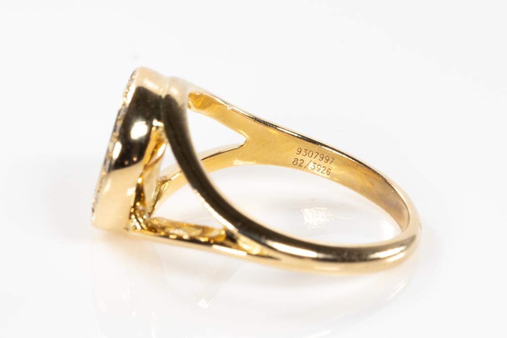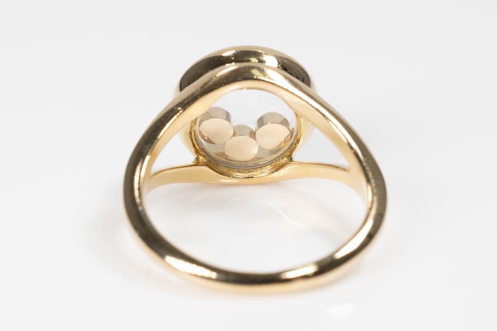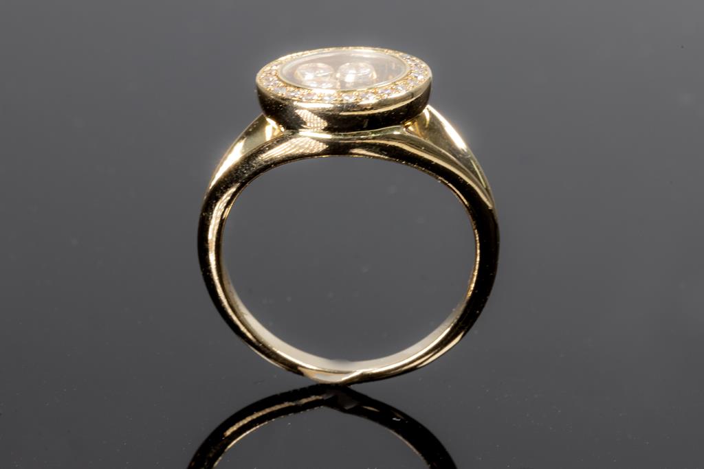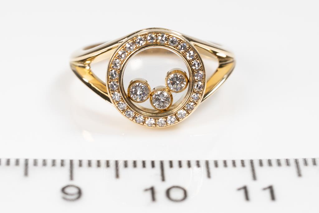 Chopard Happy Diamonds ring with round Diamonds totalling approximately 0.35cts (Estimated grading: F VS). 18ct yellow gold. Ring size L - ring resizing is not recommended. Weight: 5.7g. (Pre-owned)