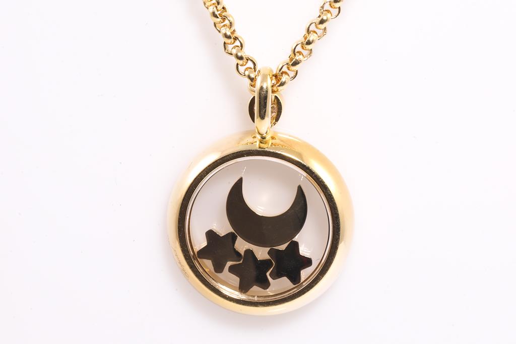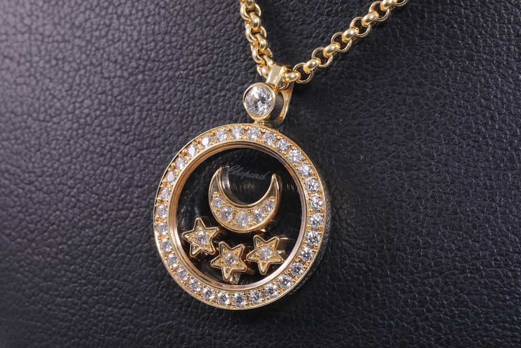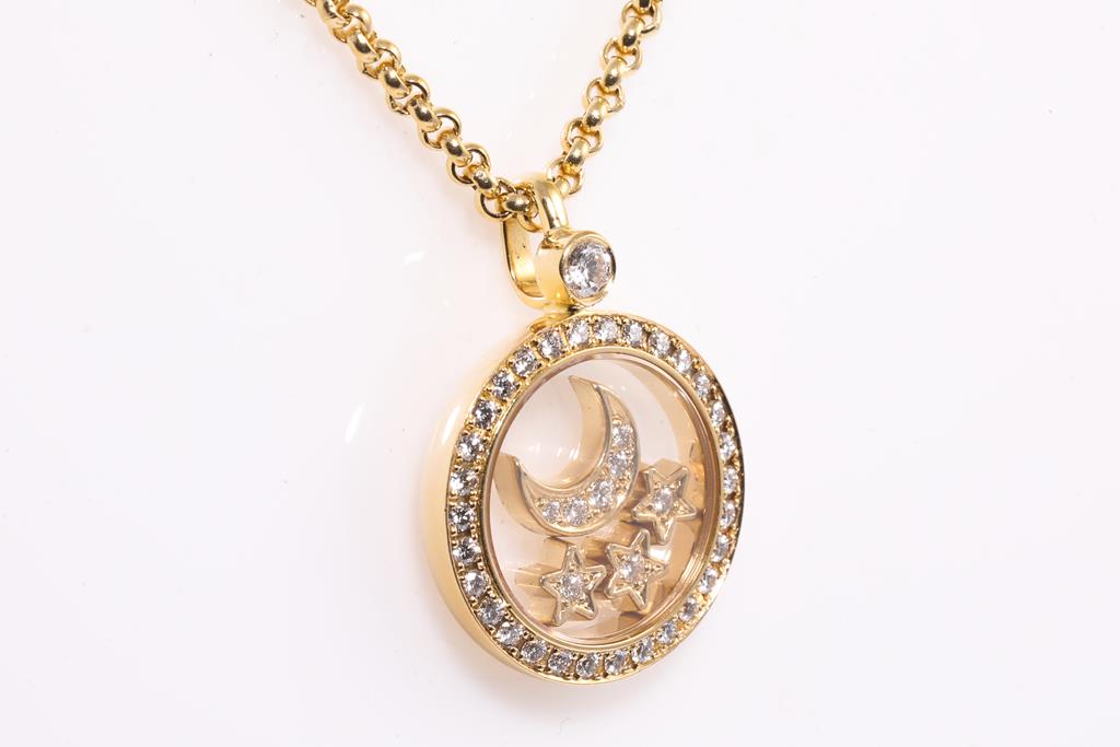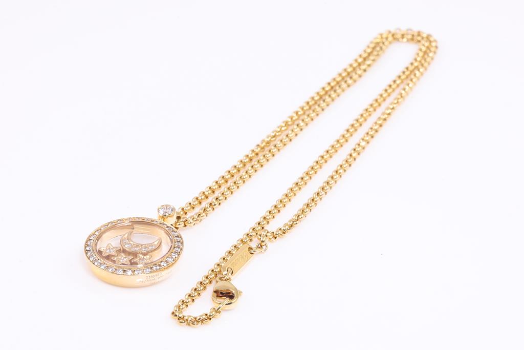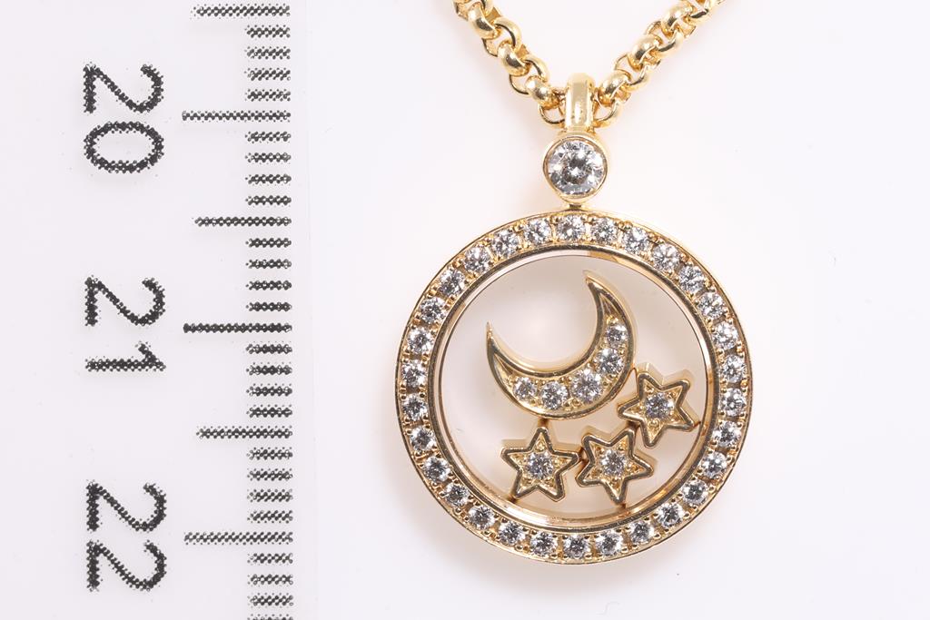 Chopard Happy moon and stars pendant with 39 round Diamond totalling 0.48cts (Estimated grading: G VS). 18ct yellow gold with 42cm chain. Weight: 15g. With certificate #415560. (Pre-owned)