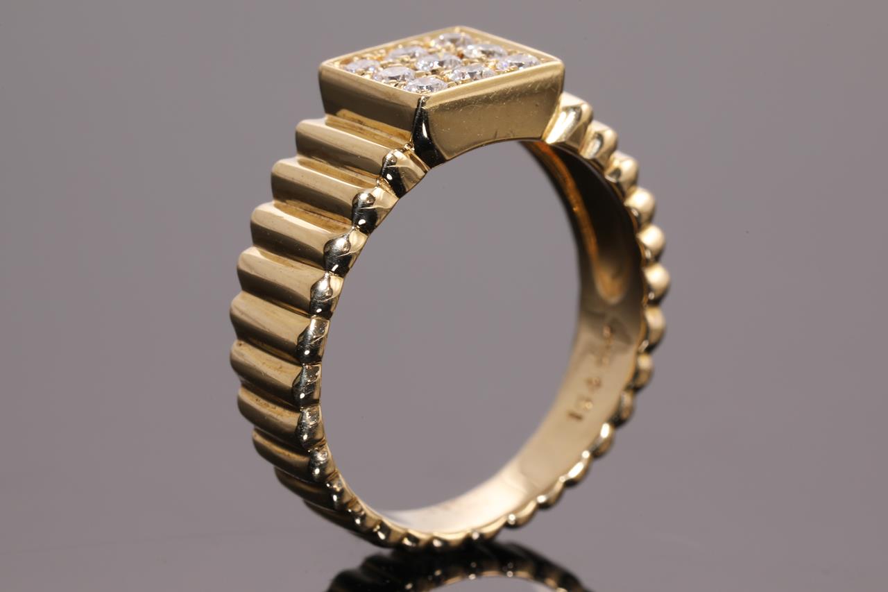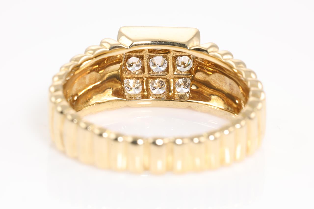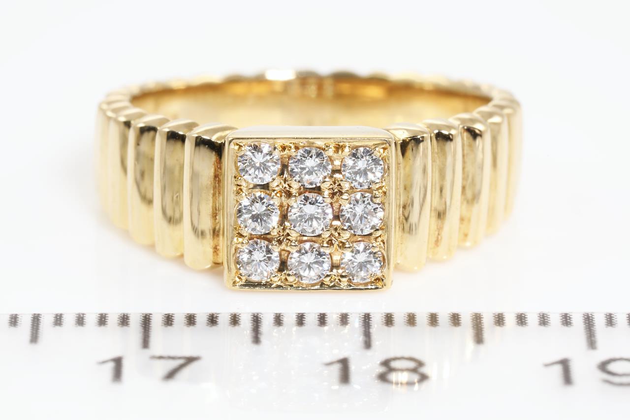 Christian Dior ring with 9 Diamonds totalling approximately 0.36cts (Estimated grading: F VS). 18ct yellow gold. Ring size M1/2 - ring resizing is not recommended. Weight: 5.5g. (Pre-owned)