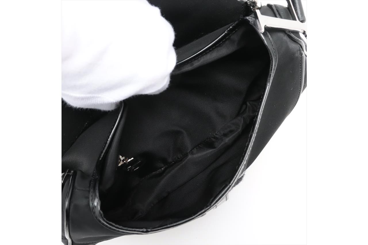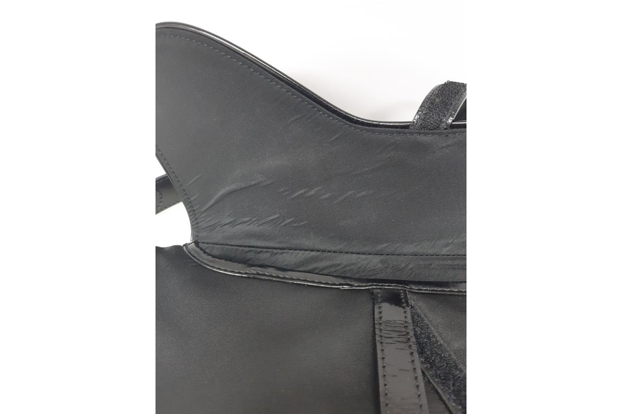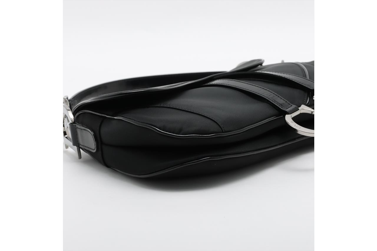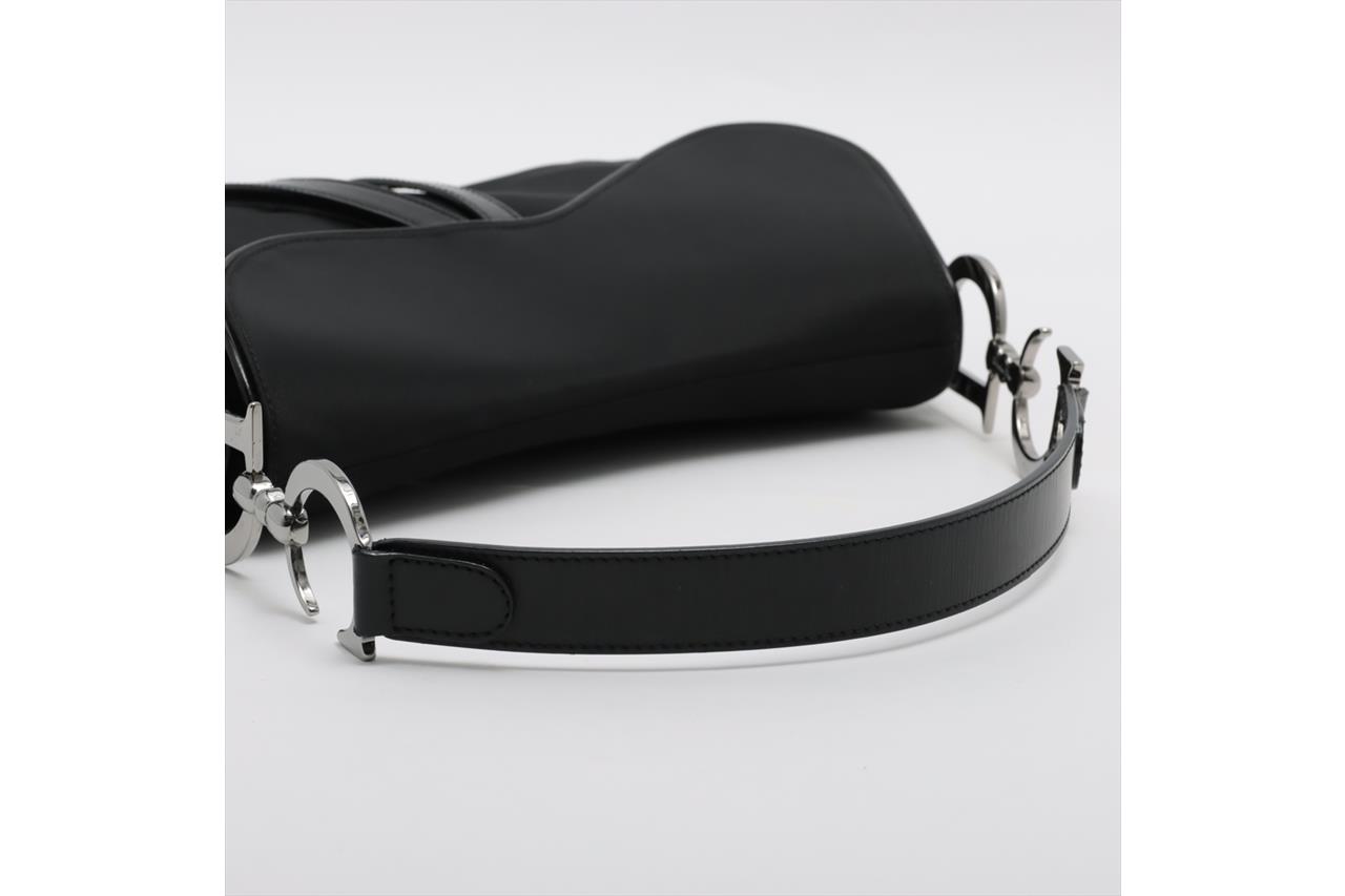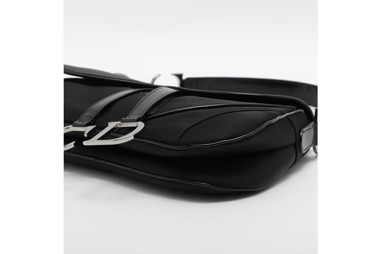 Christian Dior Double Saddle Bag. Featuring a black nylon exterior, leather trim, silver-tone hardware, and black nylon lined interior with zip pocket. Approximate dimensions: 28cm (L) x 19cm (H) x 5cm (D), and 18.5cm handle drop. Accompanied by Dior certificate card and dust bag. With Entrupy Certificate of Authenticity. (Pre-owned)