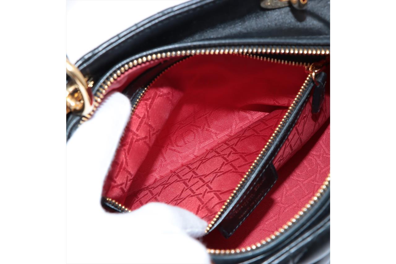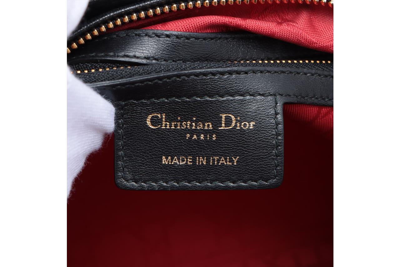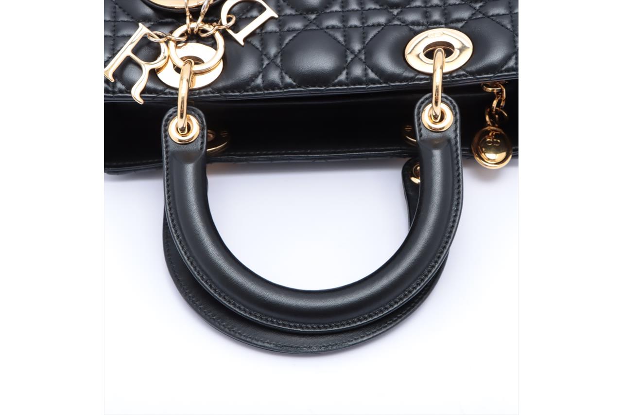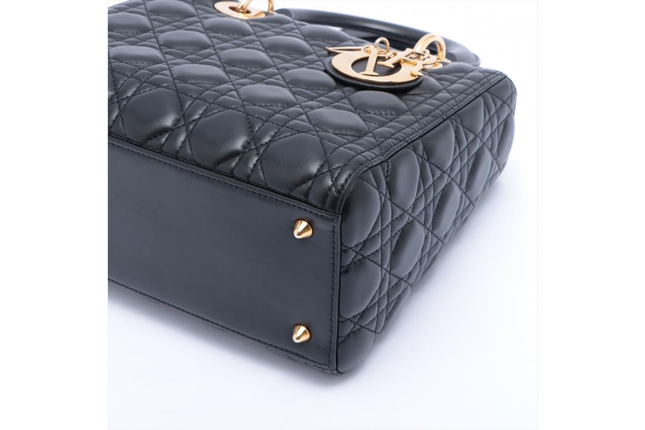 Christian Dior Medium Lady Dior Bag. Black Cannage Lambskin. Gold-tone hardware including the signature 'D.I.O.R' charms. Approximate dimensions: 24cm (L) x 20cm (H) x 11cm (D) and 10cm Handle Height. With thin, removable and adjustable Dior shoulder strap, Dior dust bag and box. With Entrupy Certificate of Authenticity (Pre-owned).