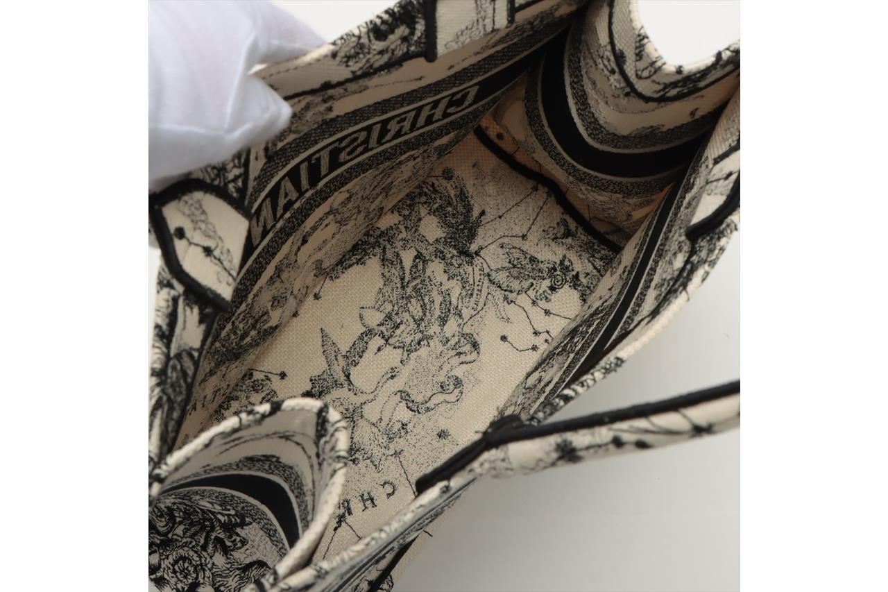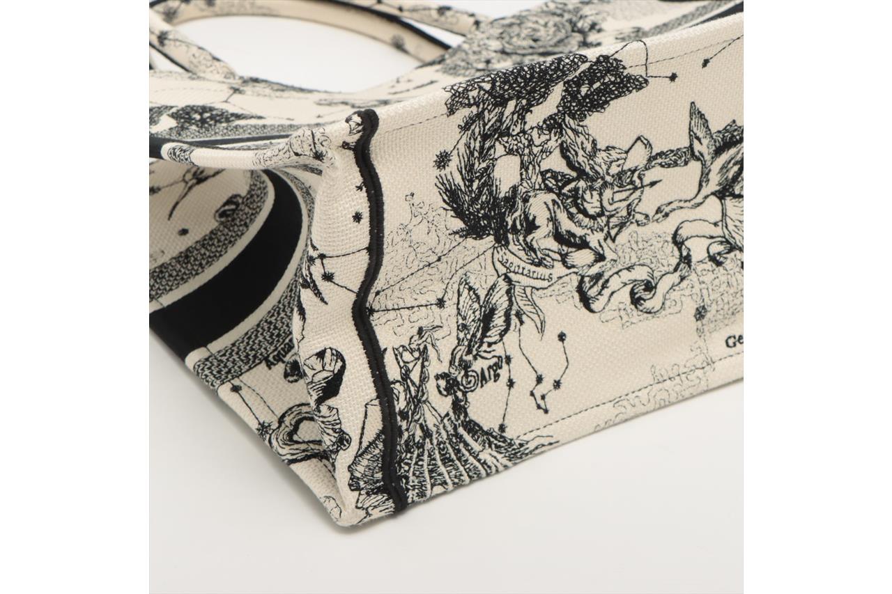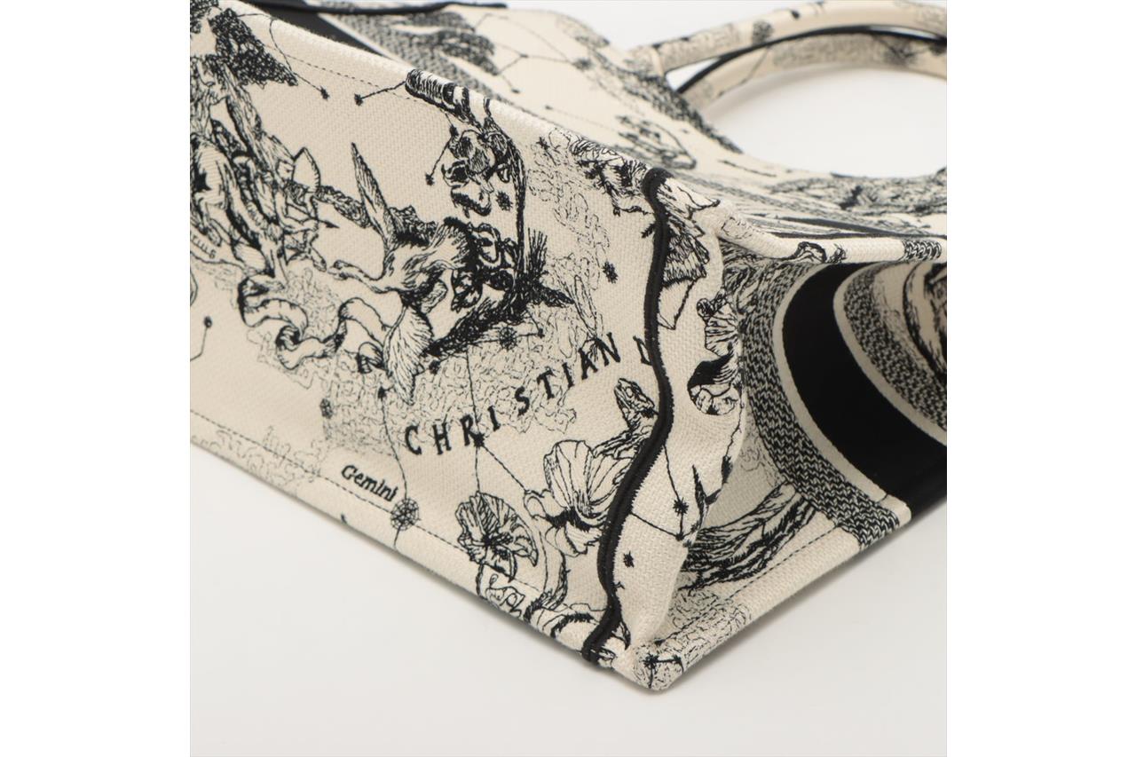 Christian Dior Medium Dior book tote bag in black/white canvas, fully embroidered with a latte Dior Zodiac motif. Adorned with the 'CHRISTIAN DIOR PARIS' signature on the front. Approximate dimensions: 36cm(L) x 27cm(H) x 16.5cm(D), 17cm handle height. With Entrupy Certificate of Authenticity. (Pre-owned)
