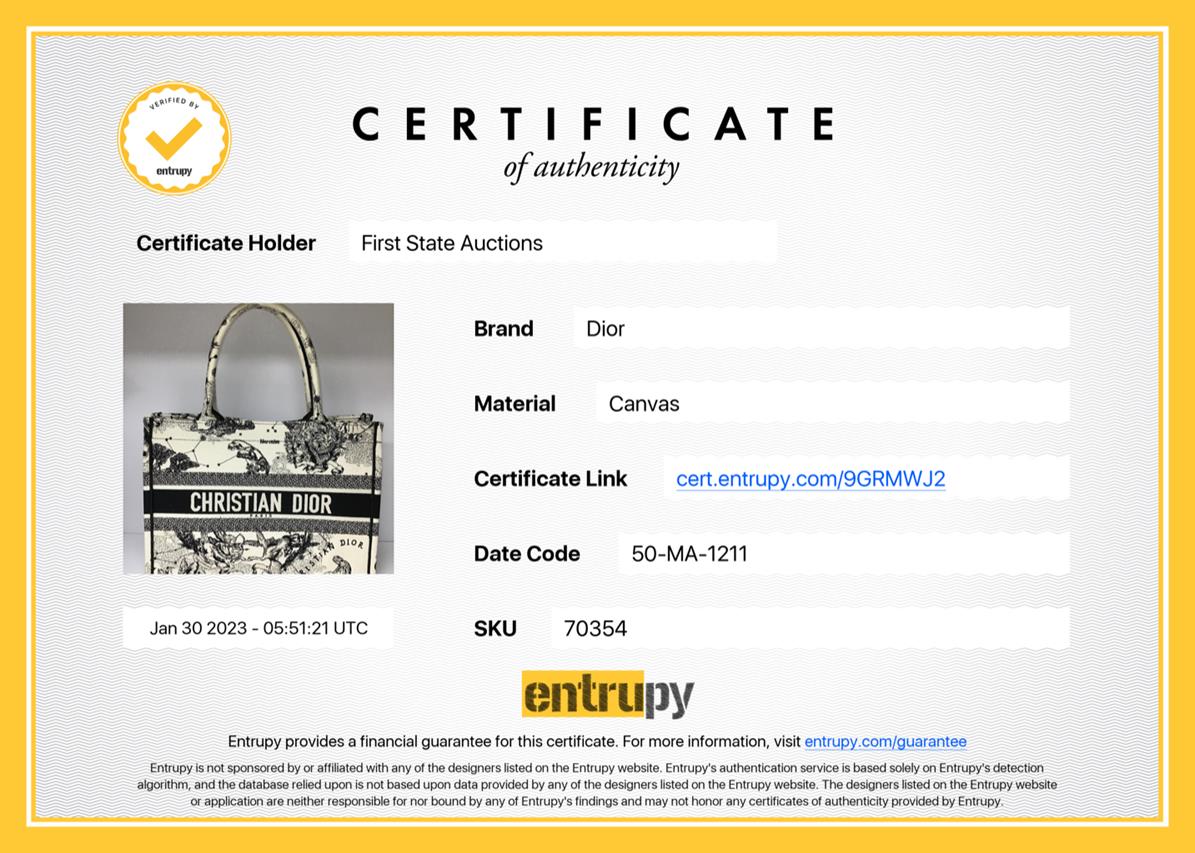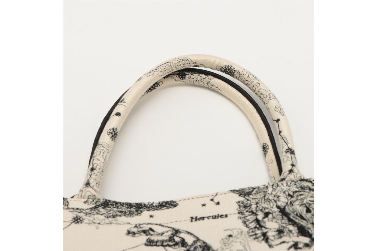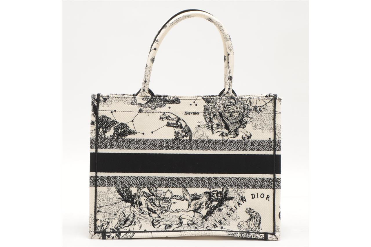 Christian Dior Medium Dior book tote bag in black/white canvas, fully embroidered with a latte Dior Zodiac motif. Adorned with the 'CHRISTIAN DIOR PARIS' signature on the front. Approximate dimensions: 36cm(L) x 27cm(H) x 16.5cm(D), 17cm handle height. With Entrupy Certificate of Authenticity. (Pre-owned)