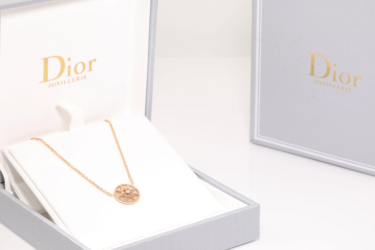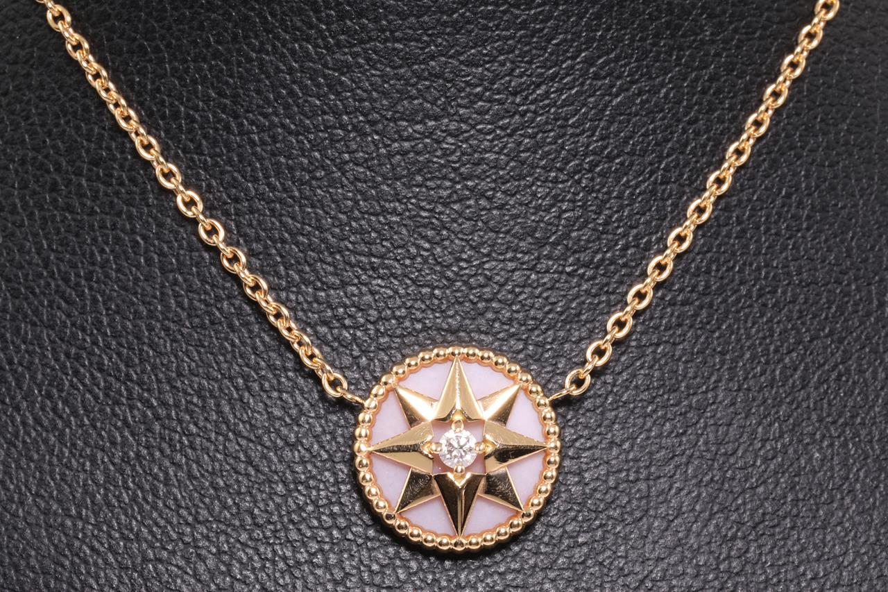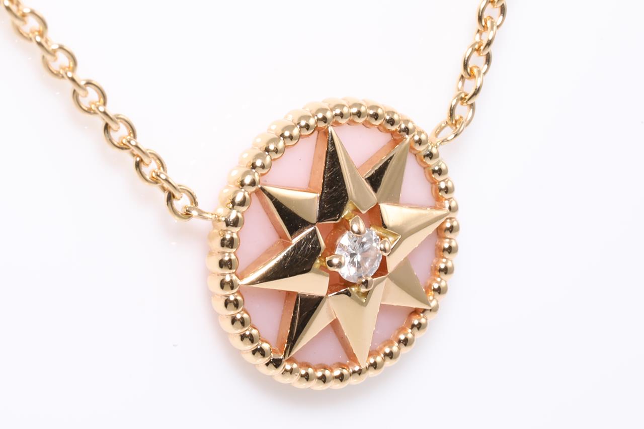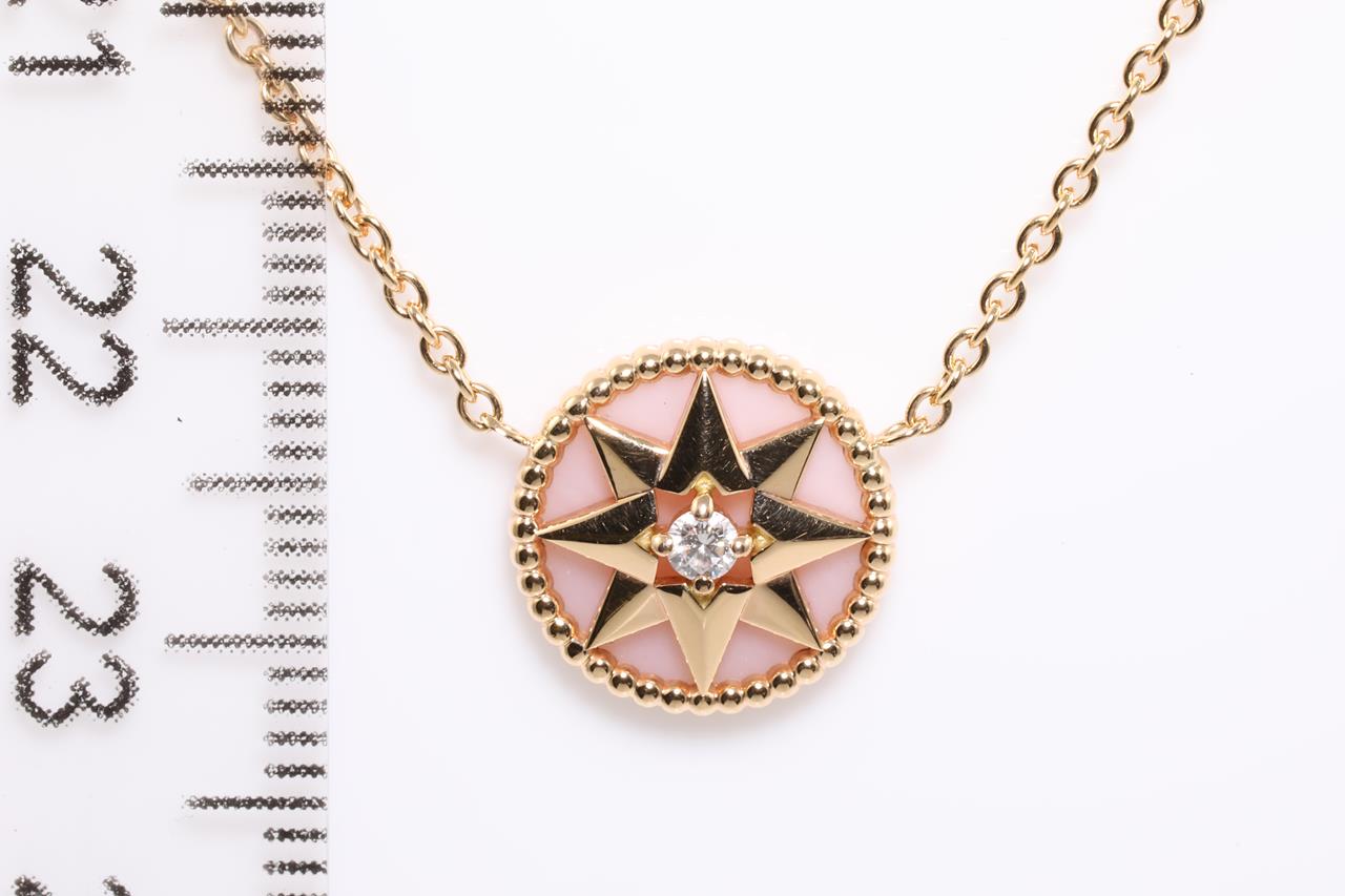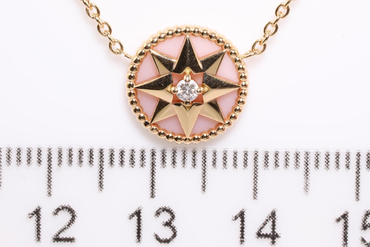 Christian Dior Rose Van 1P Diamond Pink Opal necklace with Diamond of 0.04ct. 18ct rose gold with 18ct gold 42cm adjustable chain. With Christian Dior box. Weight: 4.0g (Pre-owned)