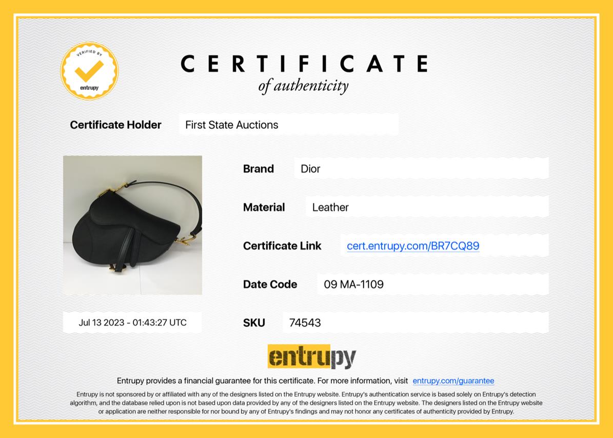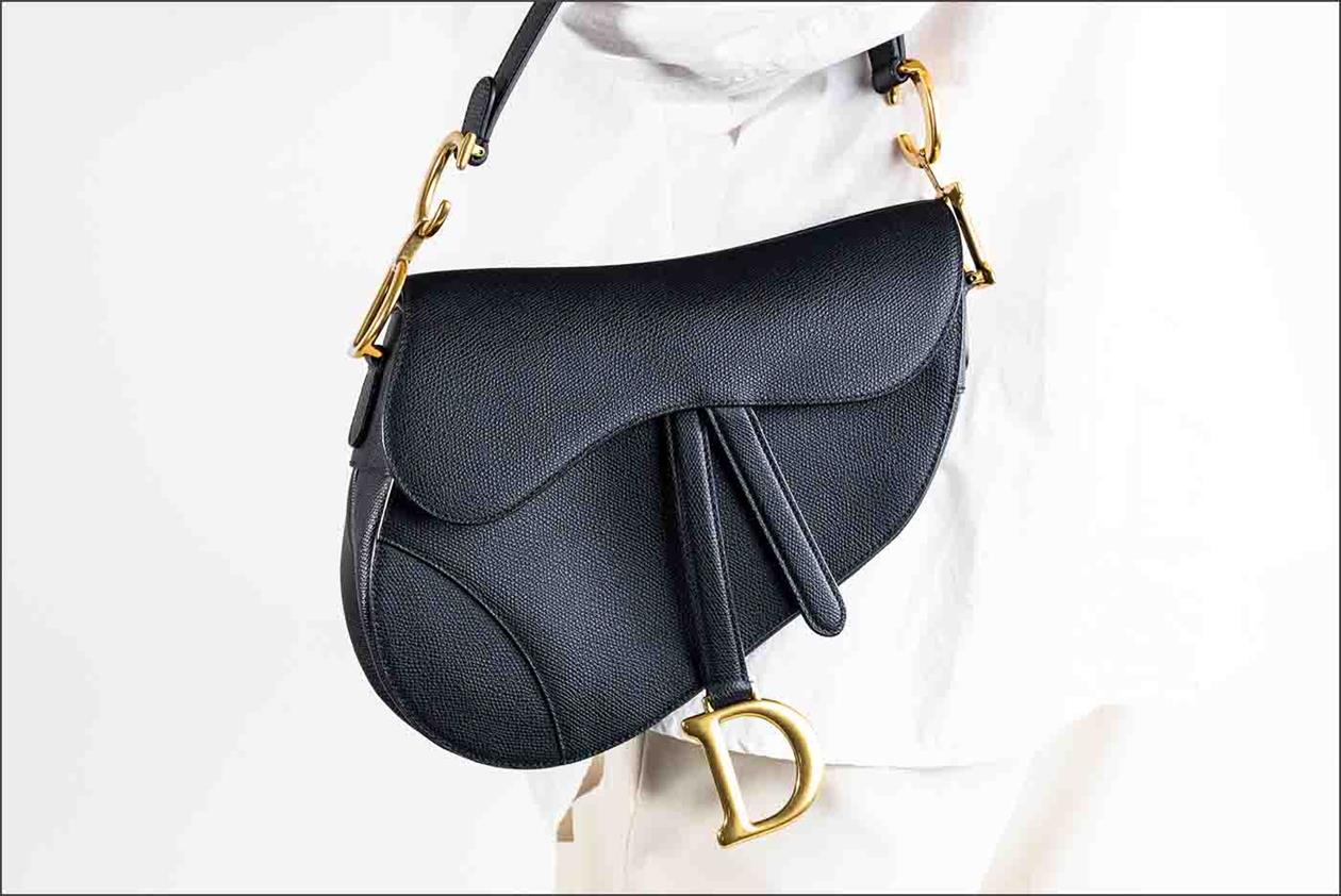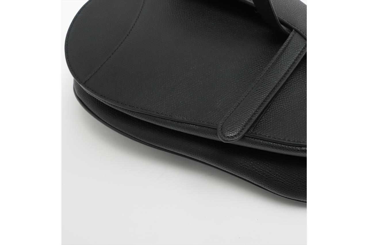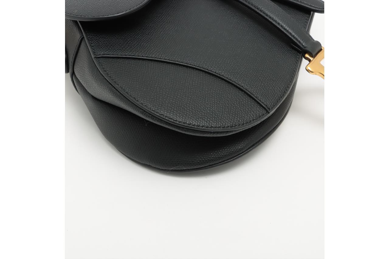 Christian Dior Saddle bag in black calfskin leather. Featuring an exterior pocket at back, antique gold-toned hardware, CD signature on the strap, flap with magnetic closure on front. This opens to black suede-like lining interior with a zipped pocket. Approximate dimensions: 26.5cm(L) x 20.5cm(H) x 6.5cm(D), 18cm handle drop. Accompanied by Dior certificate card (dated 21/12/19) and info booklet. With Entrupy Certificate of Authenticity. (Pre-owned)