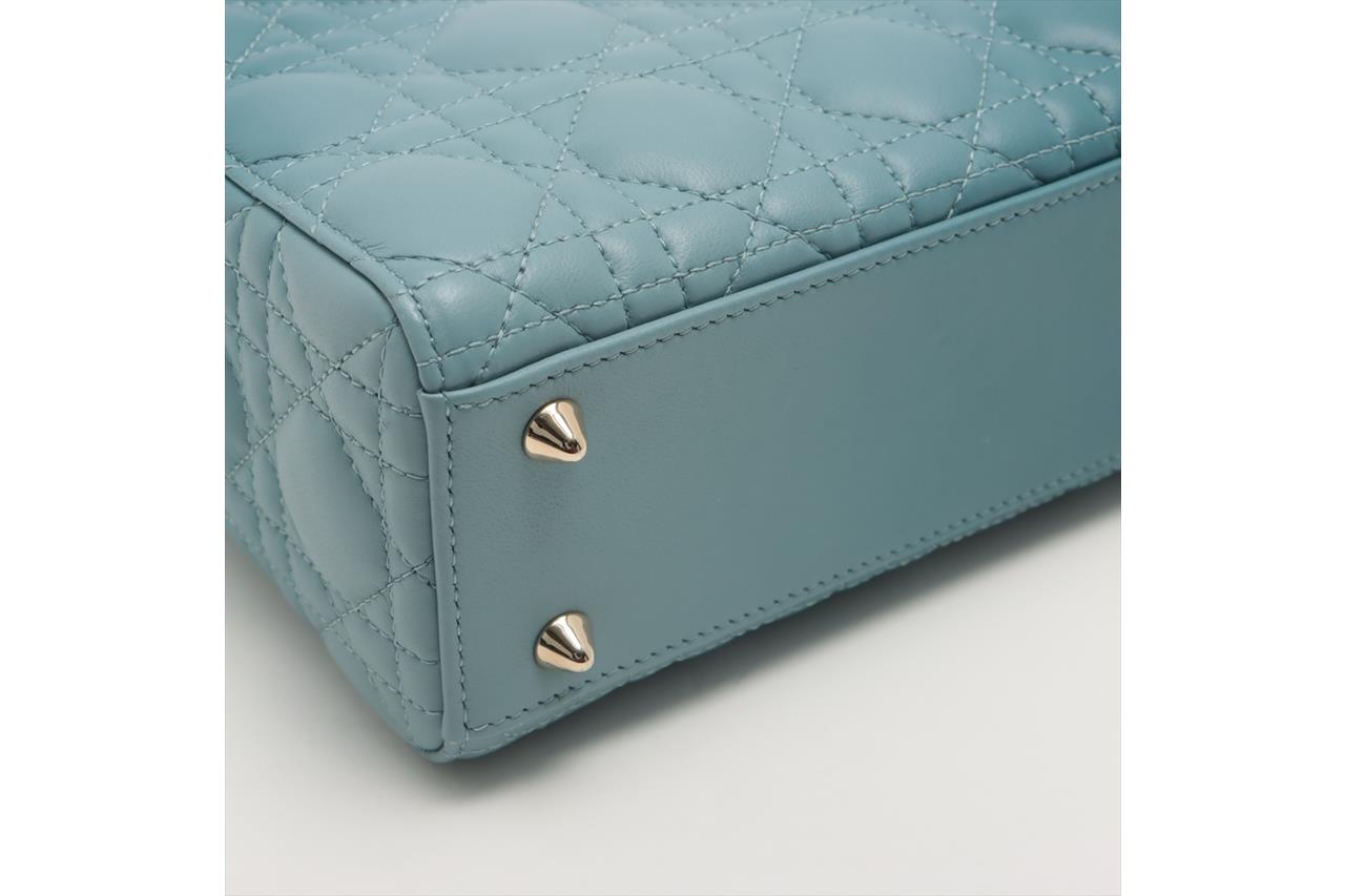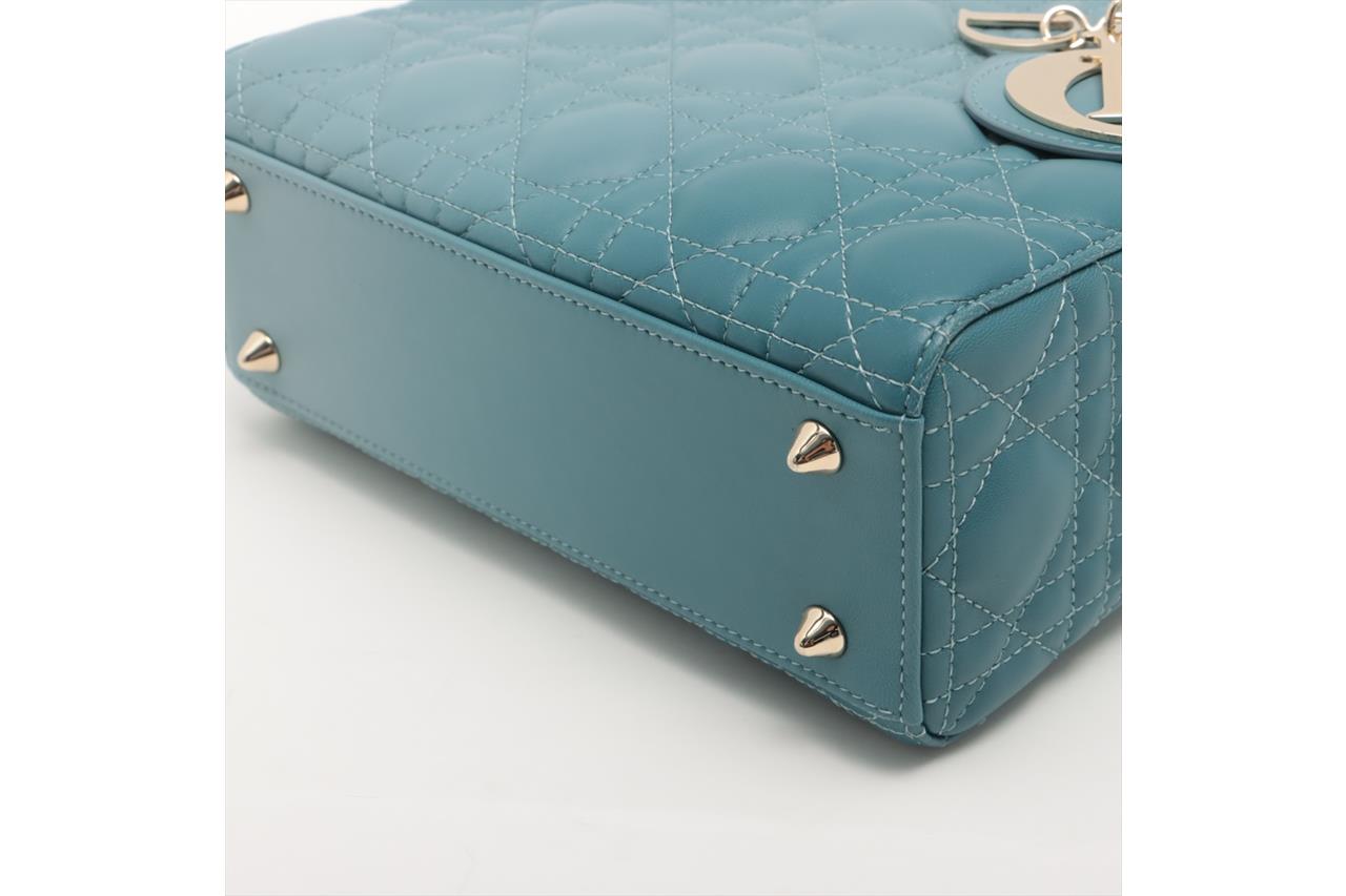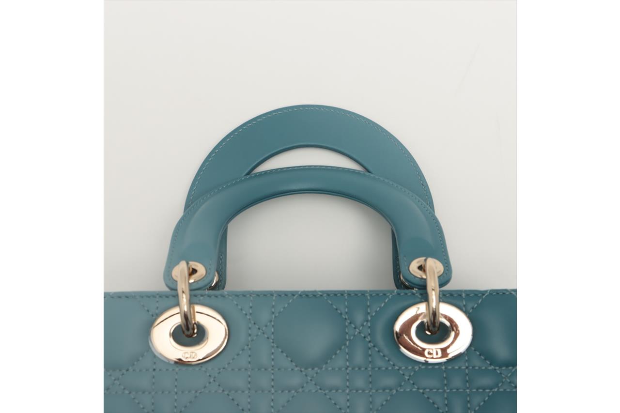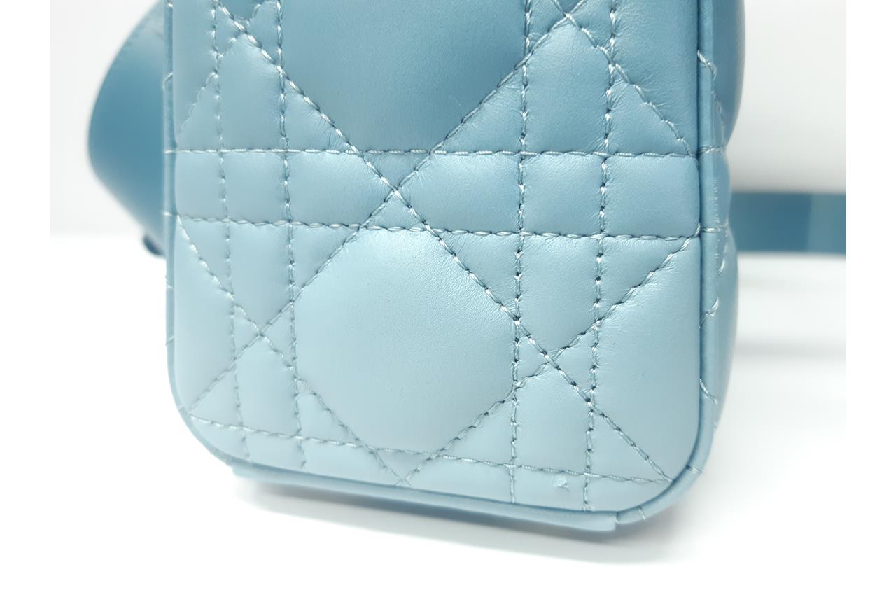 Christian Dior Small Lady Dior My ABCDIOR Bag in Denim Blue Gradient Cannage Lambskin Leather. Featuring gold-tone hardware, 'D.I.O.R.' charms, interior zip and patch pocket, and top leather flap closure. Approximate dimensions: 20cm (L) x 17cm (H) x 8.5cm (D), 8.5cm handle drop and 53cm detachable strap drop. Accompanied by Dior box and dust bag. With Entrupy Certificate of Authenticity. (Pre-owned)