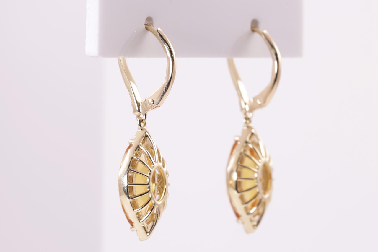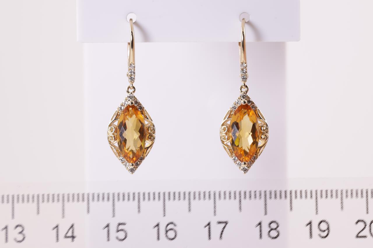 Citrine and Diamond leverback earrings with checkerboard marquise cut Citrines totalling 3.46cts and Diamonds totalling 0.20cts. 14ct yellow gold. Weight: 3.6g. (New)