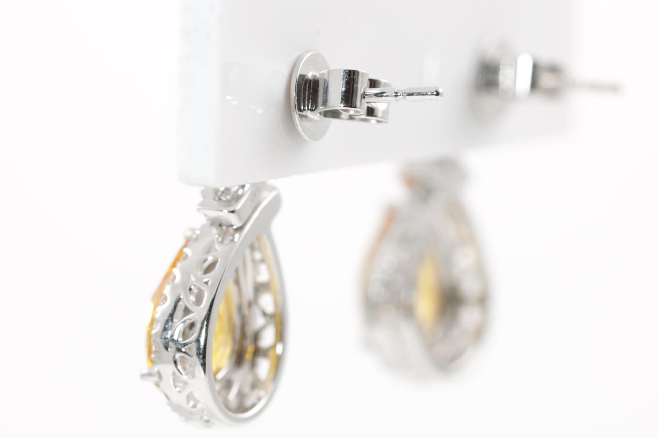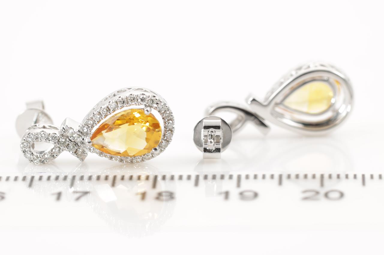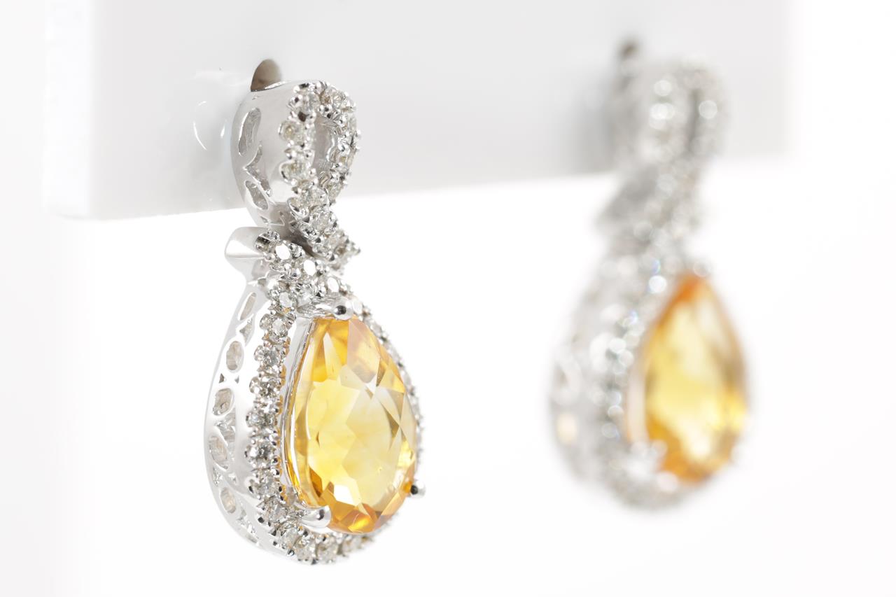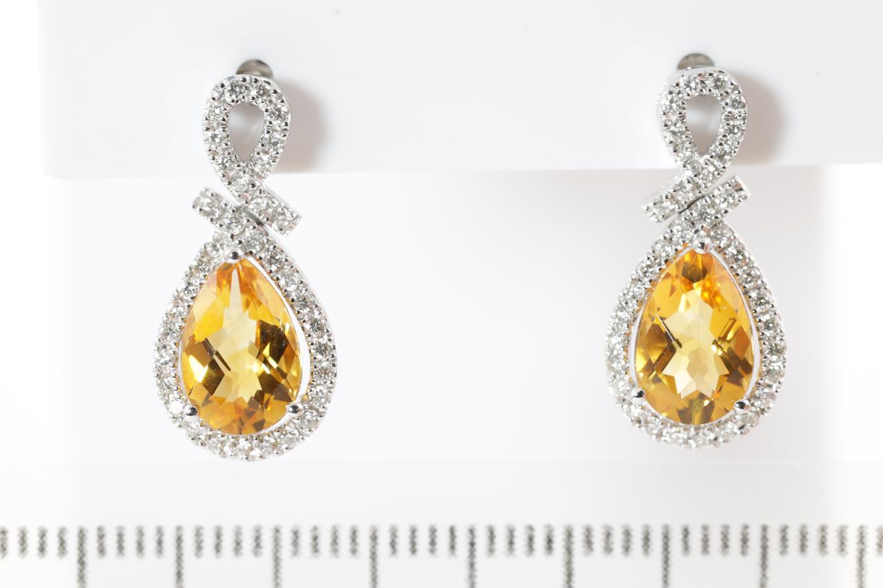 Citrine and Diamond earrings with pear shape Citrine totalling 2.47cts and Diamonds totalling 0.41cts (Estimated grading: H SI). 14ct white gold. Weight: 4.5g. (New)