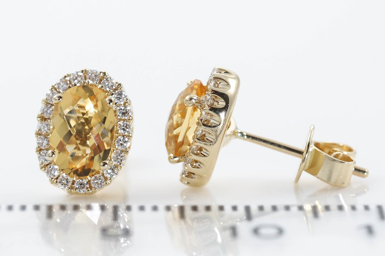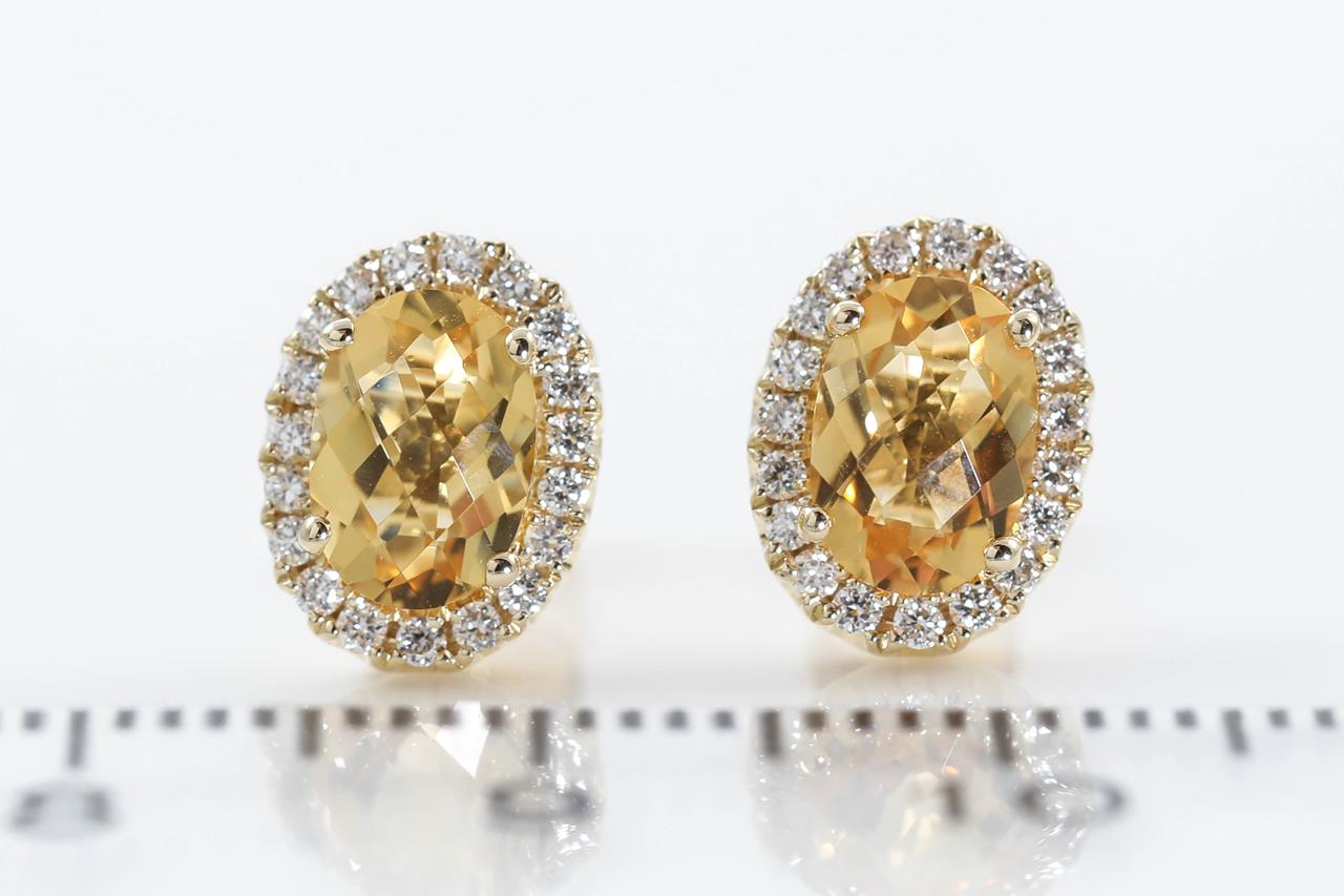 Citrine and Diamond earrings with oval shape Citrine totalling 1.43cts and Diamonds totalling 0.22cts. 14ct yellow gold. Weight: 2.5g. (New)
