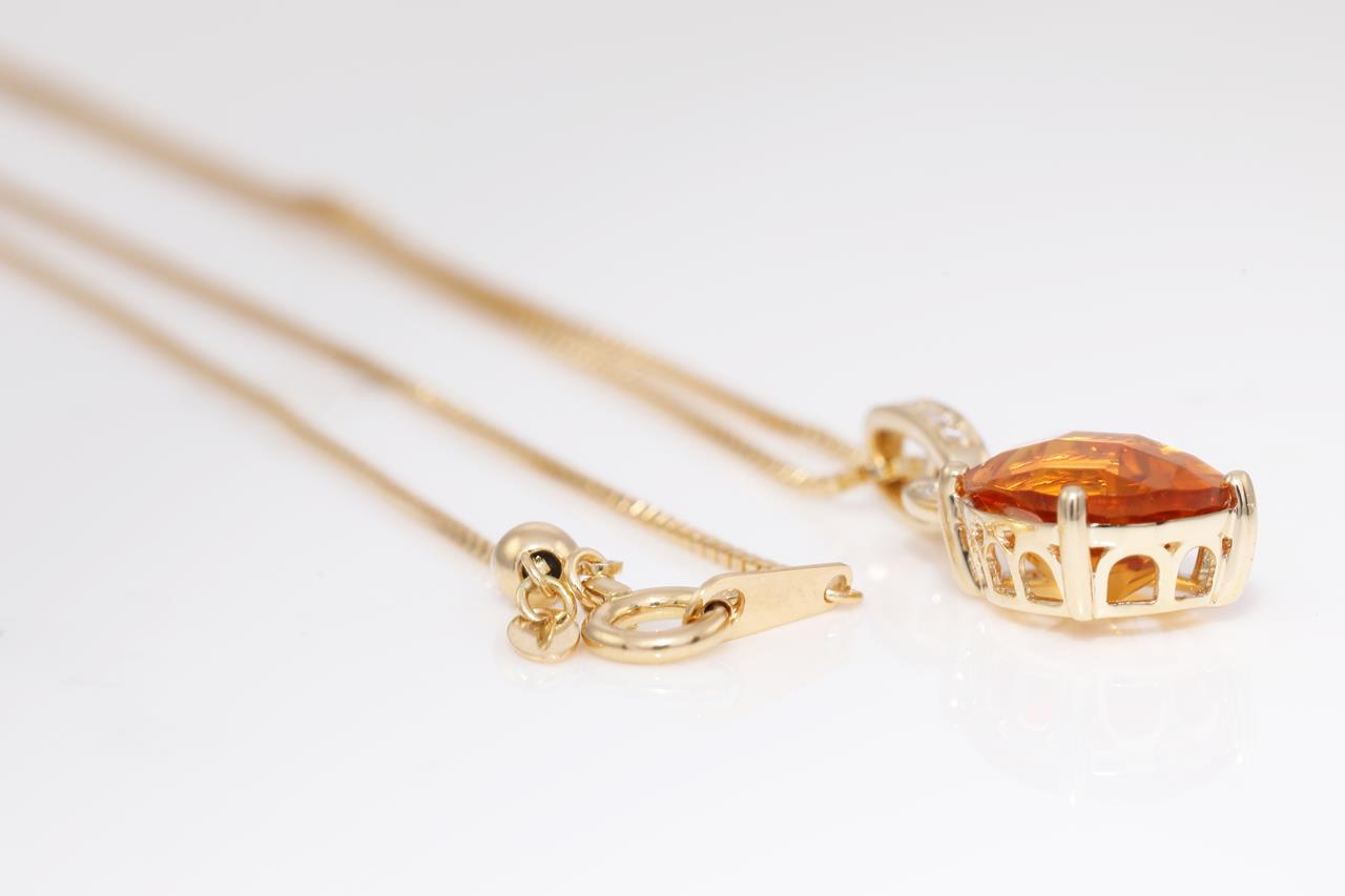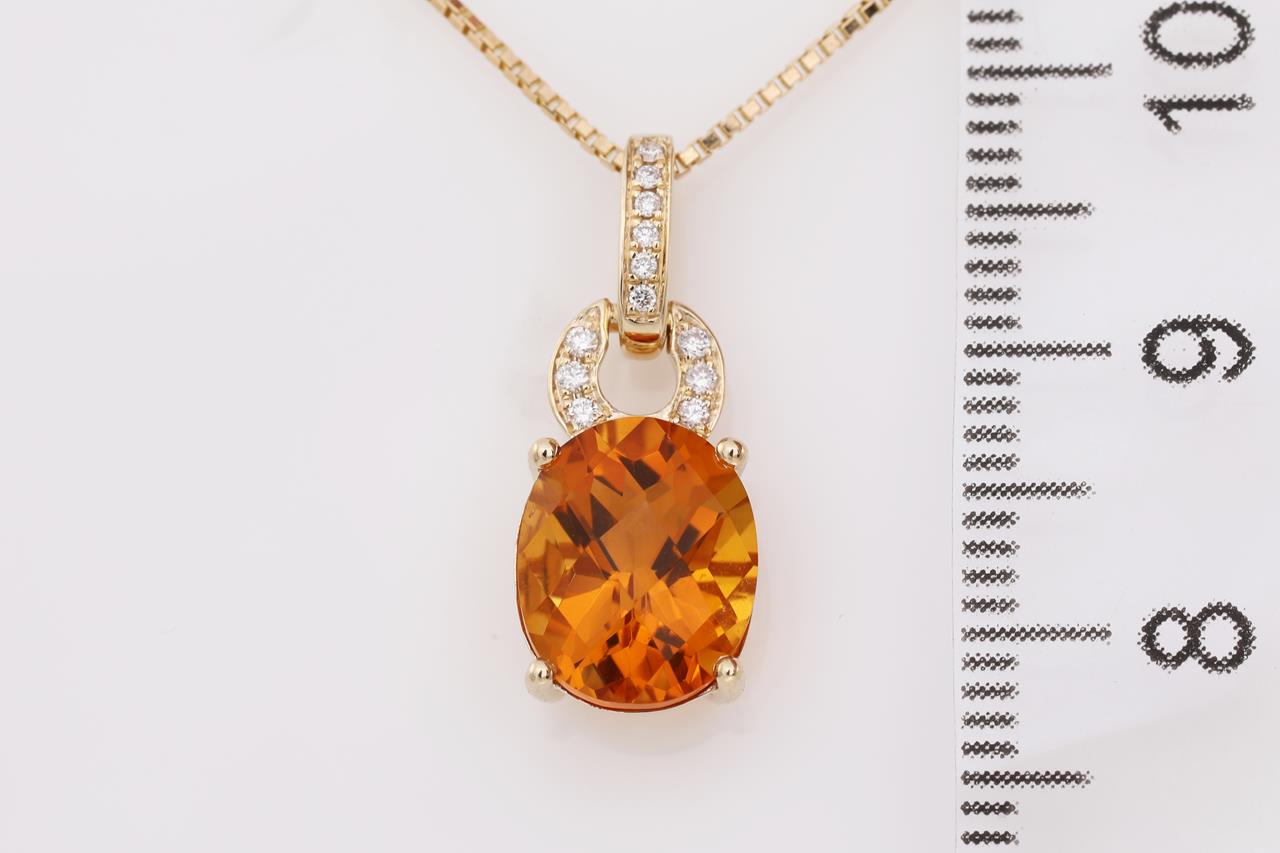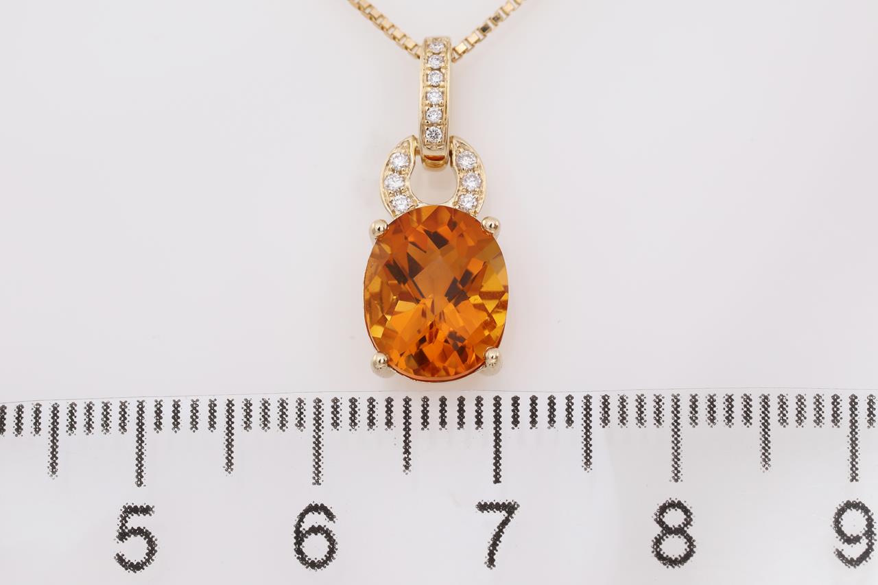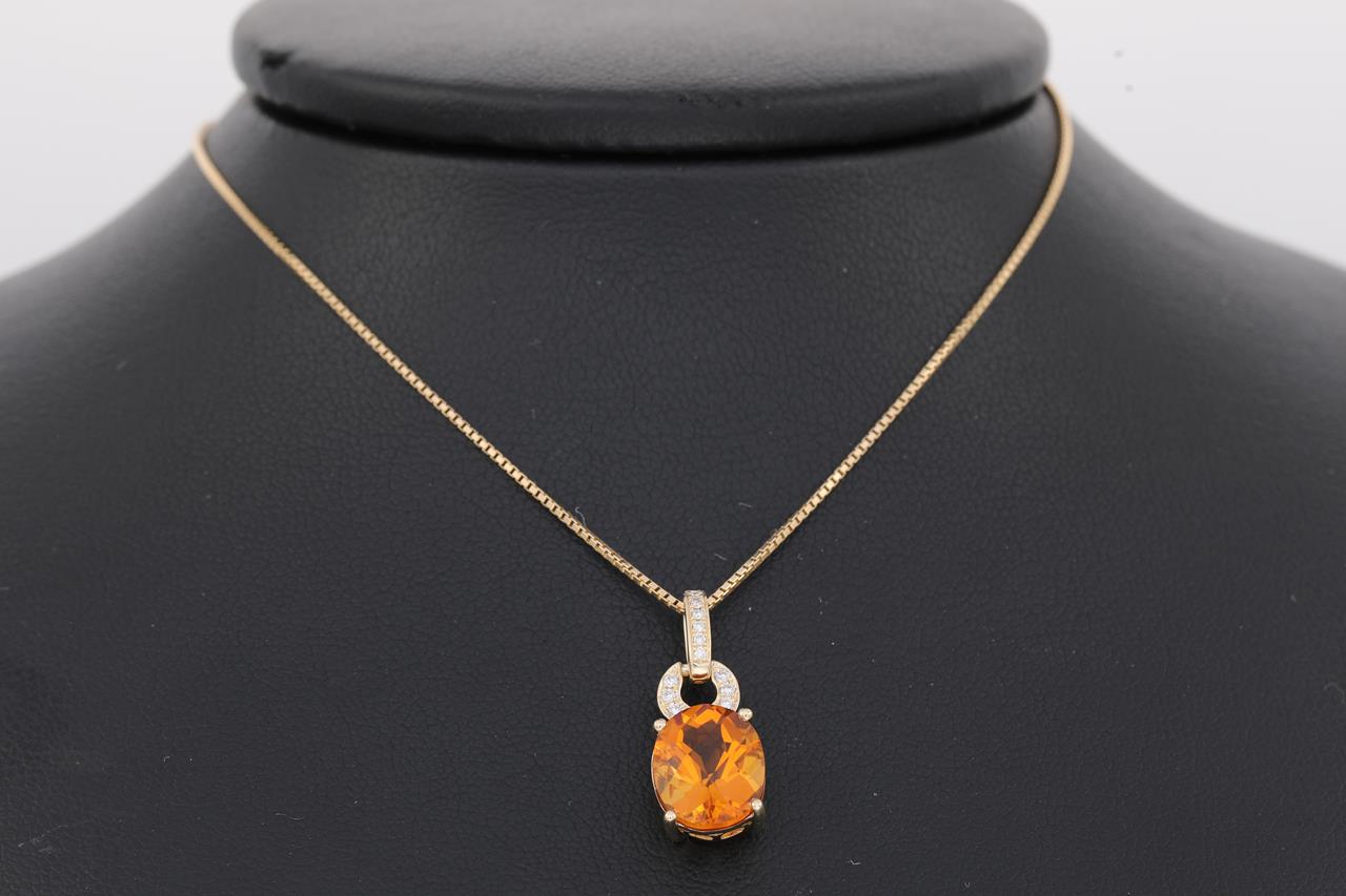 Citrine and Diamond pendant with an oval Citrine of 2.44ct and Diamonds totalling 0.06cts. 14ct yellow gold with 18ct gold 44cm adjustable chain. Weight: 3.5g. (New)