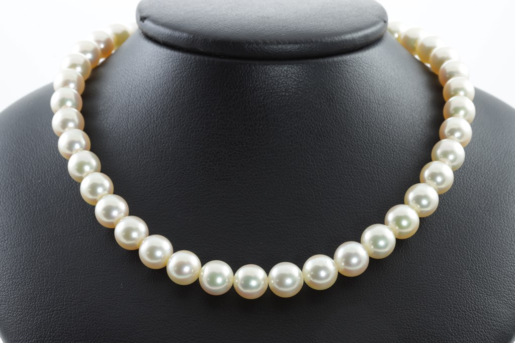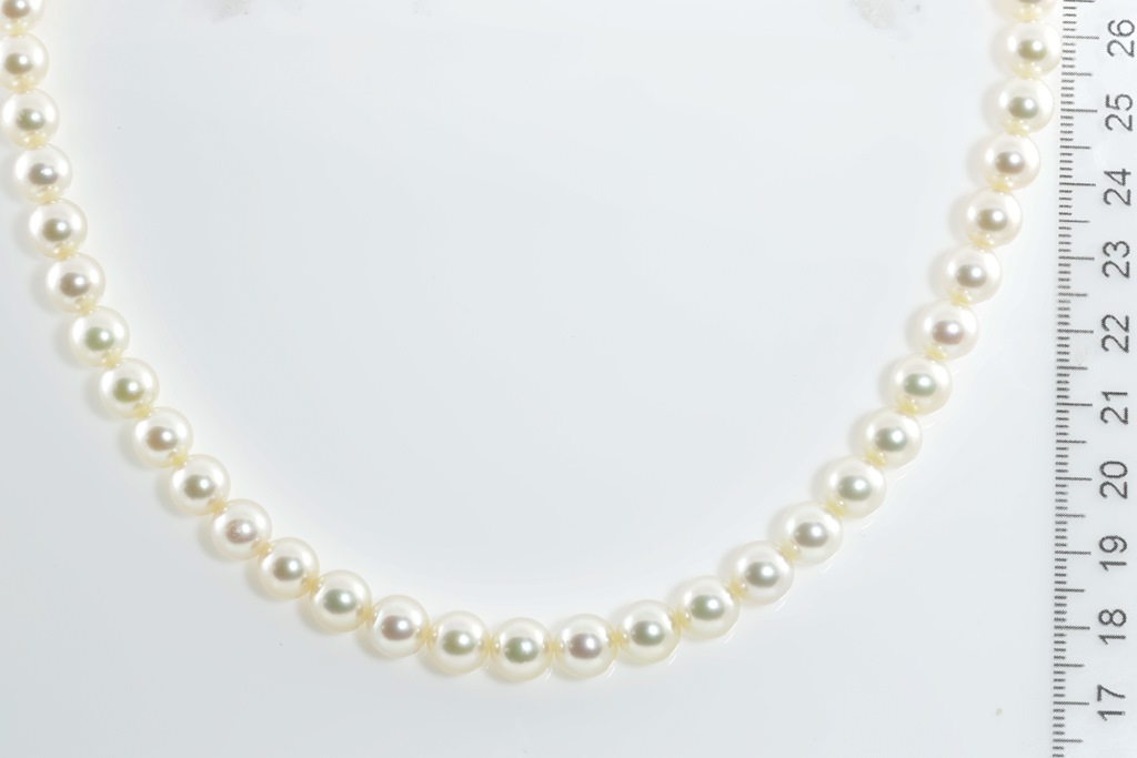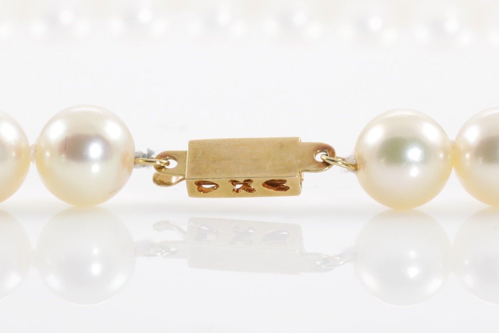 Pearl necklace with cultured pearls of 8.4mm-8.0mm. With 18ct yellow gold clasp. Length: 43cm. Weight: 39.6g (Pre-owned)