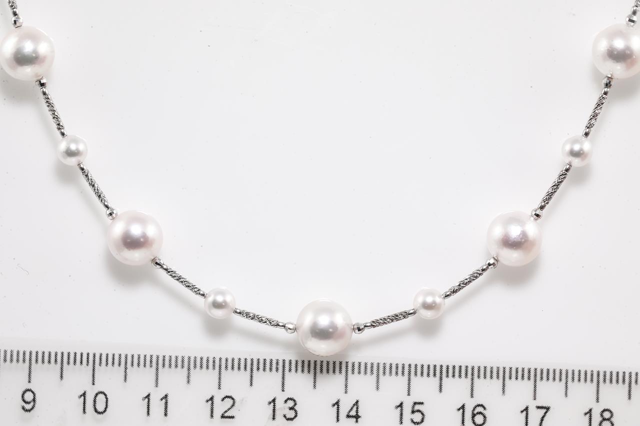 Pearl Necklace with cultured Pearls of 4.5mm-9.0mm. 18ct white gold. Adustable max length: 47cm. Weight: 14.3g (Pre-owned)