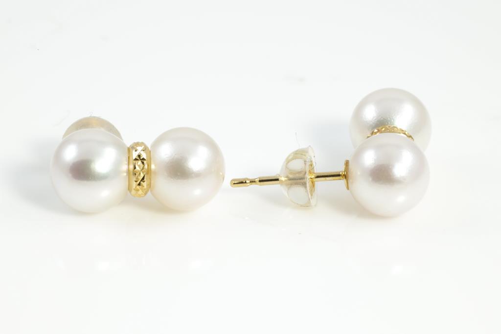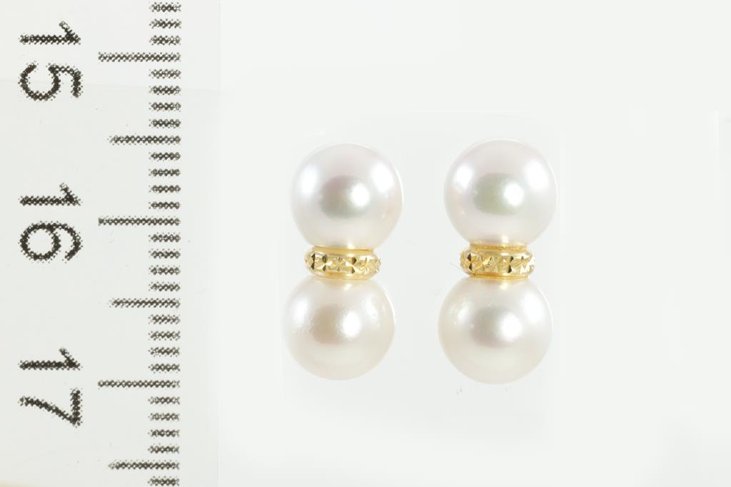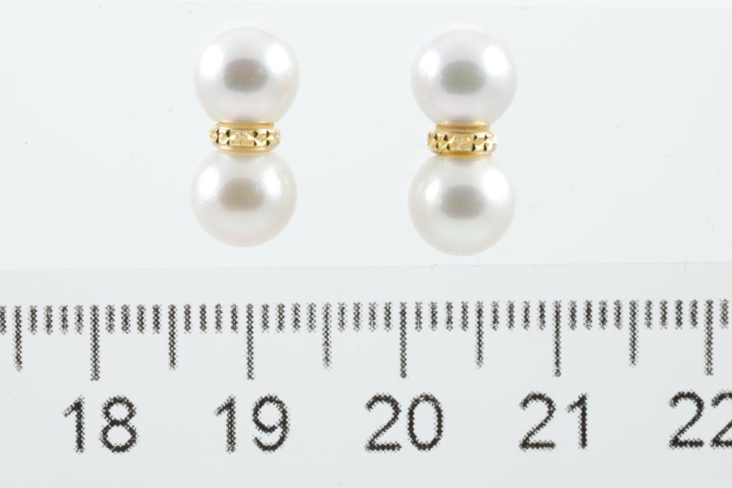 Pearl earrings with cultured Pearls of 6.8mm. 18ct yellow gold with gold & silicon backs. Weight: 2.6g. (Pre-owned)