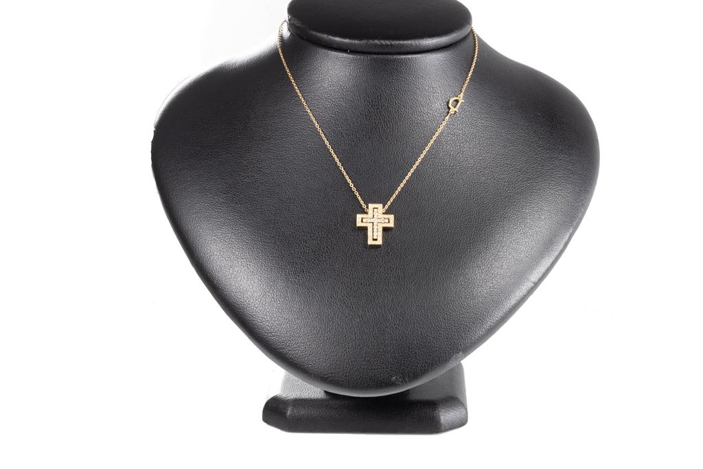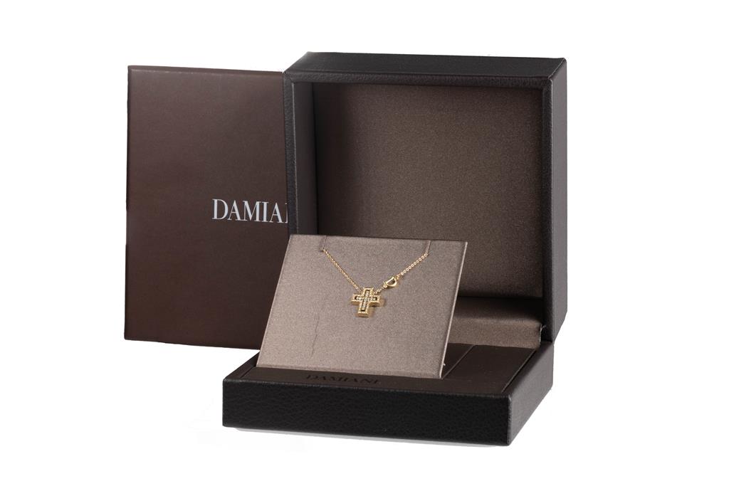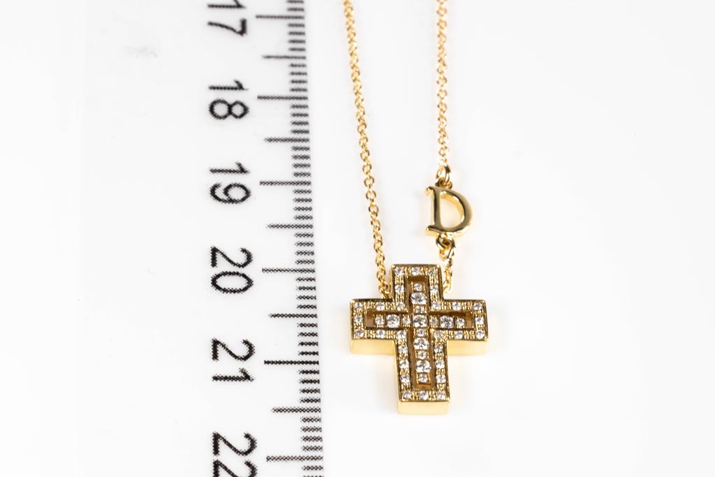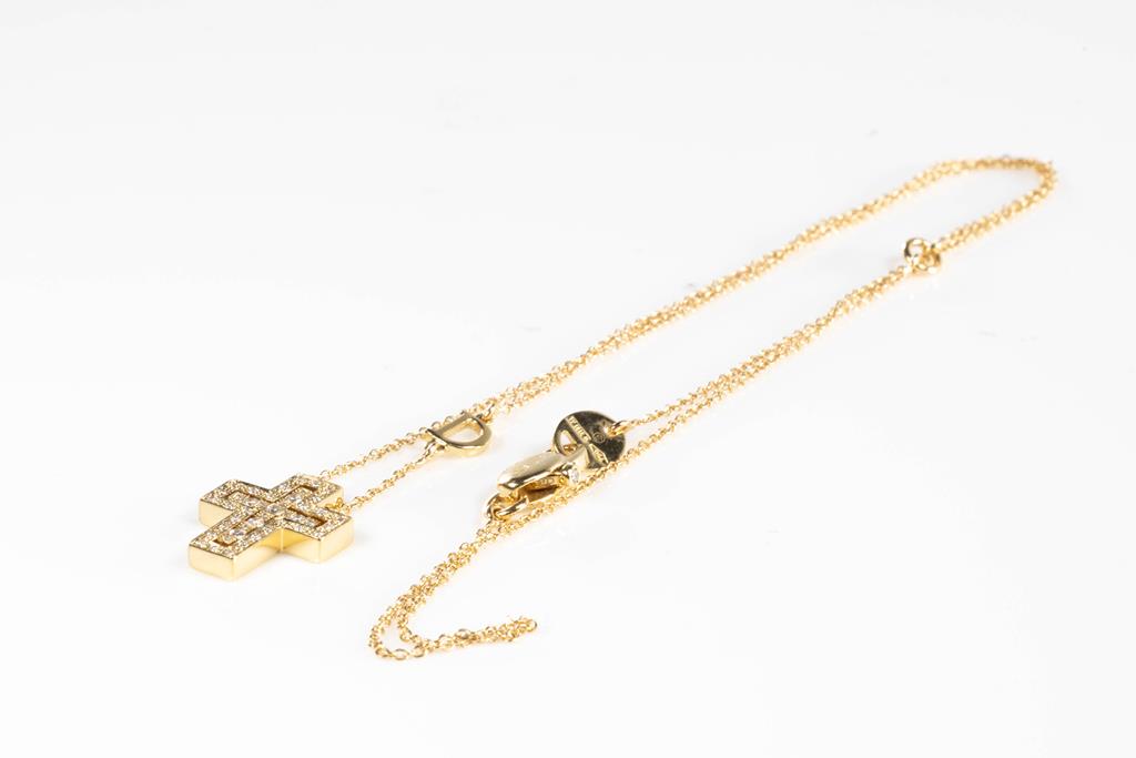 Damiani Belle Epoque cross necklace with round Diamonds totalling 0.38cts (Estimated grading: G-H VS-SI). 18ct yellow gold with adjustable 50cm chain. With Damiani box. Weight: 4.7g (Pre-owned)