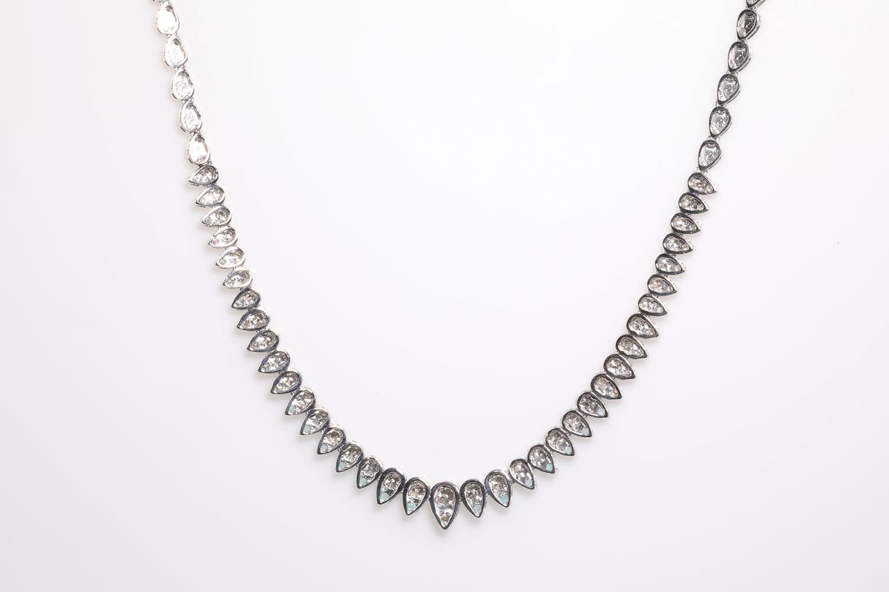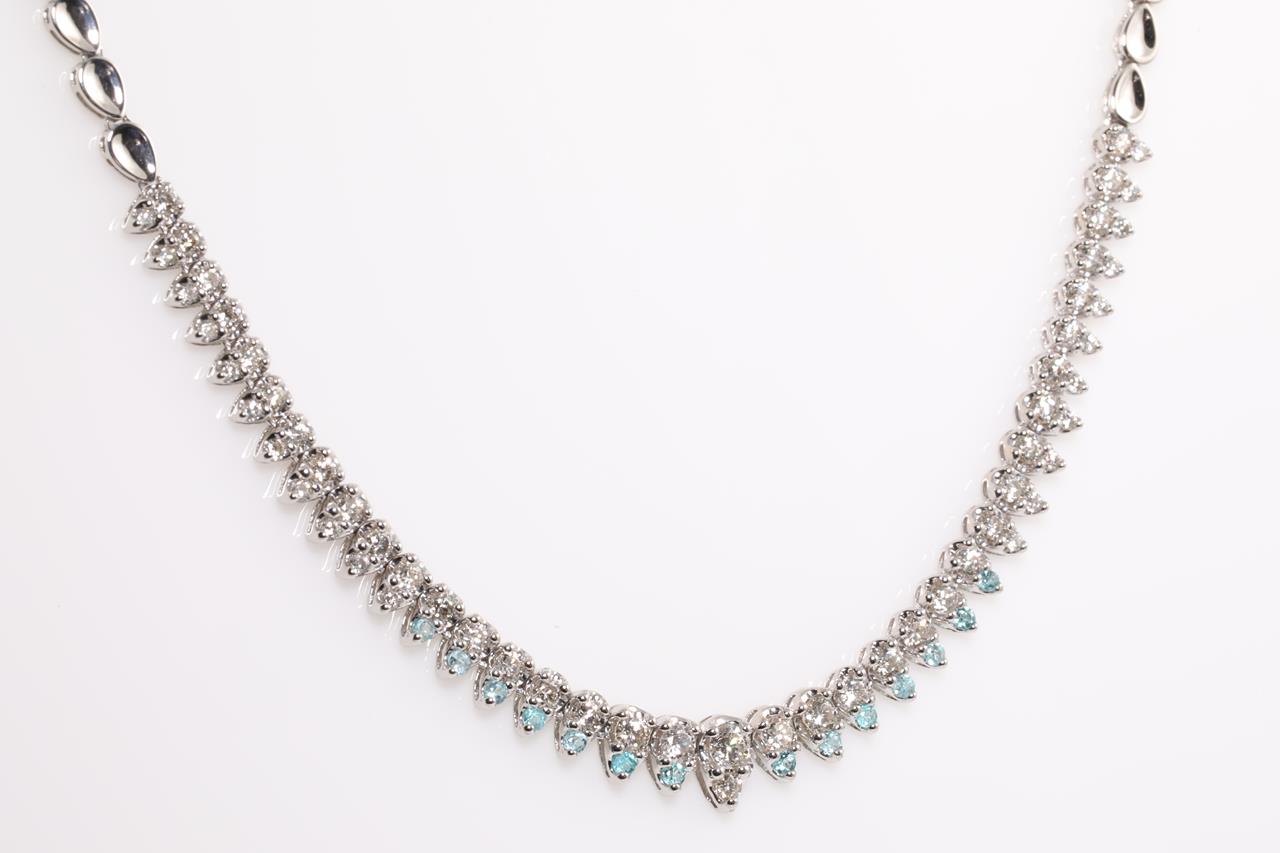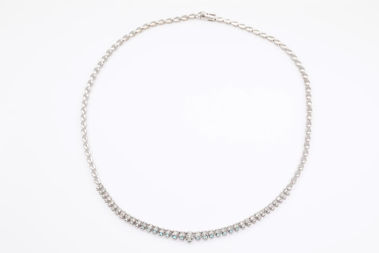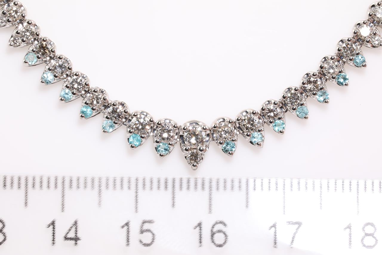 Diamond and Tourmaline Necklace with round Paraiba Tourmaline totalling 0.23cts and round Diamonds totalling 1.81cts (Estimated grading: H SI). 18ct white gold. Length: 42cm. Weight: 15.3g. With certificate #414870. (Pre-owned)
