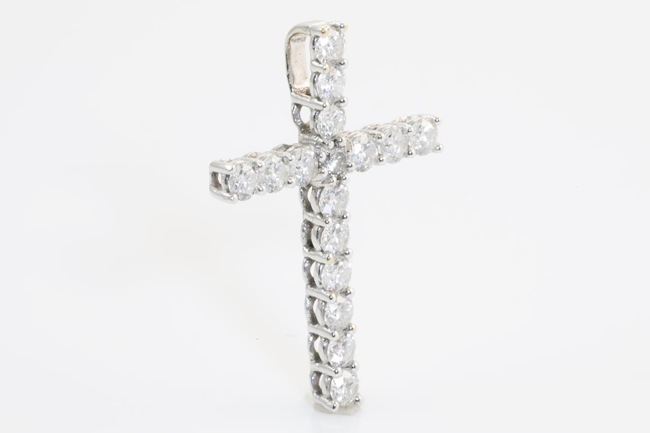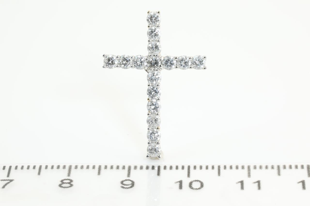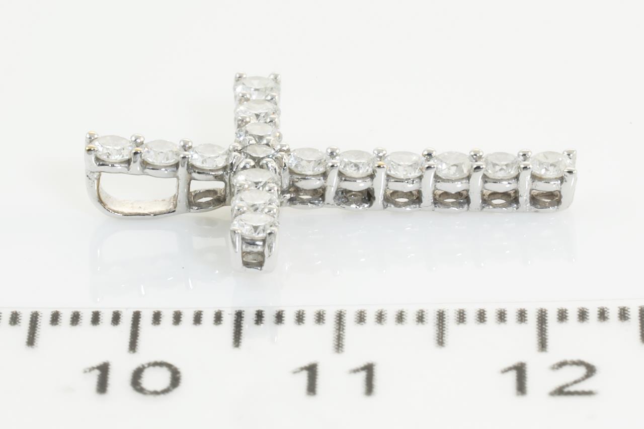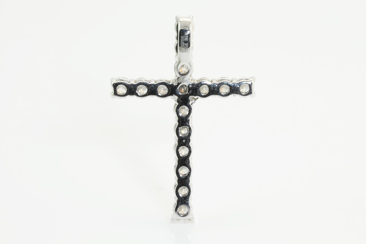 Diamond cross pendant with round Diamonds totalling 0.85cts (Estimated grading: G SI-P1). 18ct white gold. No chain provided. Weight: 1.7g (Pre-owned)