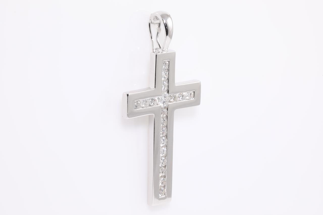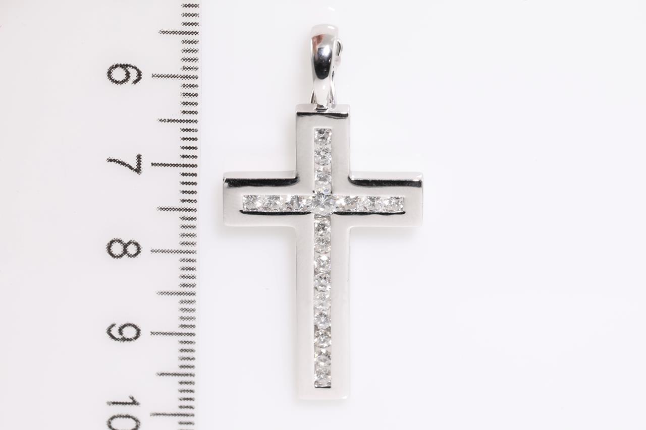 Diamond Cross pendant with 19 round brilliant cut Diamonds totalling approximately 1.00cts (Estimated grading: G-H P1). 18ct white gold. Weight 7.7g. (Pre-owned)