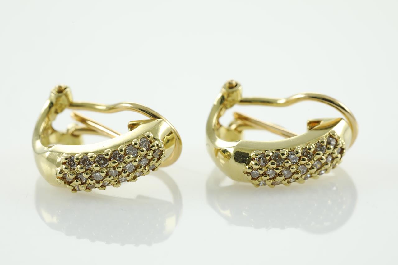 Diamond dress earrings with round Diamonds totalling 0.30cts (Estimated grading: I SI2-P1). 18ct yellow gold. (Pre-owned)