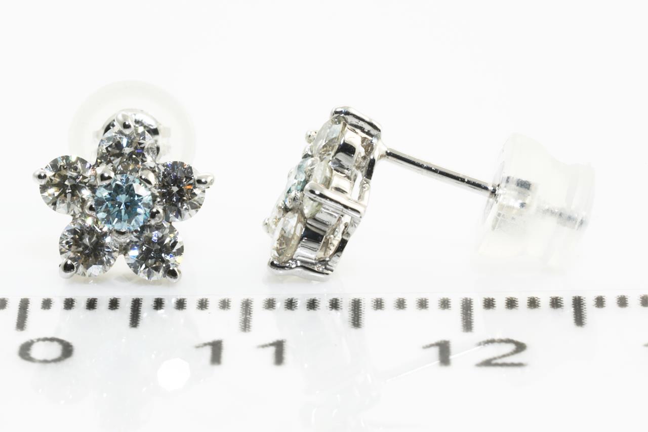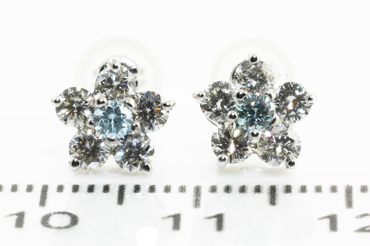 Diamond dress earrings with white and treated blue Diamonds totalling 0.80cts (Estimated grading: G SI). Platinum with platinum & silicon backs. Weight: 1.9gm. (Pre-owned)